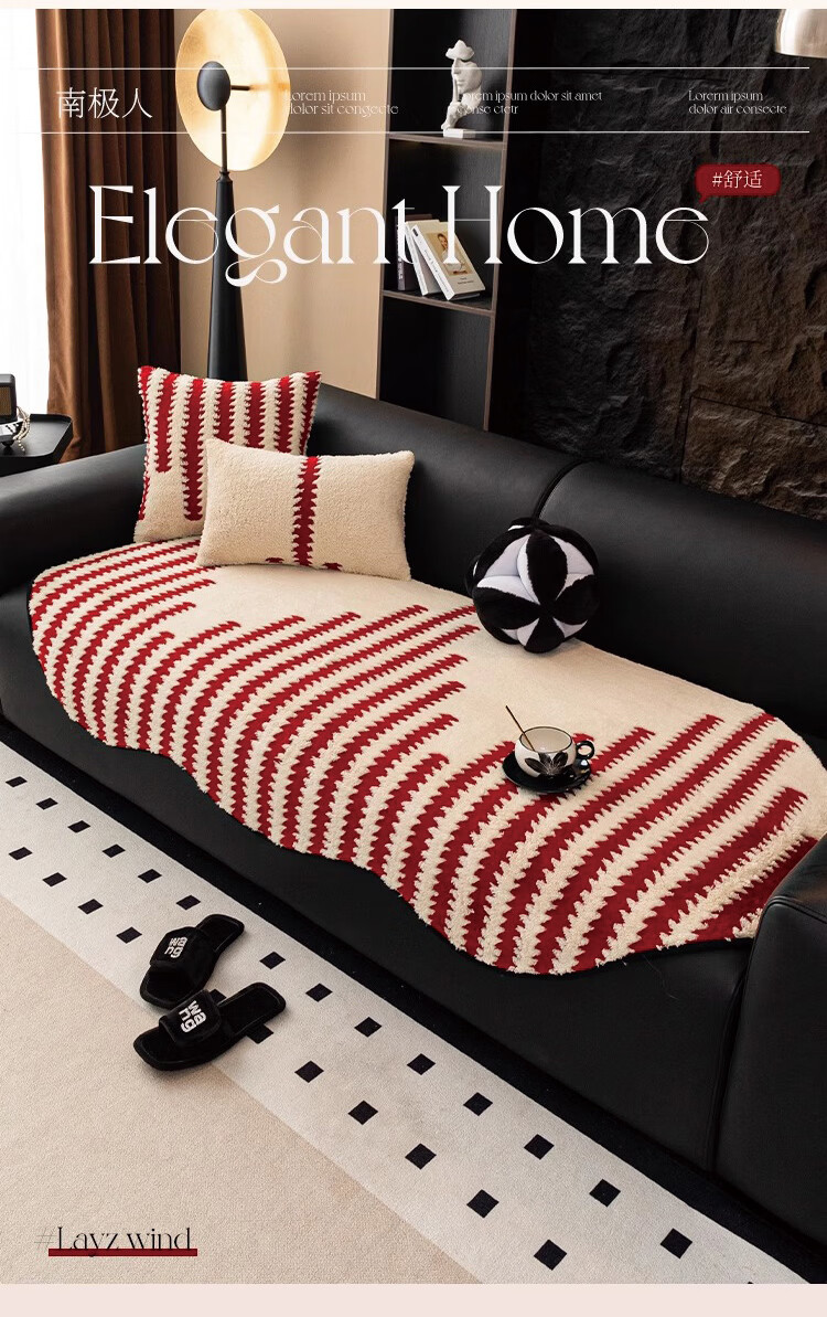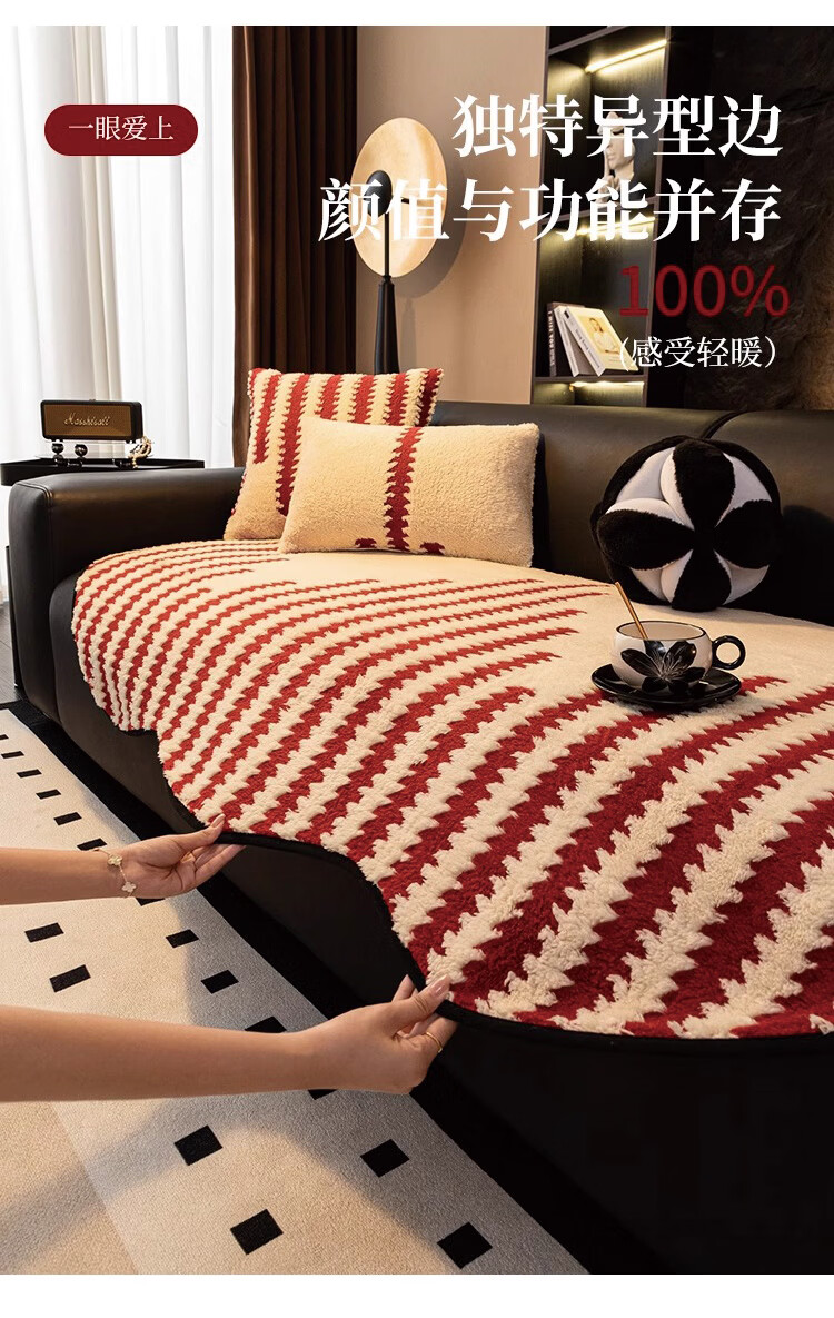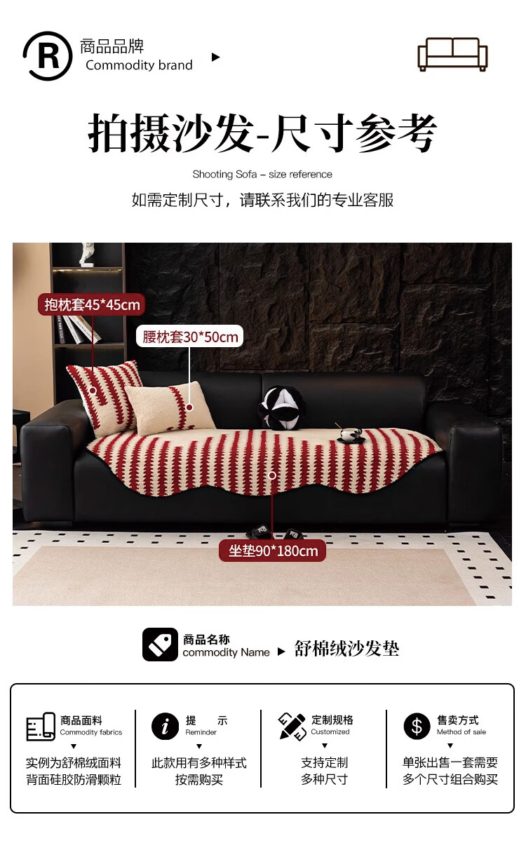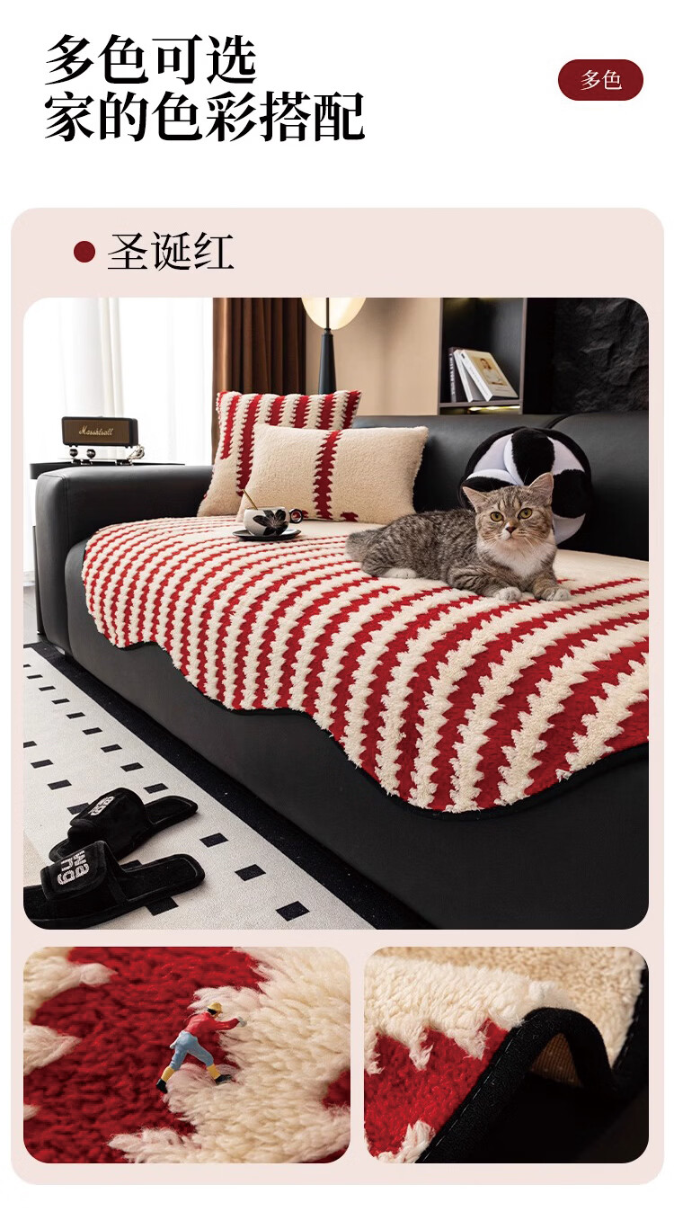 无印良品【皮沙发专用】沙发垫防滑毛绒耐磨坐垫四季通用一片式防猫抓盖布 竖条狗-红色_固定防滑不伤皮 抱枕套定制【联系客服/测量指导/快速报价】
