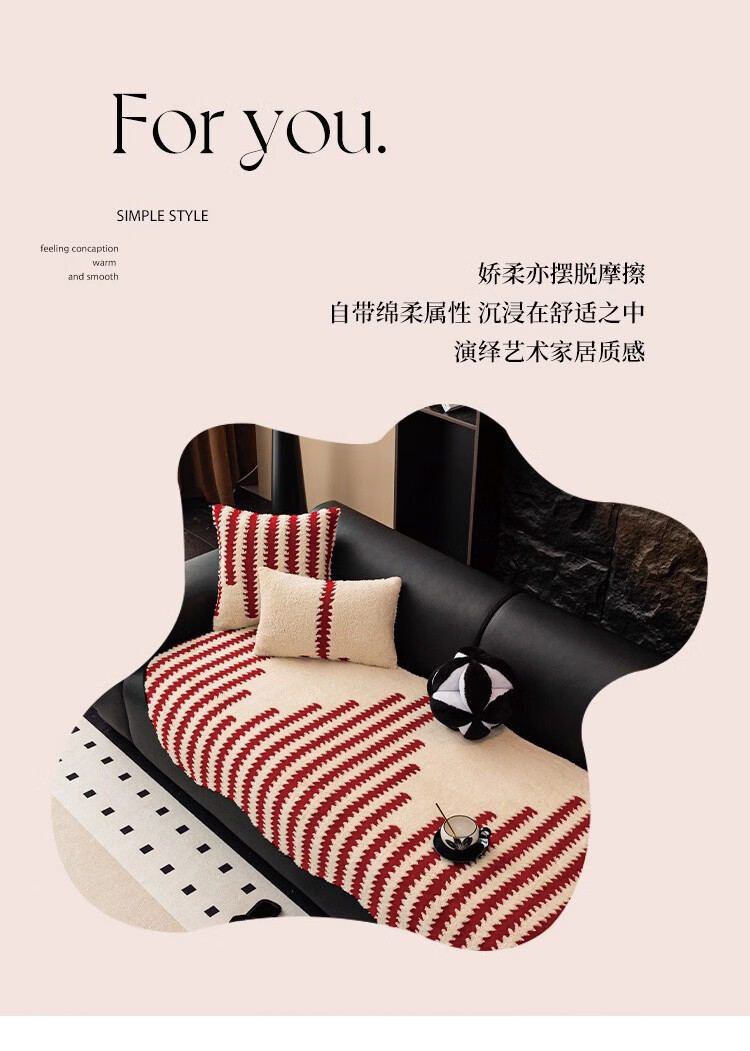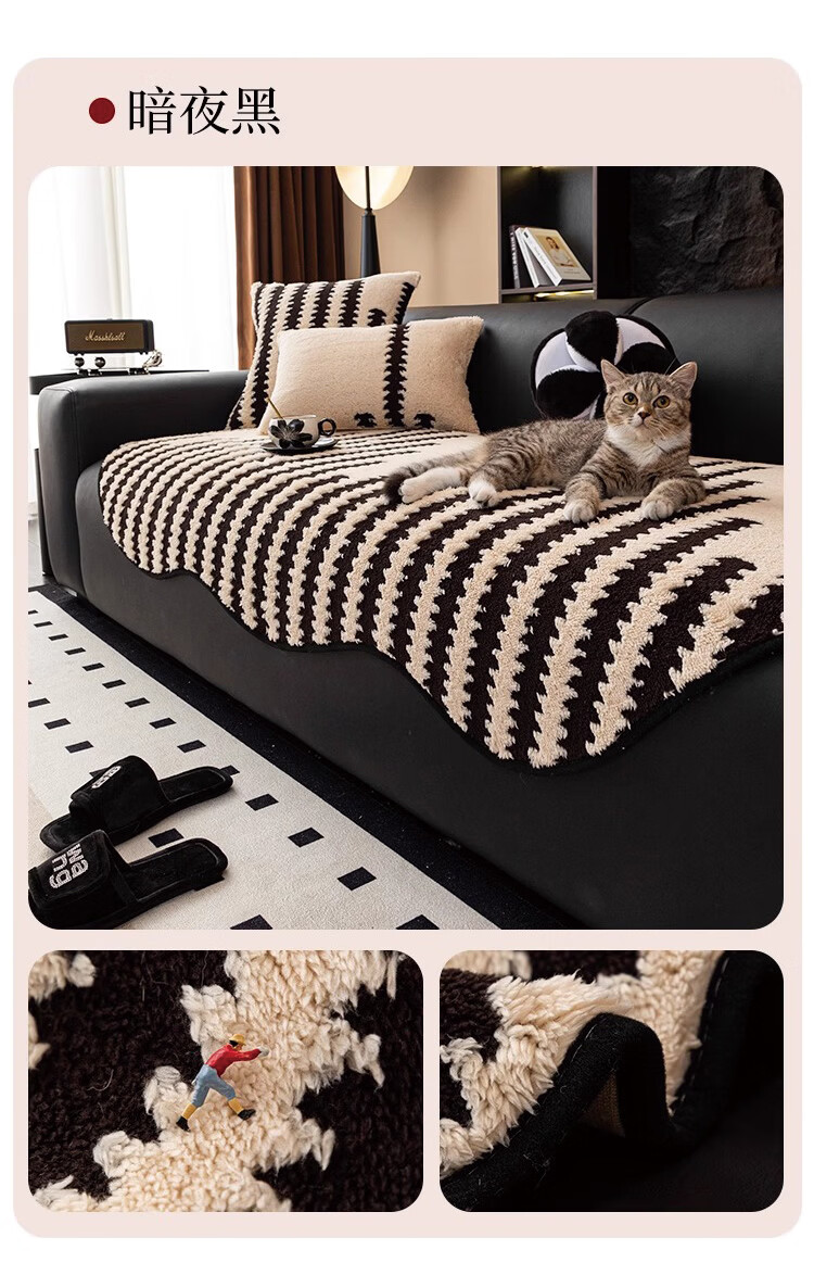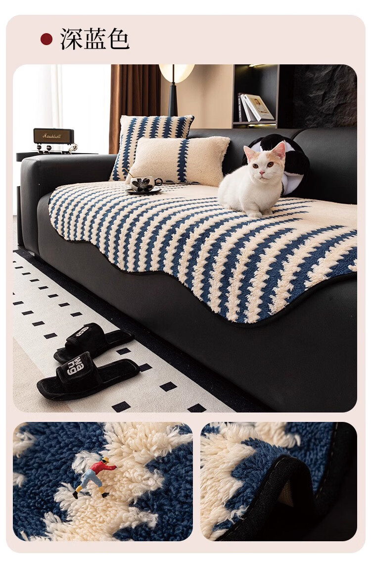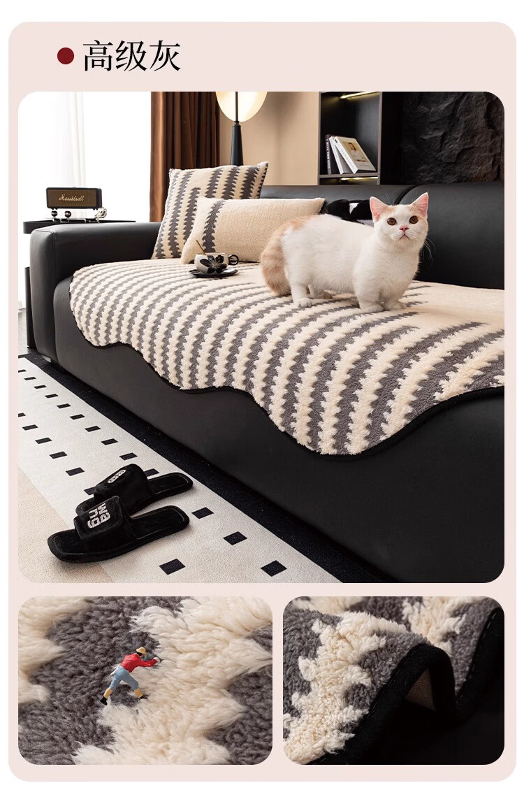 无印良品【皮沙发专用】沙发垫防滑毛绒耐磨坐垫四季通用一片式防猫抓盖布 竖条狗-红色_固定防滑不伤皮 抱枕套定制【联系客服/测量指导/快速报价】