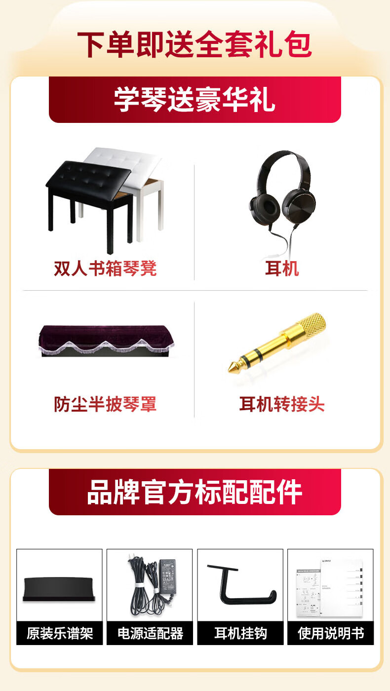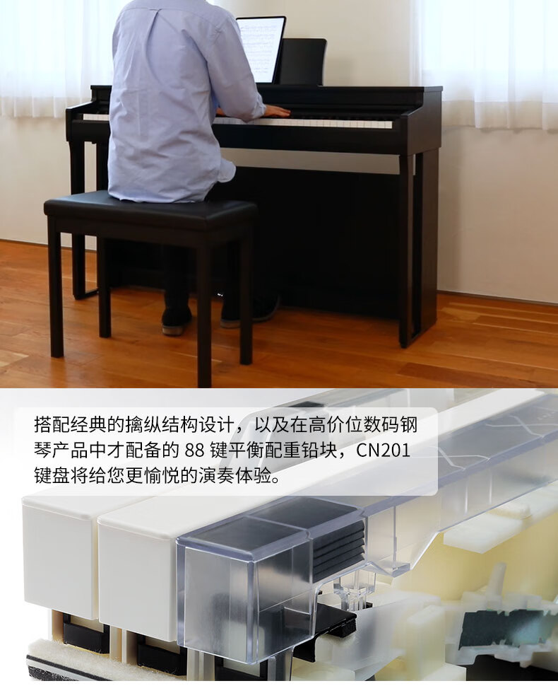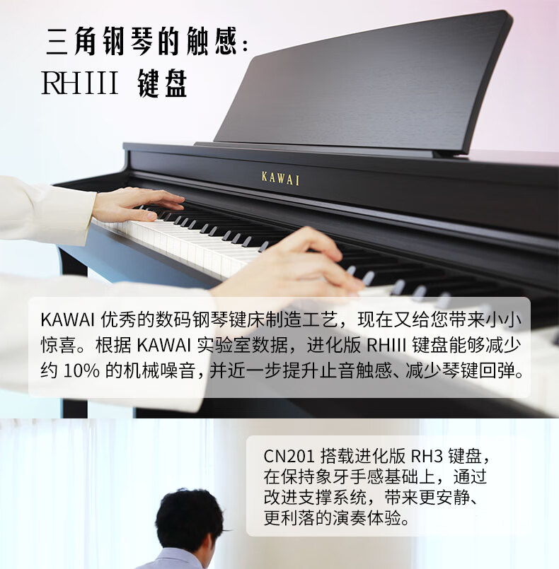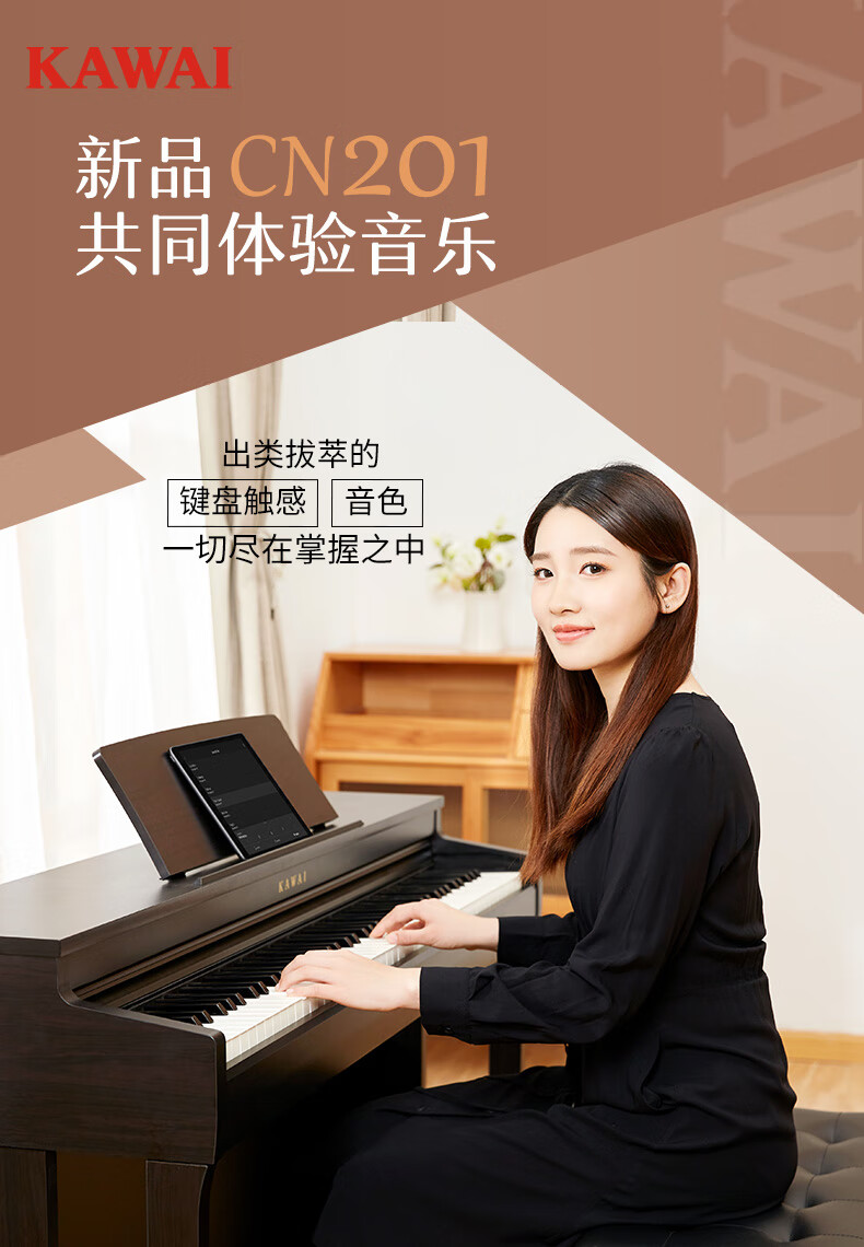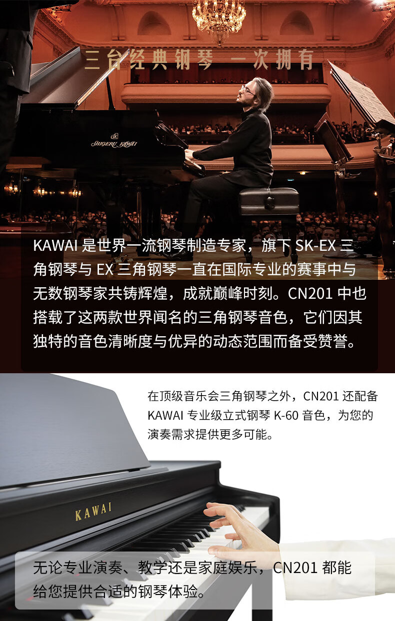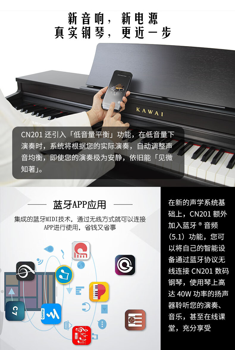 卡瓦依(KAWAI)电钢琴CN201键盘88键逐键配重 象牙质感键面家用考级专业钢琴乐器 CN201全套+超值礼包