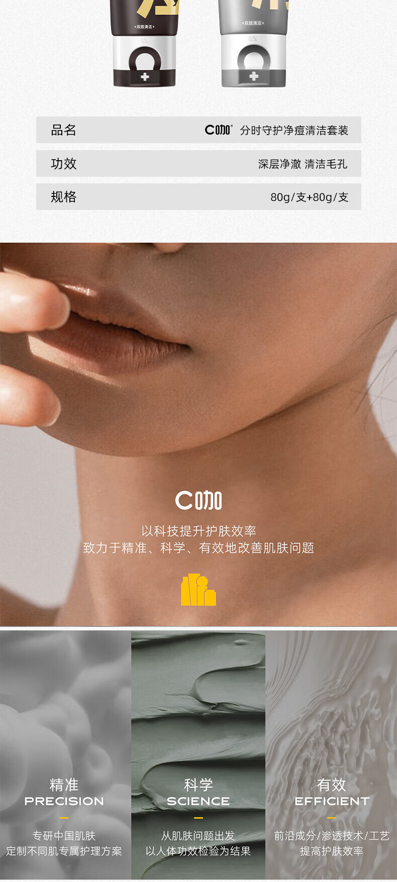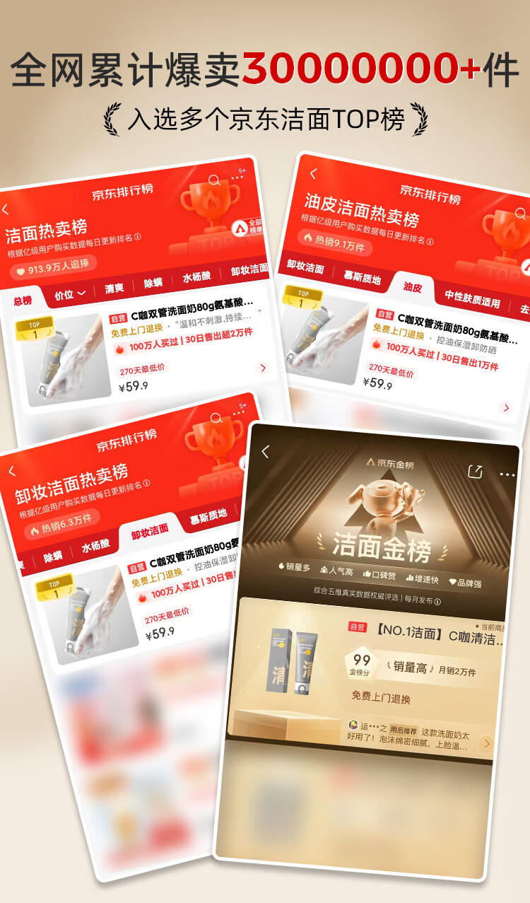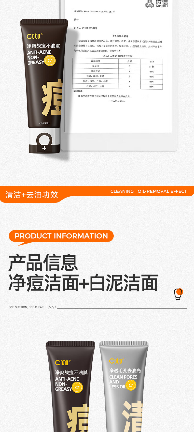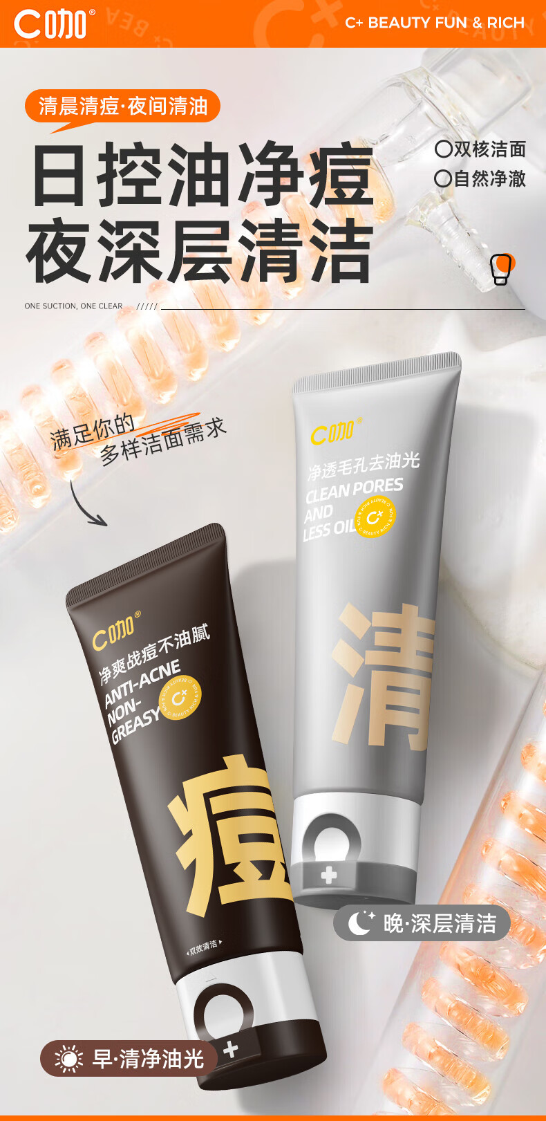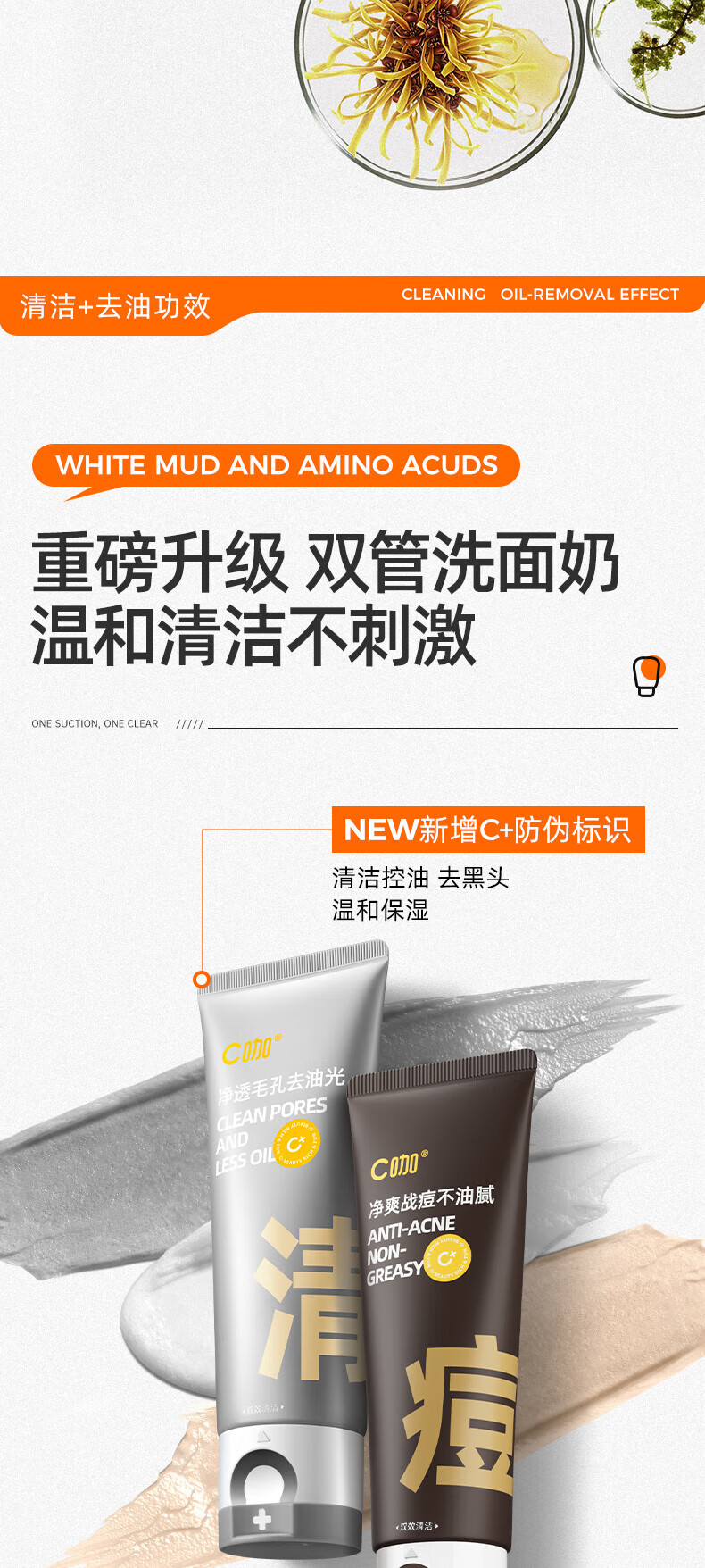 C咖清洁100g祛痘100g氨基酸洁面乳清透控油去黑头洗面奶新年礼物