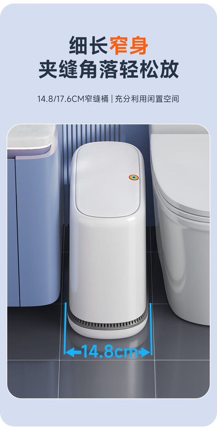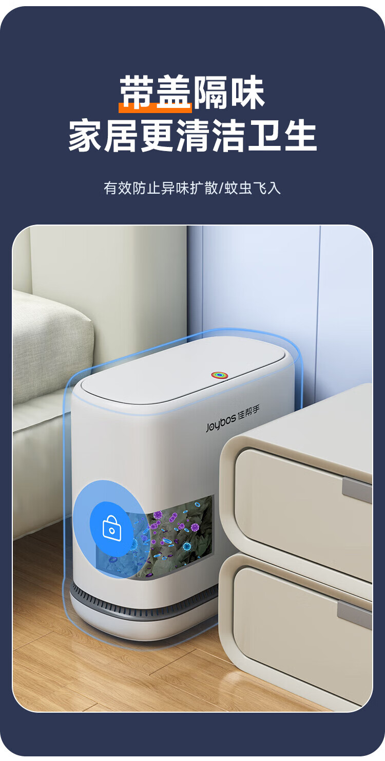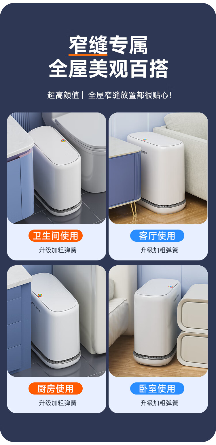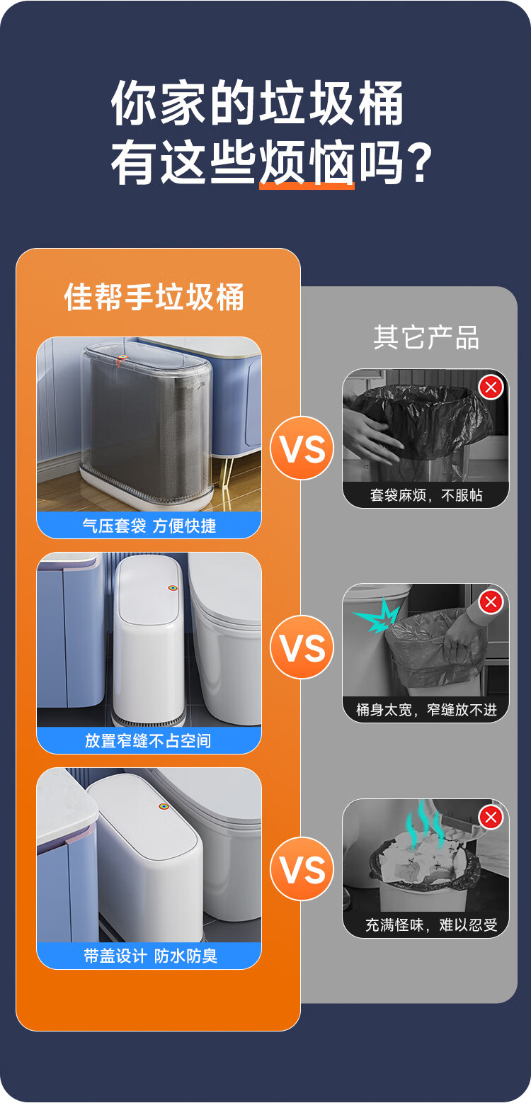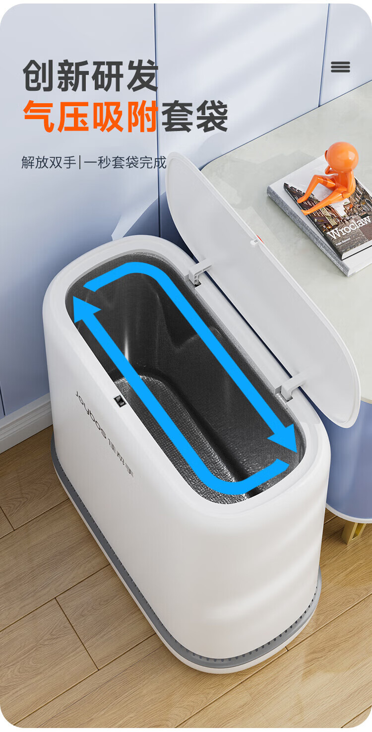 佳帮手气压铺袋垃圾桶家用8.6L带盖厕所卫生间客厅网红卧室厨房窄夹缝隙