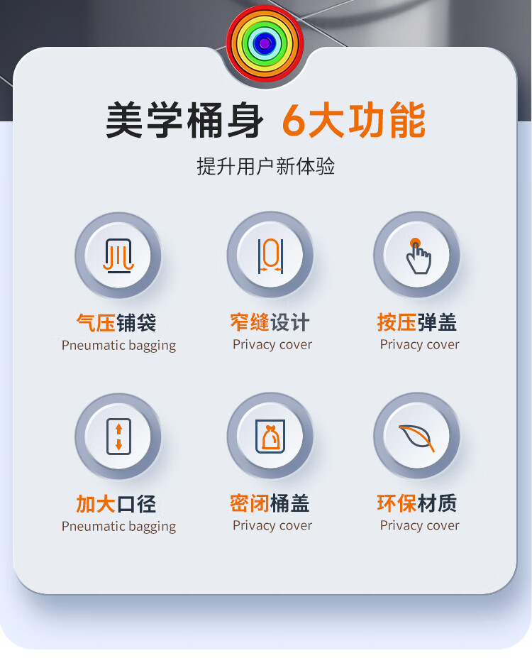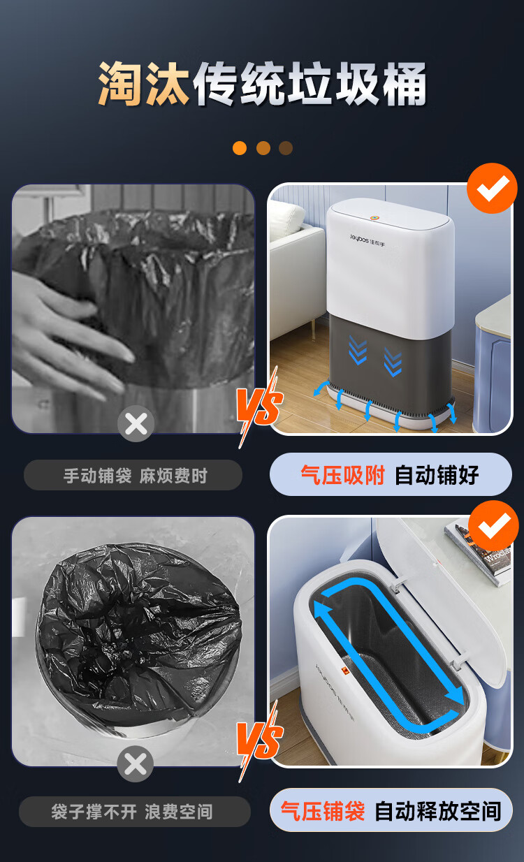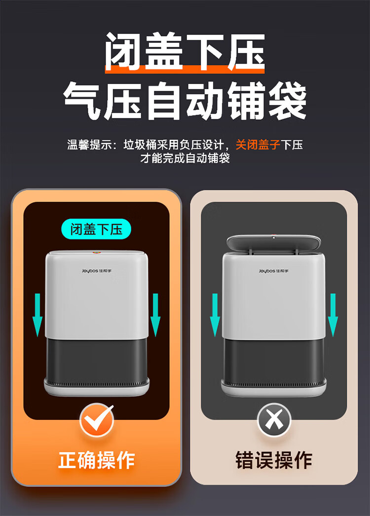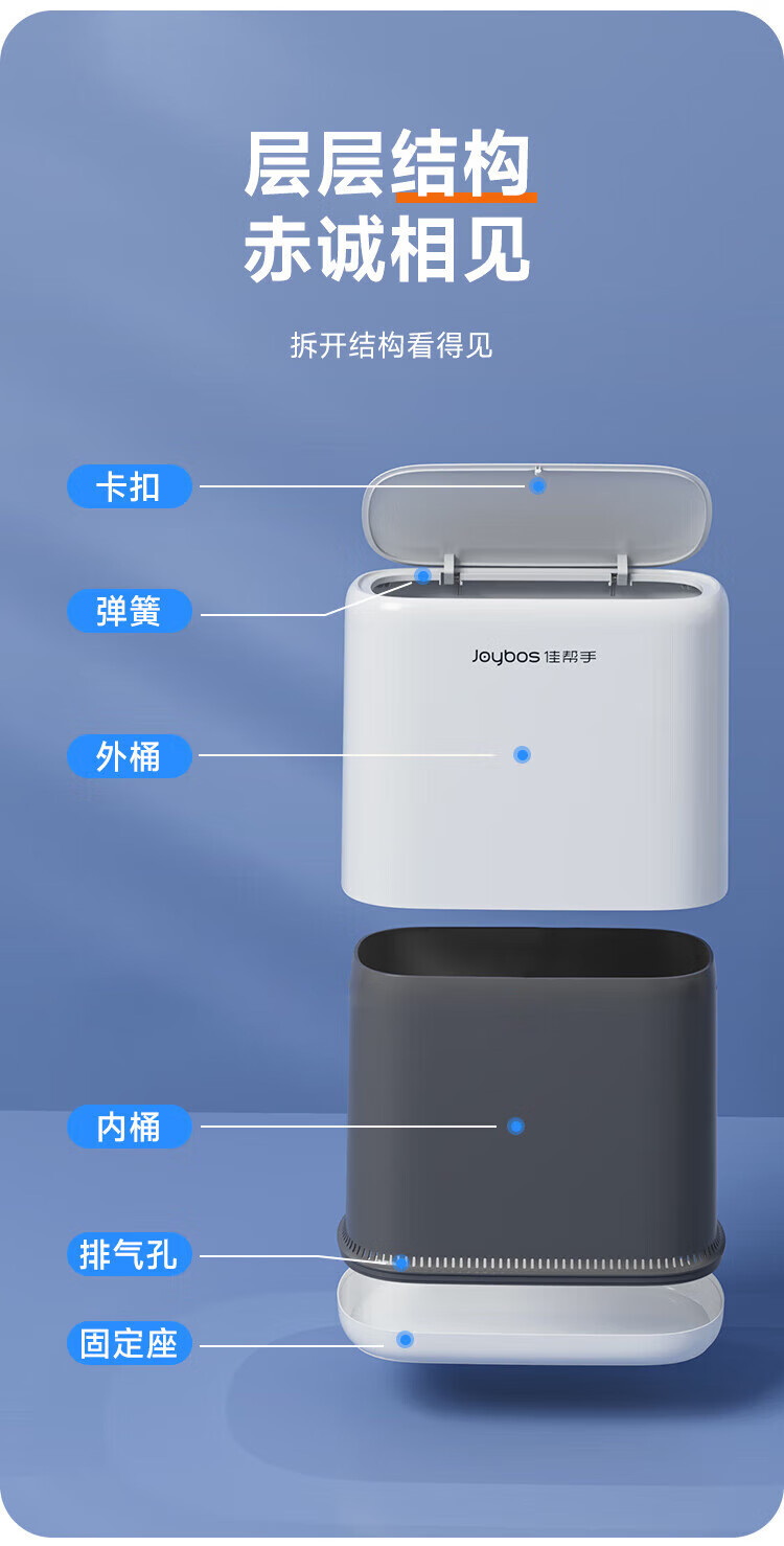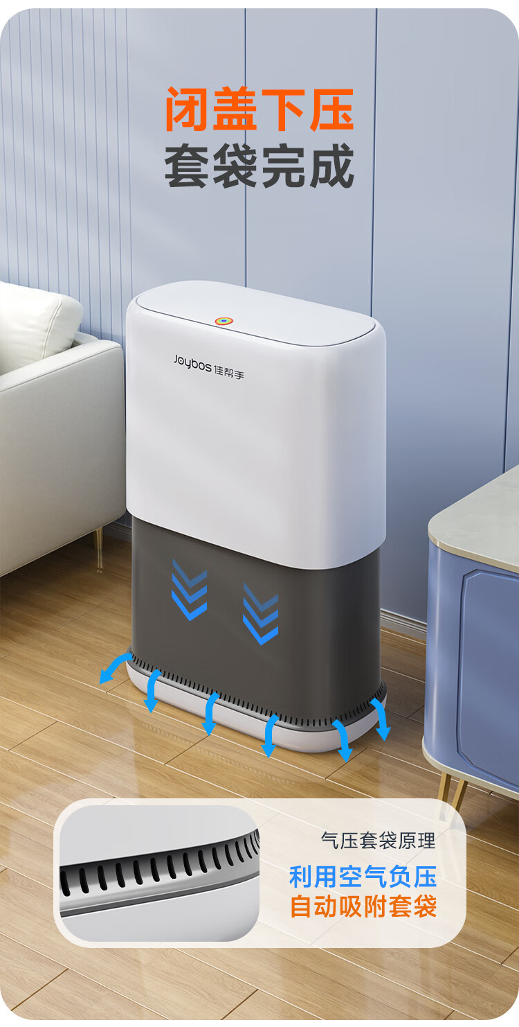 佳帮手气压铺袋垃圾桶家用8.6L带盖厕所卫生间客厅网红卧室厨房窄夹缝隙