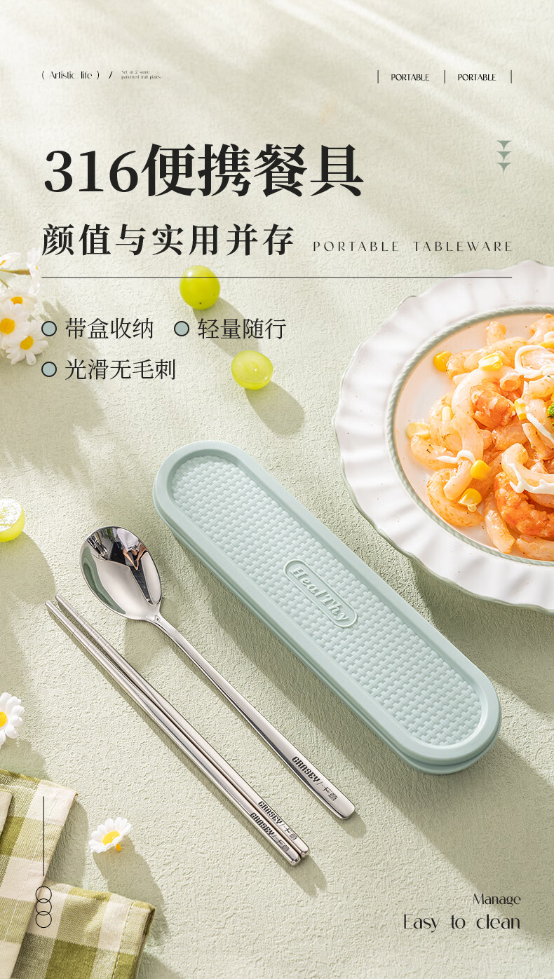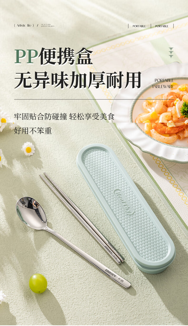 广意316不锈钢餐具 筷子勺子套装 一人一双专人专用 盒子收纳盒GY8903