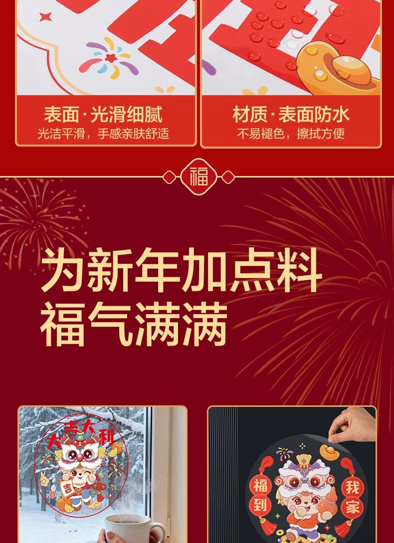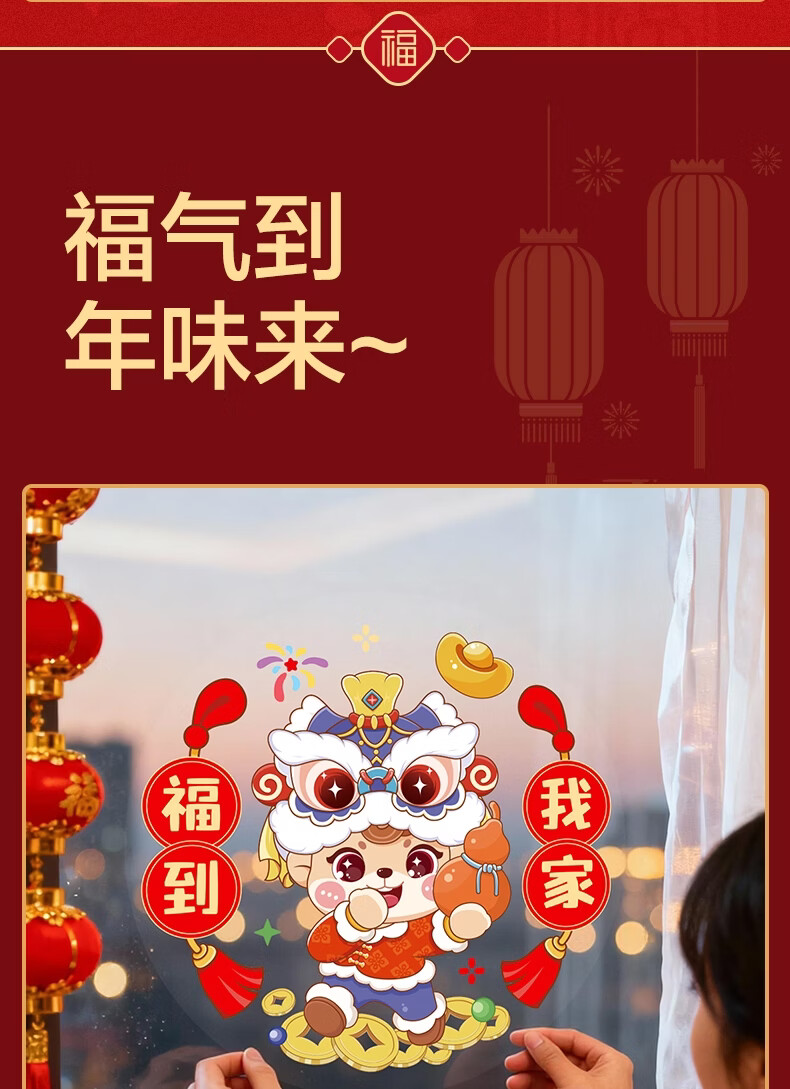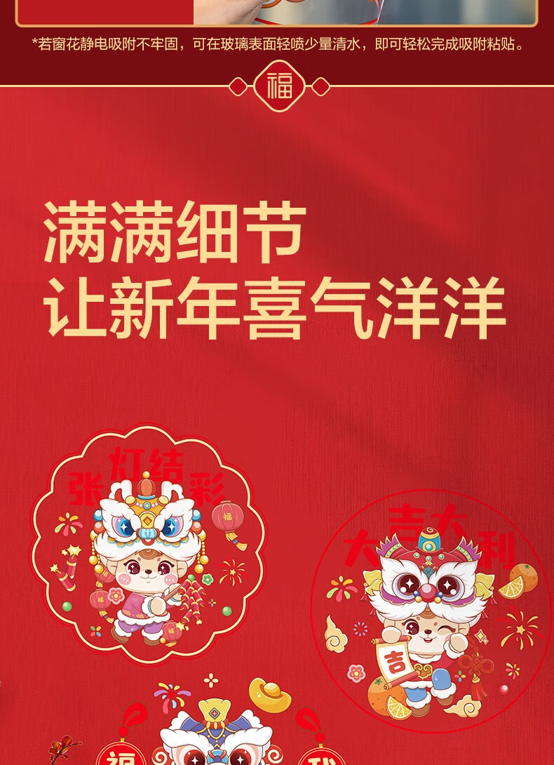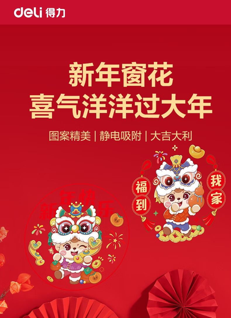 得力(deli)新年窗花2026马年春节氛围装饰品精美 年味十足过年布置玻璃静电贴10张/袋擦水吸附无需贴胶