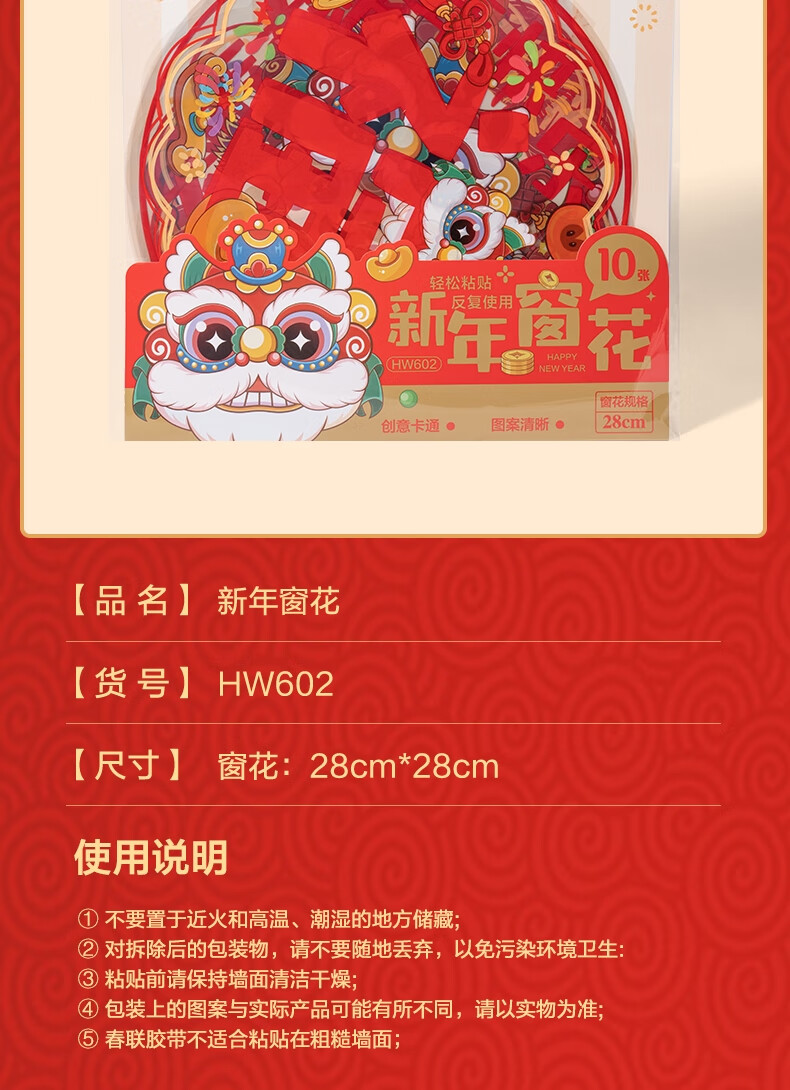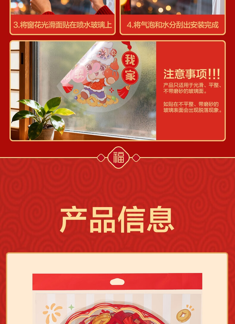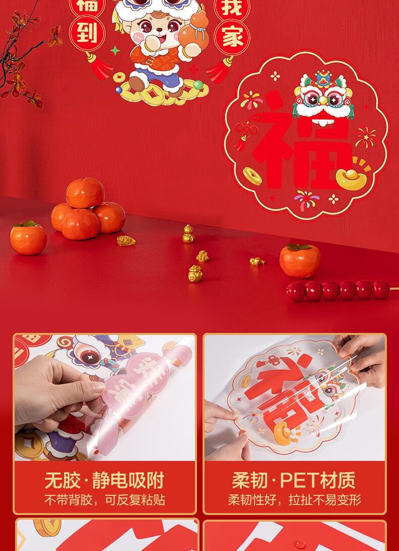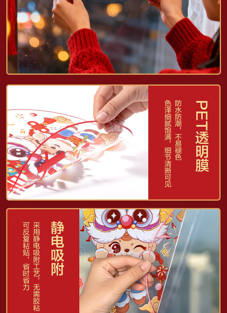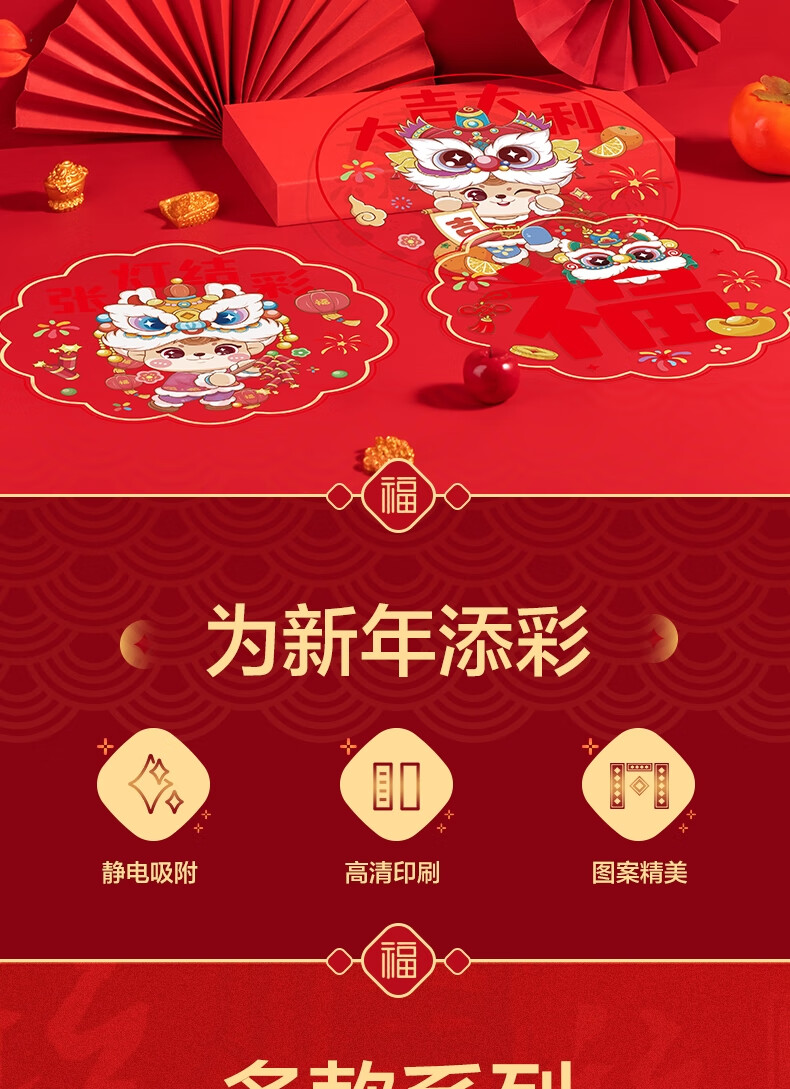 得力(deli)新年窗花2026马年春节氛围装饰品精美 年味十足过年布置玻璃静电贴10张/袋擦水吸附无需贴胶