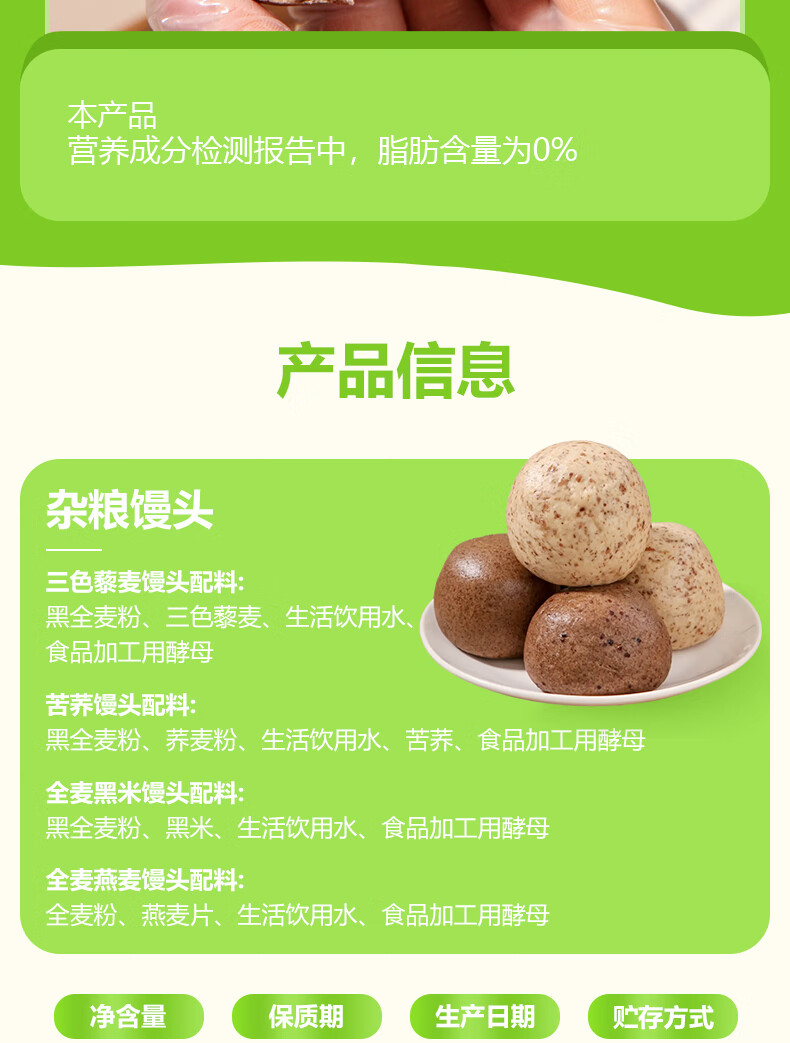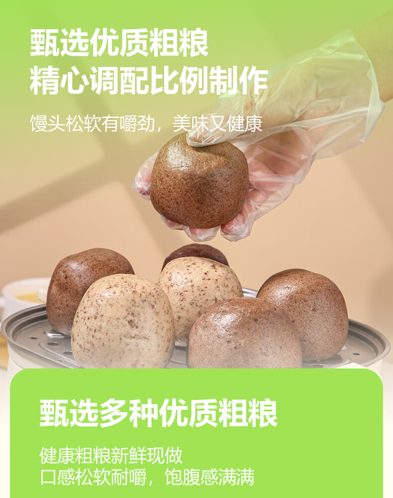 华田禾邦全麦杂粮馒头 800g*2袋 16个 手工无糖五谷杂粮包 速食面点 早餐