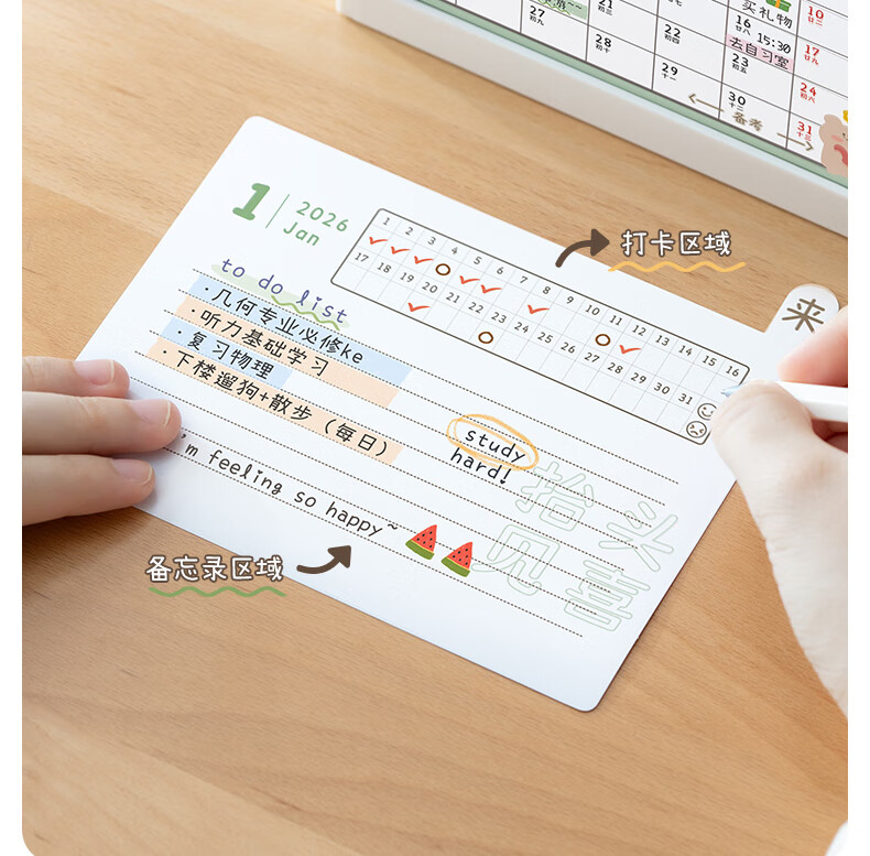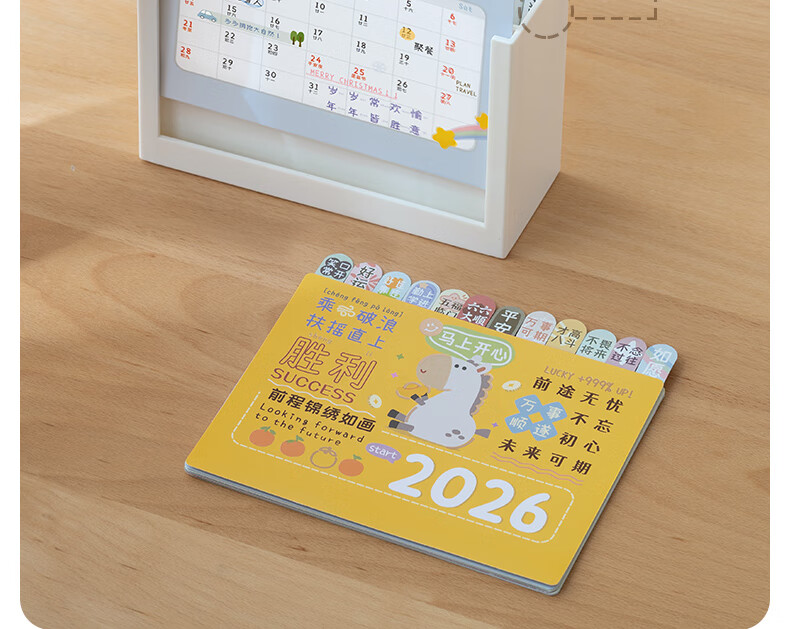 时代良品创意卡通台历笔筒二合一2026年新款日历马年活动月历办公室桌面摆件记事本儿童打卡本 红色(台历日期:2026年)