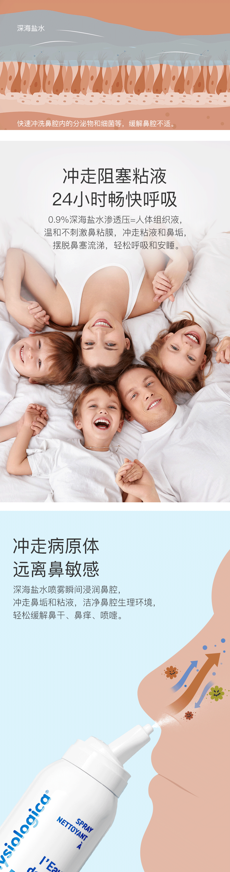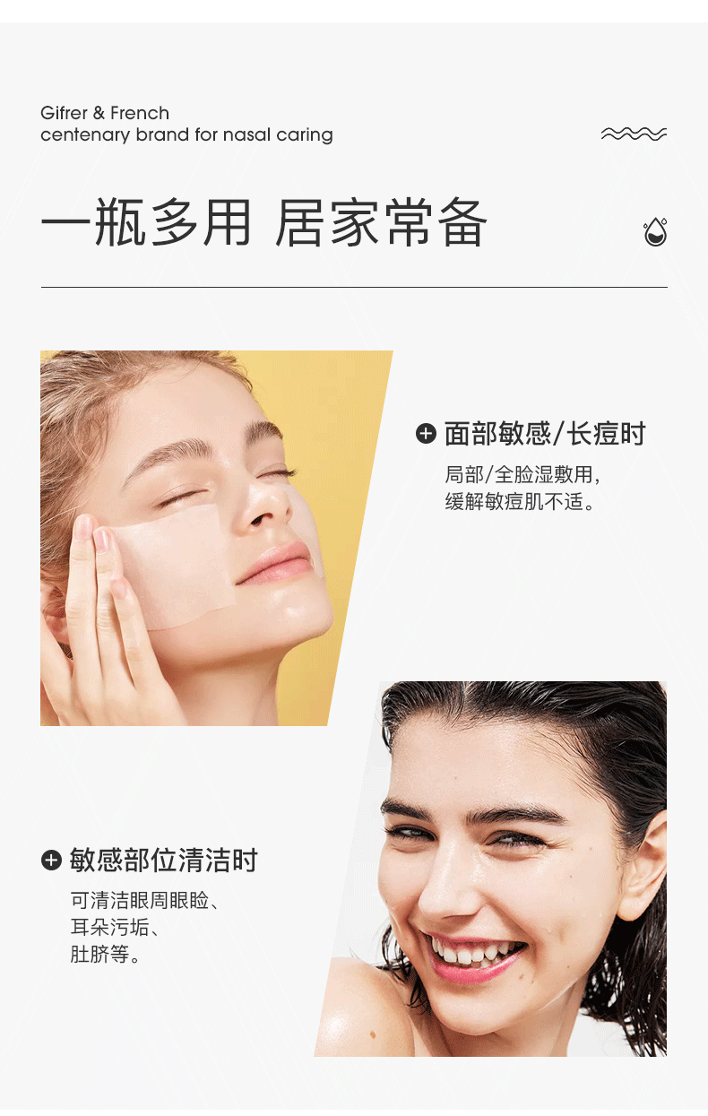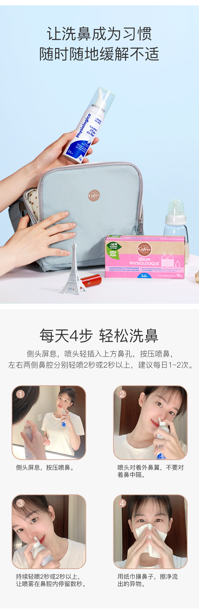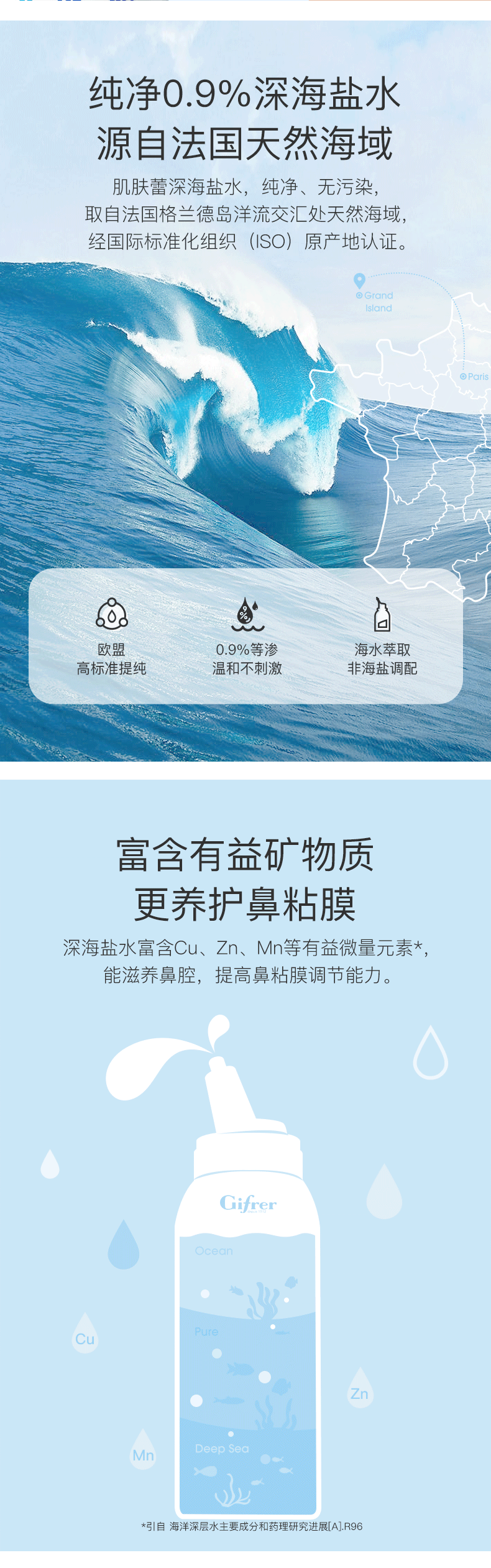 肌肤蕾(gifrer)海盐水喷鼻 婴儿生理盐水洗鼻 儿童鼻塞鼻喷 洗鼻盐水喷雾 100ml