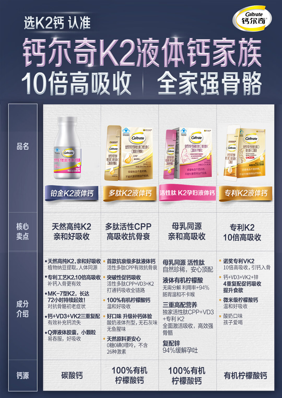 钙尔奇铂金液体钙120粒*3 男女士中老年钙片 补钙维生素D维生素k2
