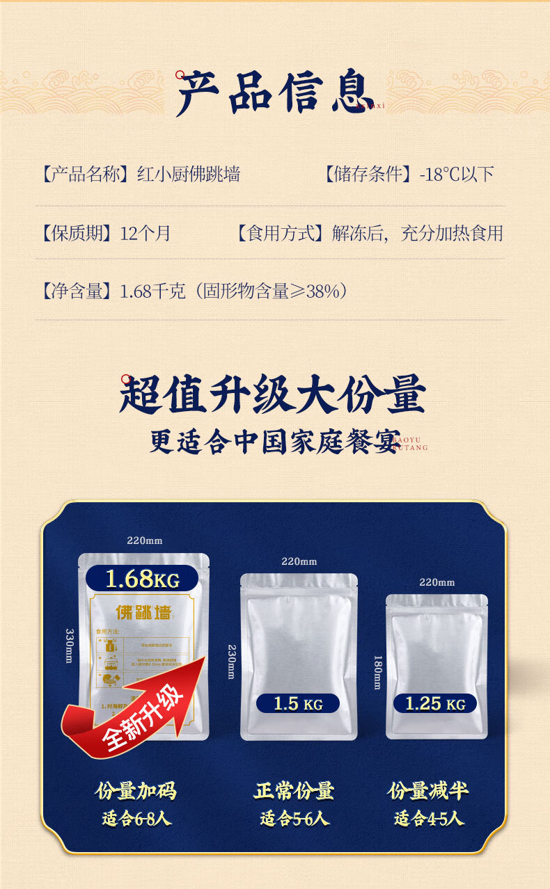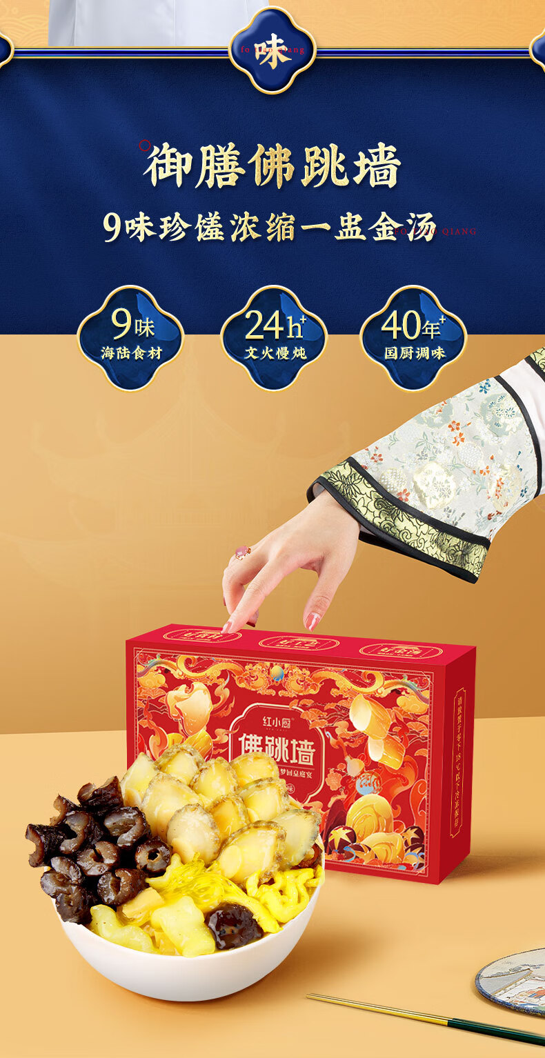 红小厨 正宗金汤佛跳墙加热即食海参鲍鱼花胶 大盆菜海鲜预制菜生鲜礼盒 【10参10鲍】1680g佛跳墙
