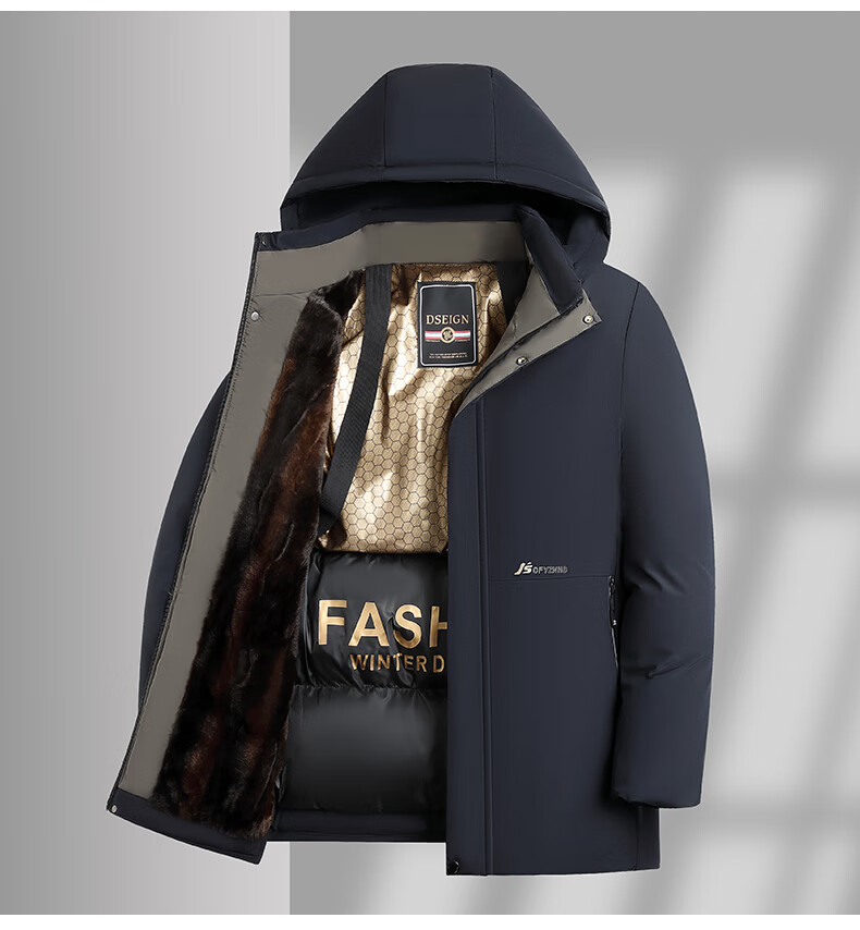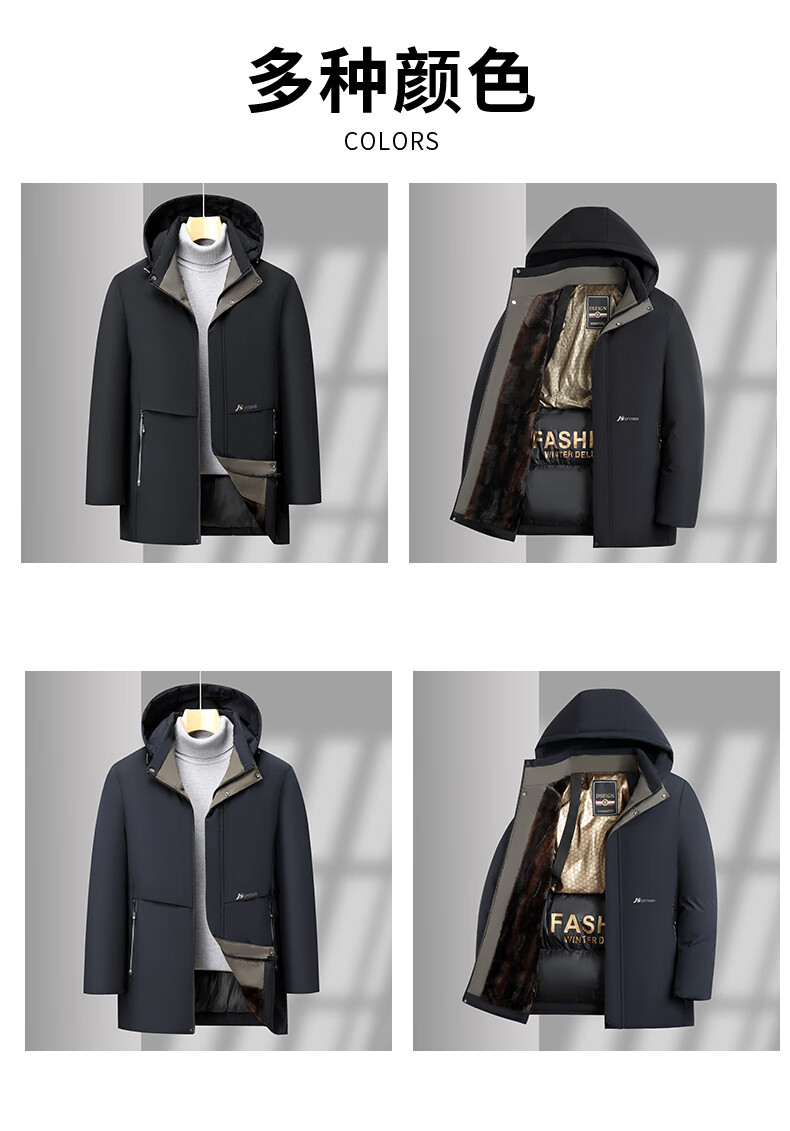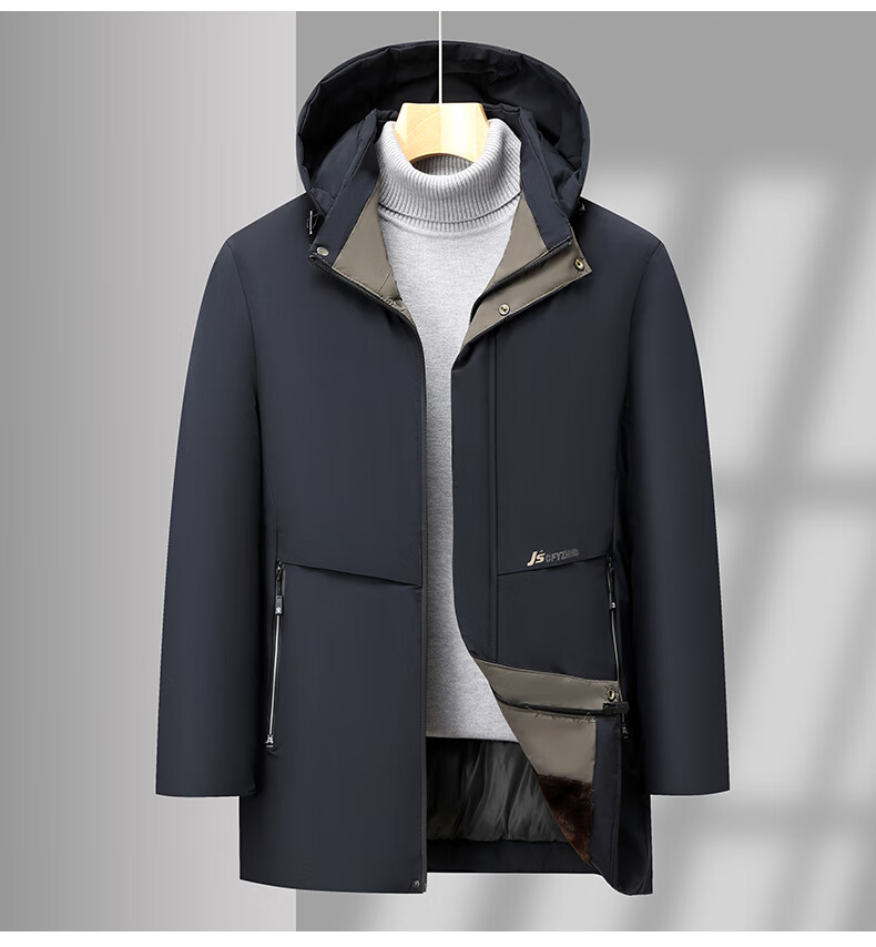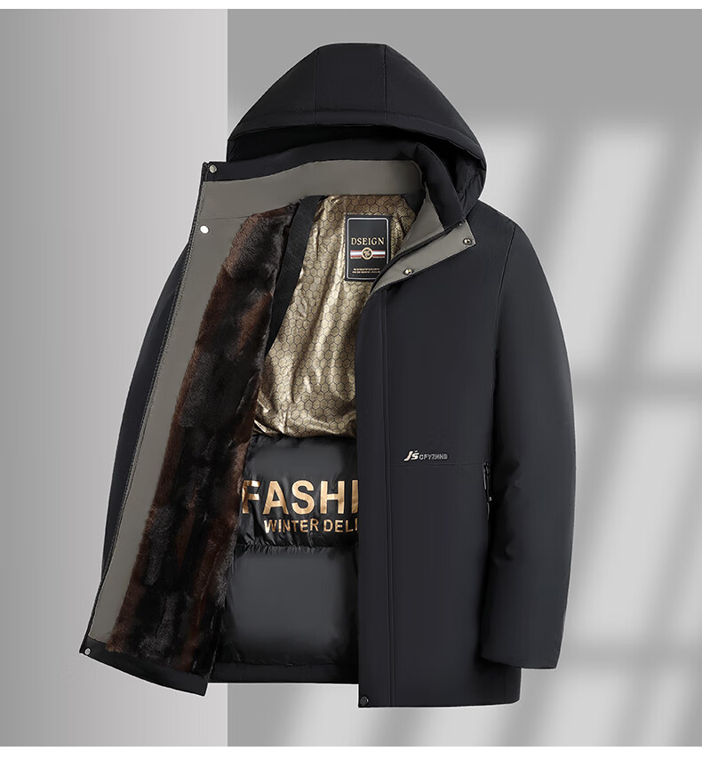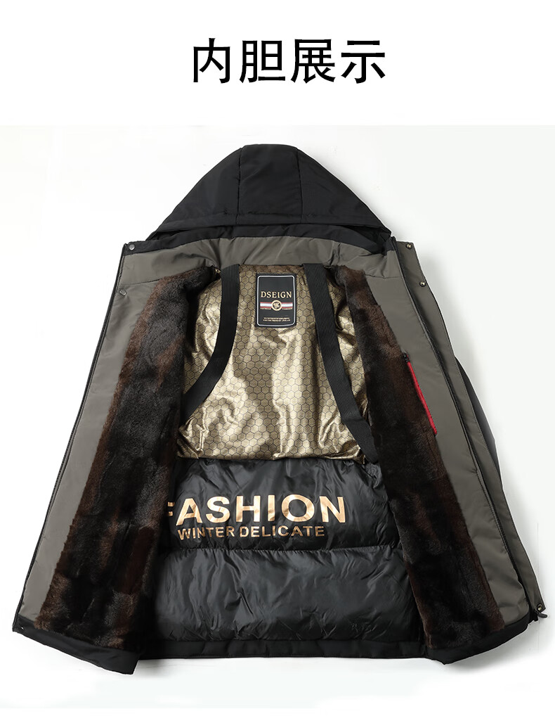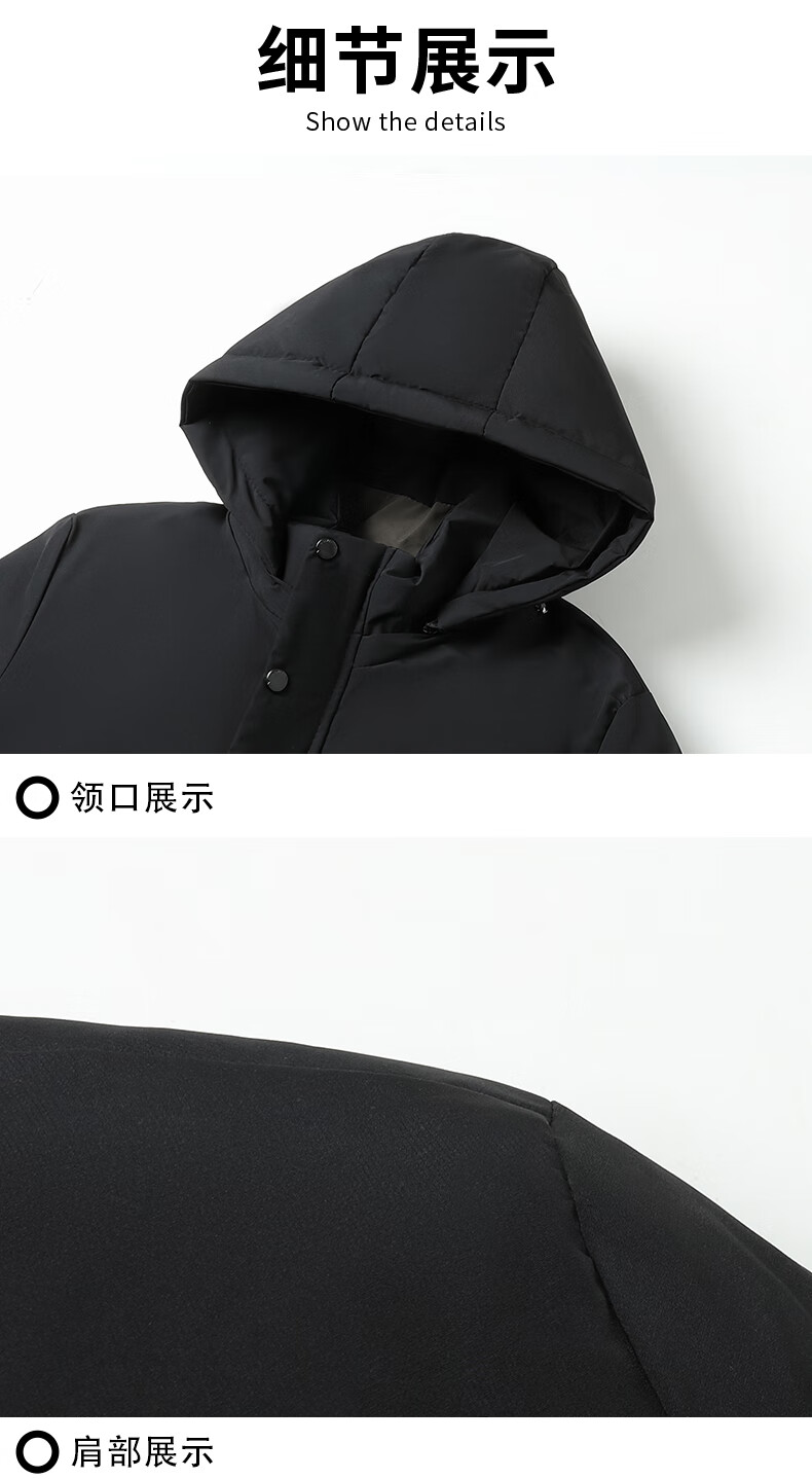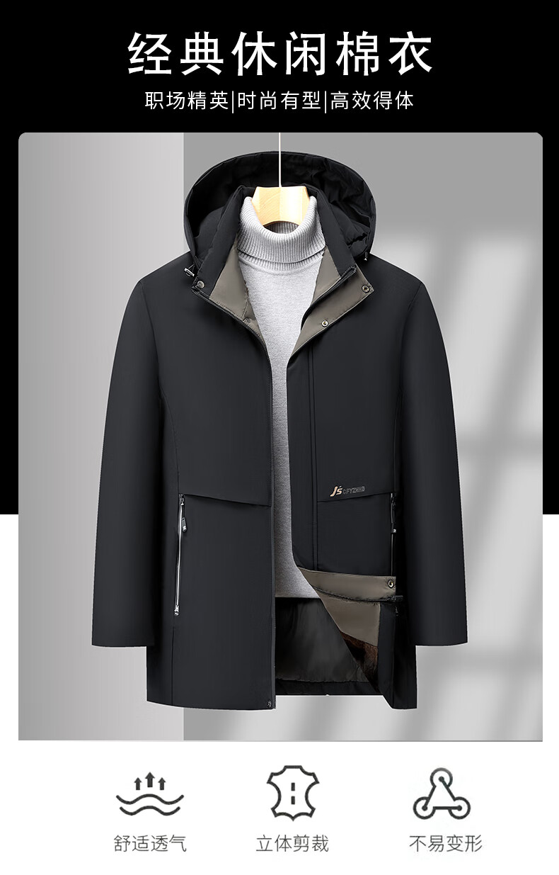 罗蒙(ROMON)可卸连帽男士棉服中长款2025冬季新款加绒保暖棉衣外套爸爸装棉袄 黑色 2XL (建议体重130-145斤)
