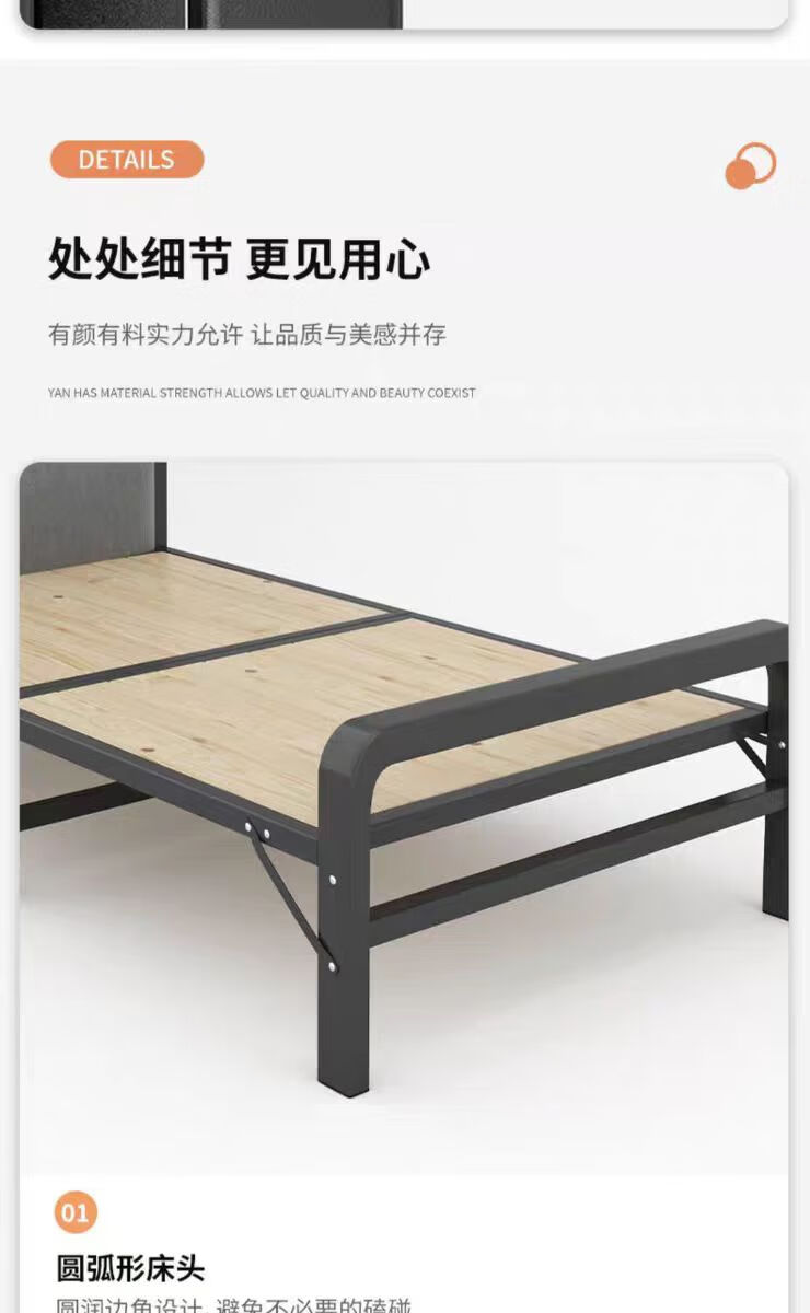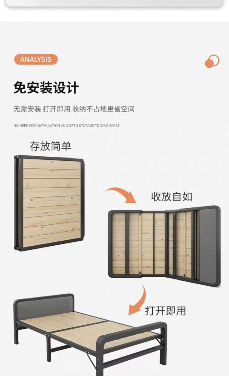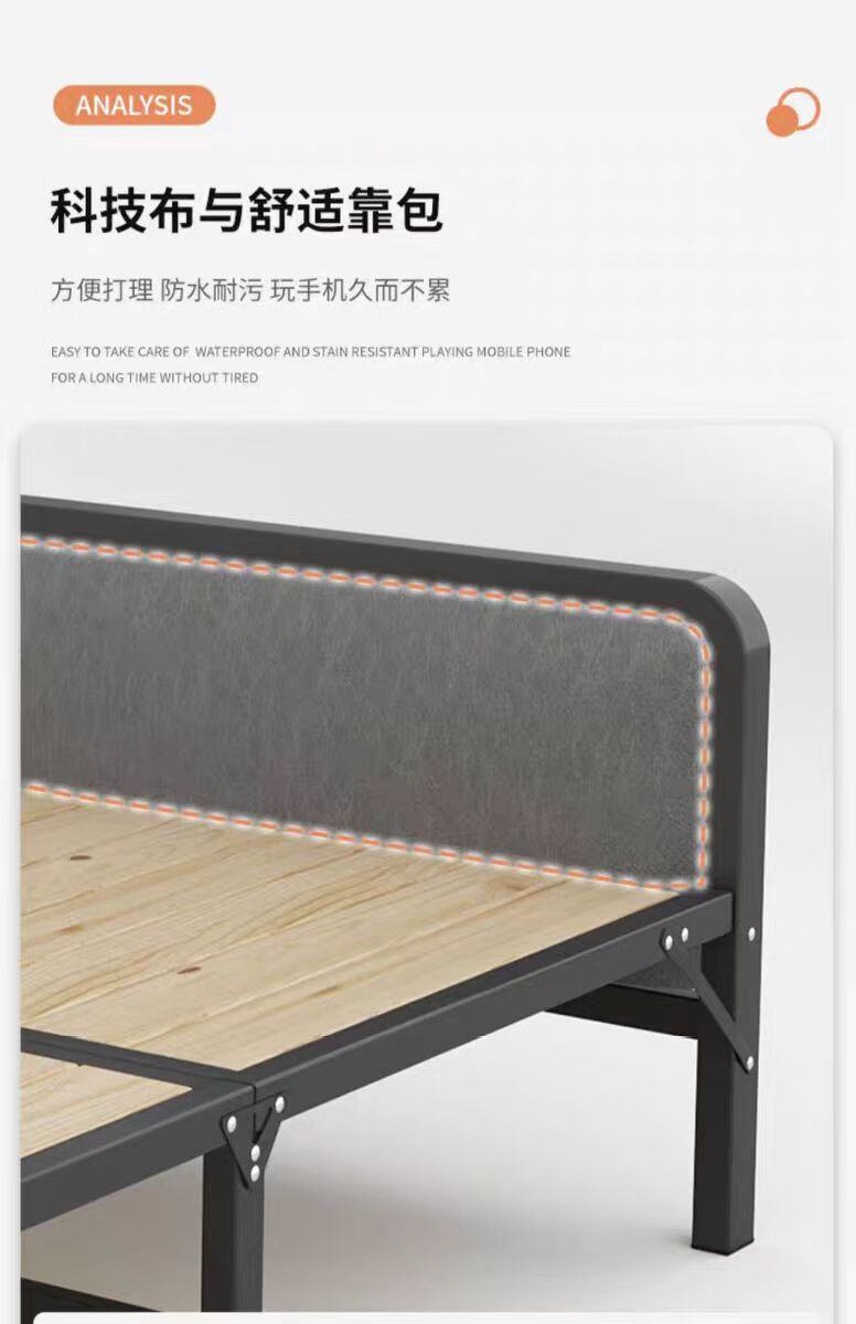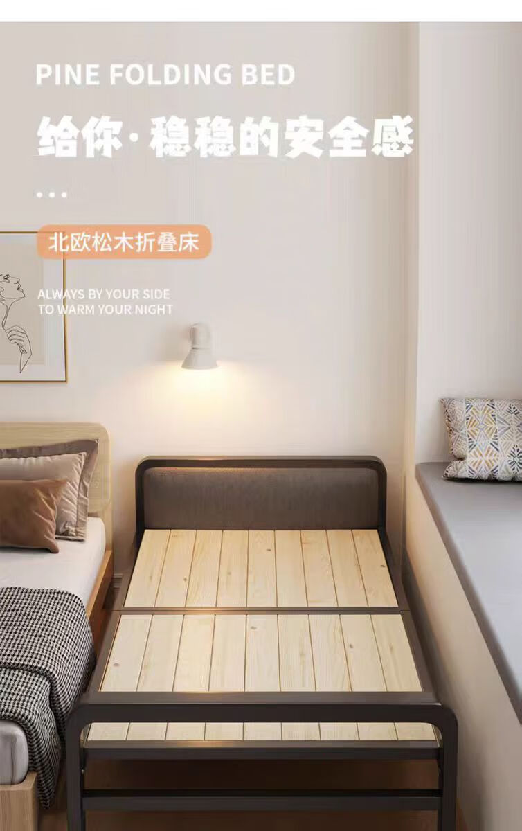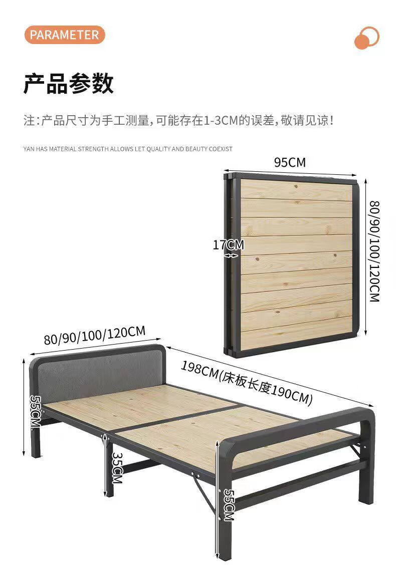 希昊折叠床单人实木床板家用午休成人办公室午睡简易床双人出租屋铁床 加厚钢架床头100cm宽+海绵垫 单折