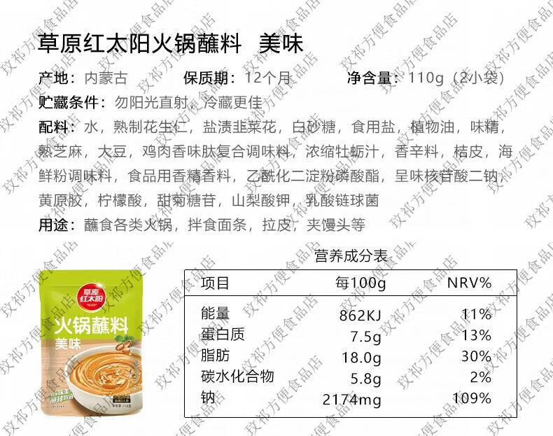 火锅蘸料110g原味香辣家用麻酱涮羊肉拌面酱料小包装 火锅蘸料美味110g