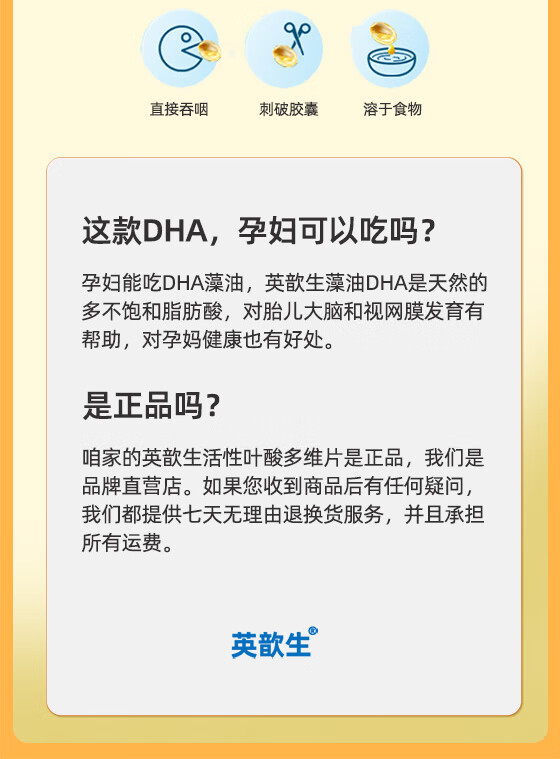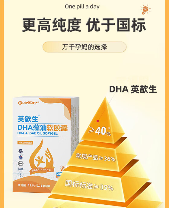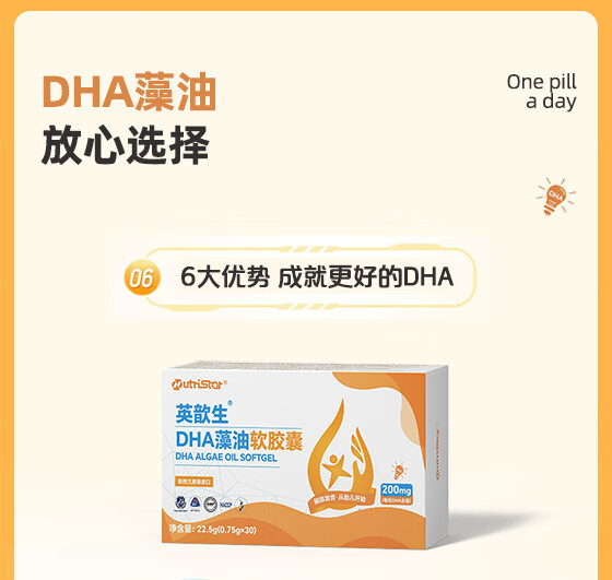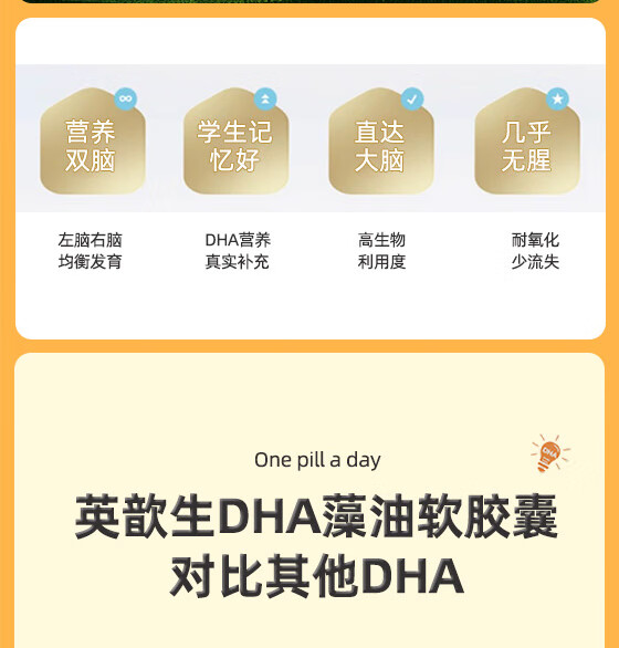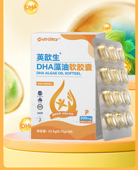 英歆生DHA藻油软胶囊 孕妇婴幼儿青少年记忆力dha多种维生素 新西兰进口 【2盒周期装】 30粒*1盒 下单赠一盒