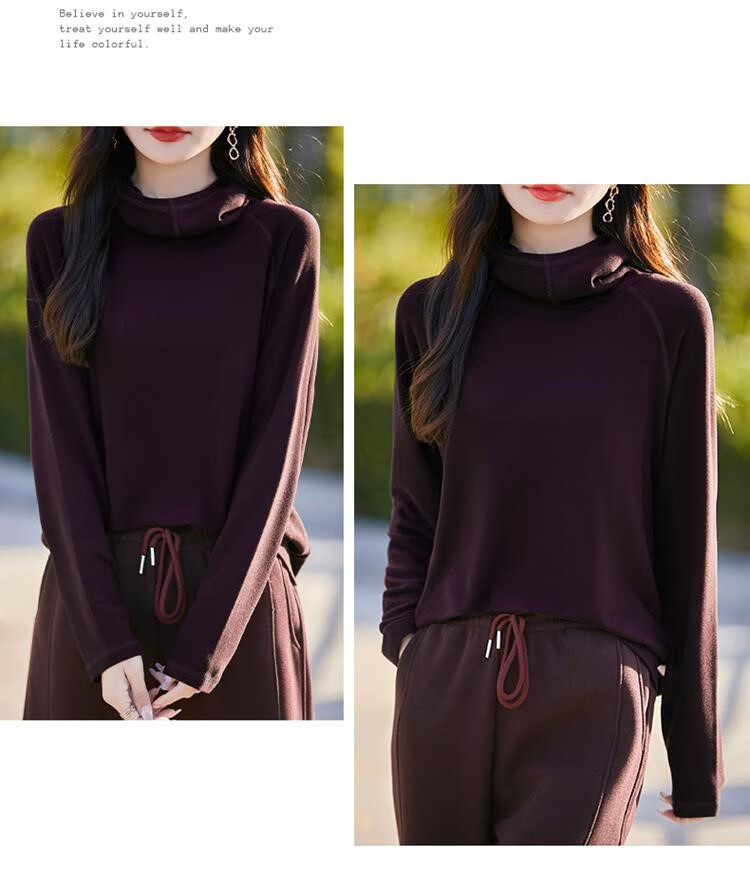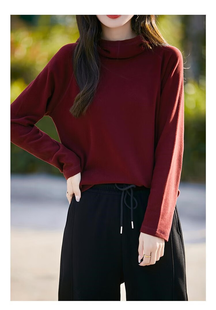 EMZ鄂尔多斯2025年春秋冬新款秋冬加厚德绒堆堆圆领休闲减龄帽衫套头 安可拉红 安可拉红 M 码收藏加购有礼