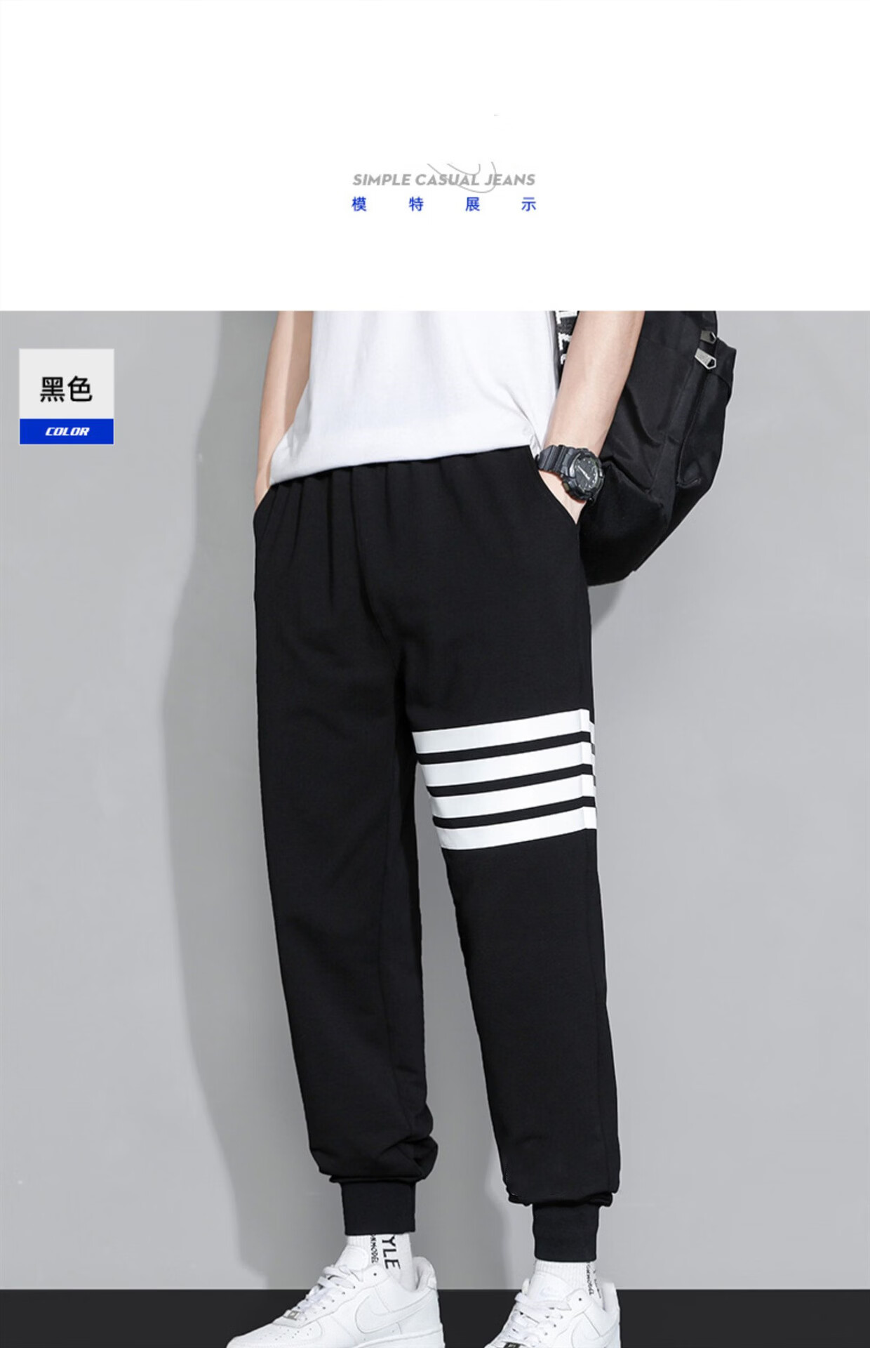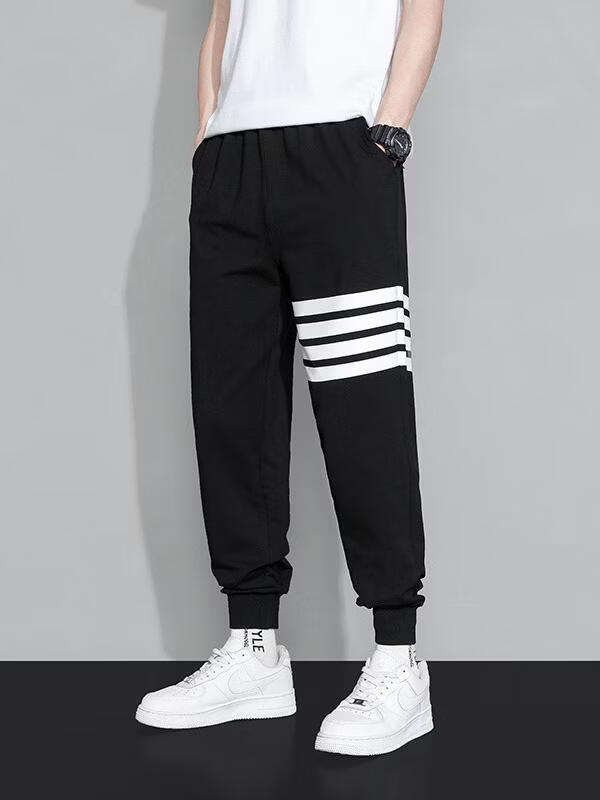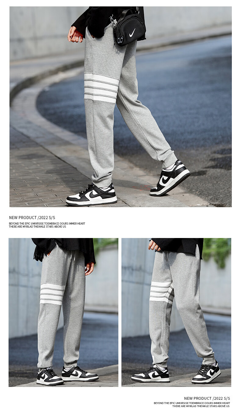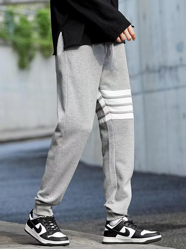 锐图森春秋华夫格卫裤男士夏季时尚百搭潮牌运动裤子宽松纯色束脚休闲裤 303【黑色】裤子 M (建议80-95斤)