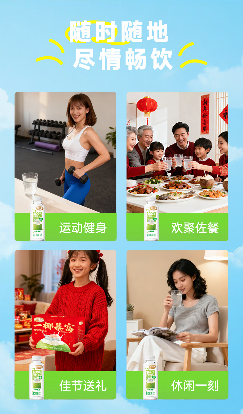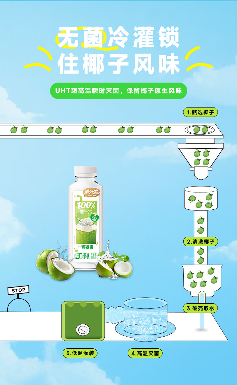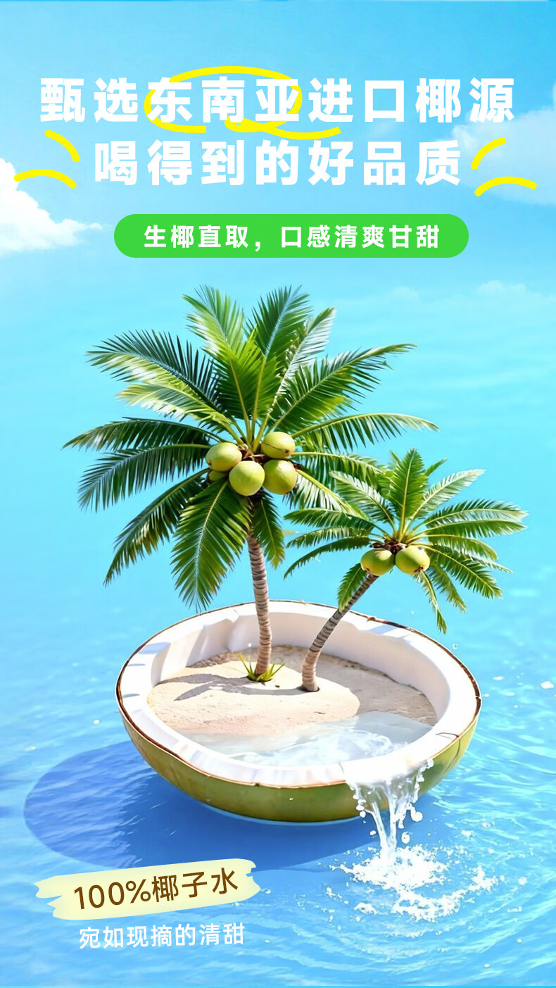 鲜汁美100%椰子水果汁饮料0脂肪天然电解质果蔬汁饮品整箱 100%椰子水400ml*6瓶