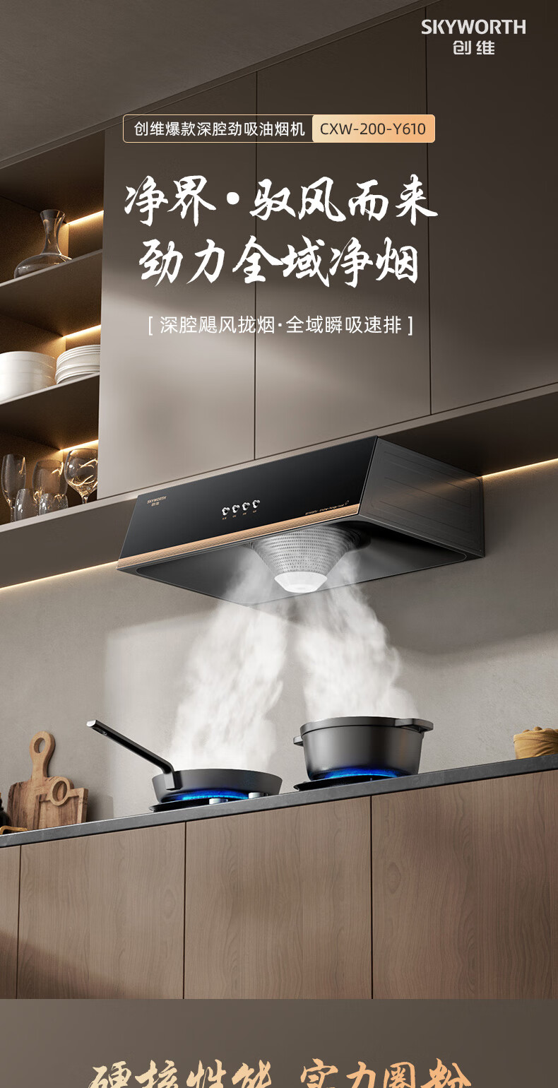 创维(Skyworth)抽吸排油烟机家用中式顶吸经典简易按键 脱排老式厨房小尺寸Y610可配燃气灶