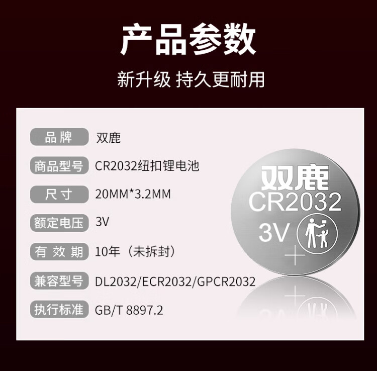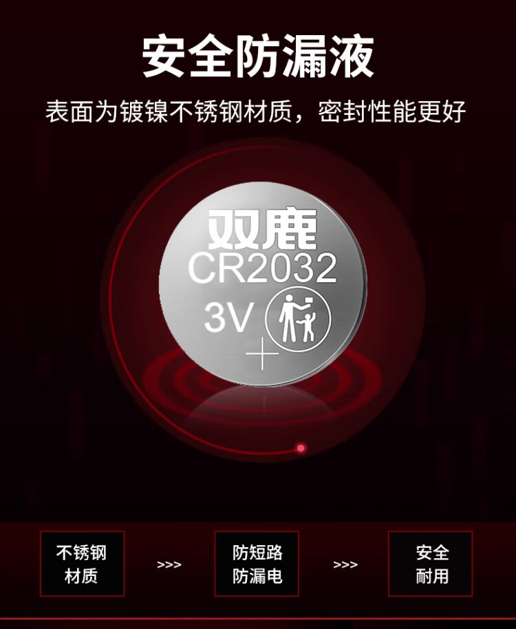 双鹿 CR2032纽扣电池 3v锂电子电池5粒卡装 适用于电脑主板/汽车钥匙/遥控器/电子秤 CR2032