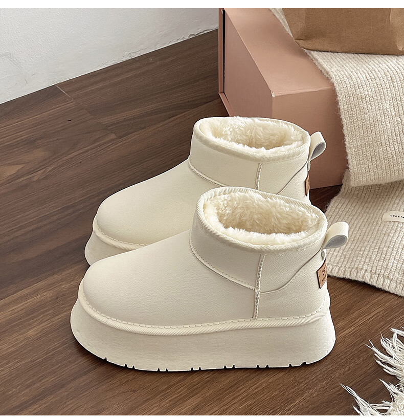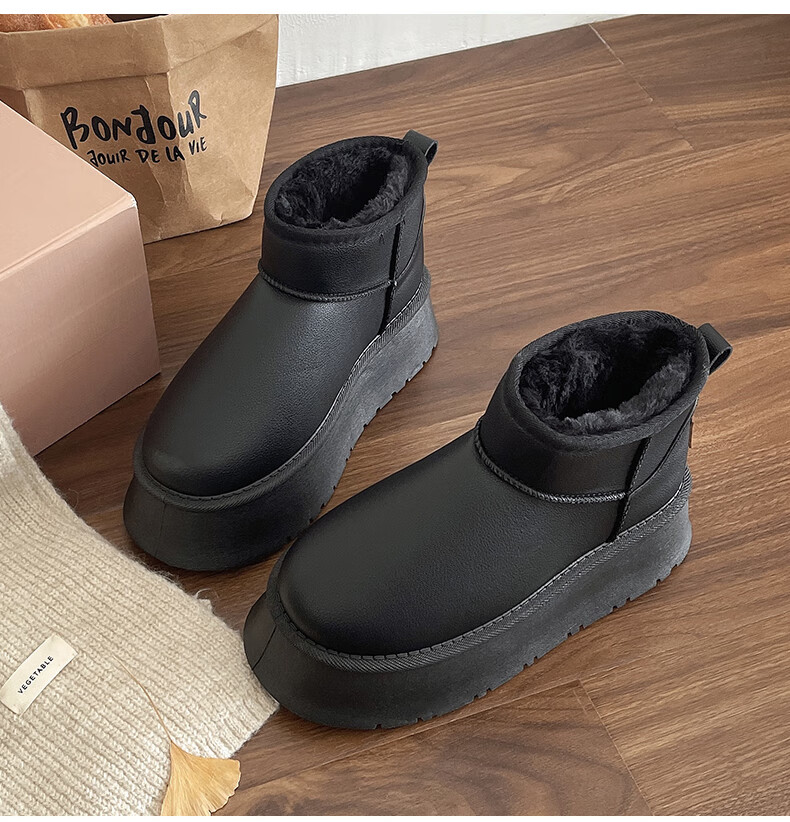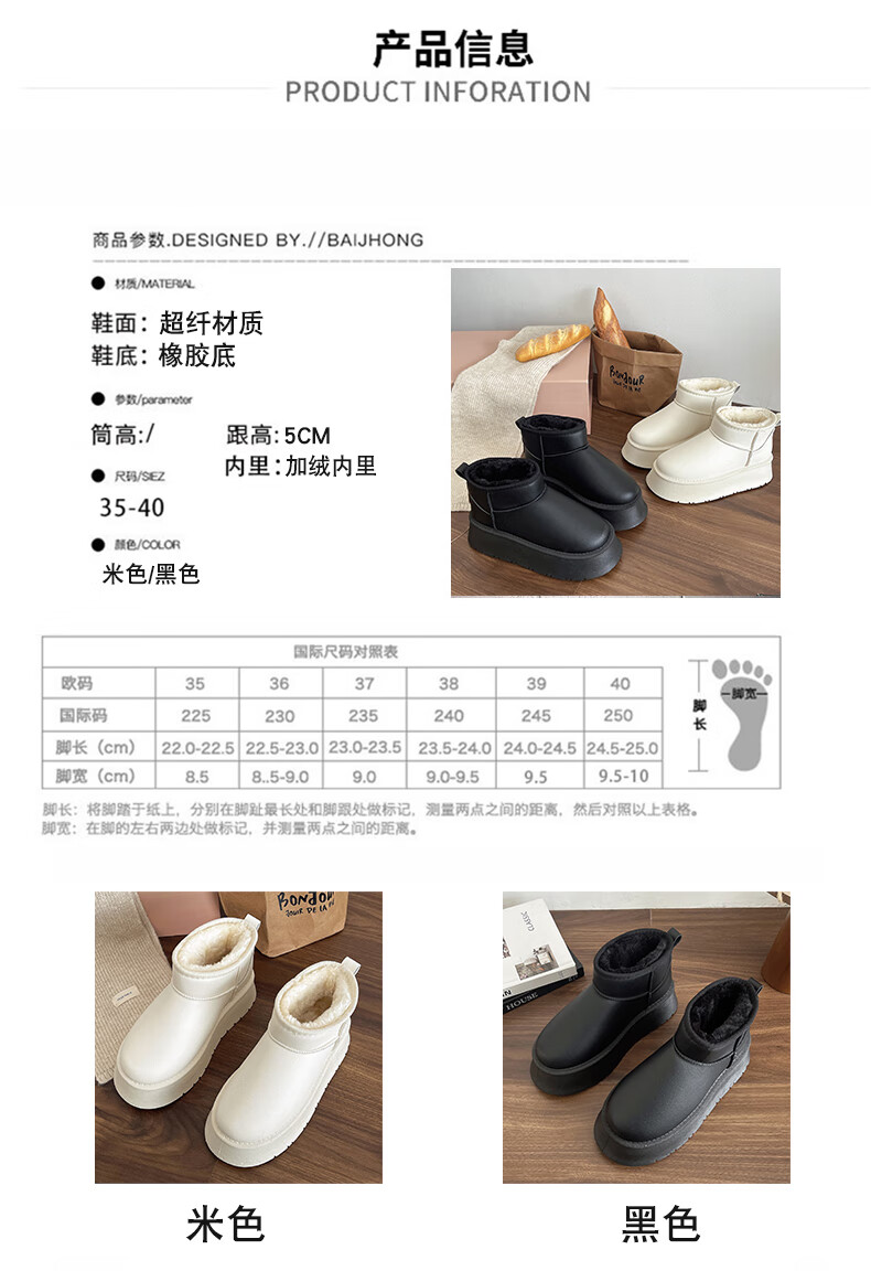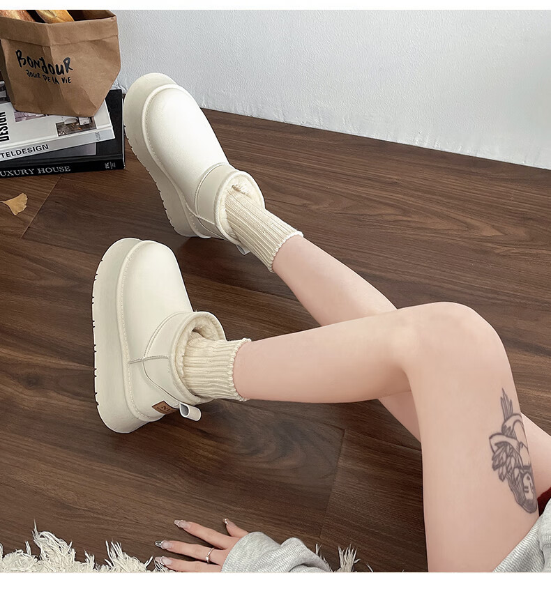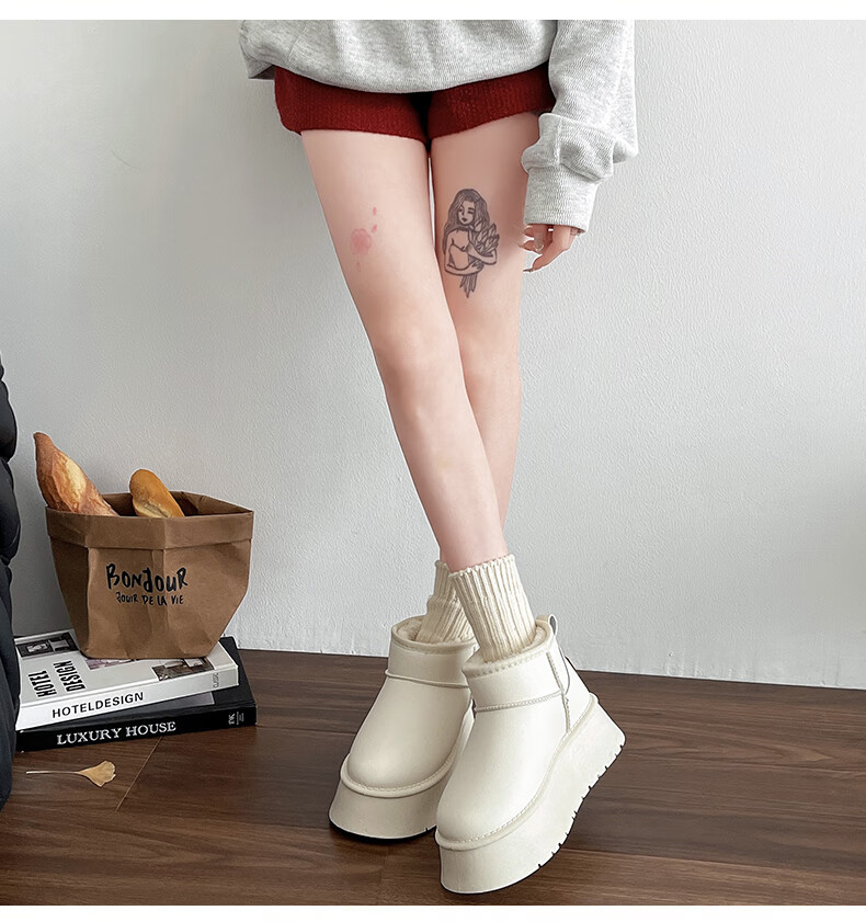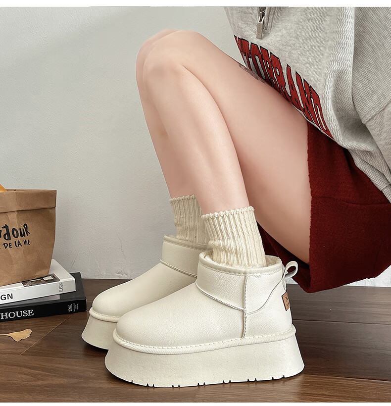 稻草人(MEXICAN)松糕厚底白色雪地靴女2026新款冬季加绒加厚保暖皮毛一体防水短靴 1皮面米白色【质保版】 37
