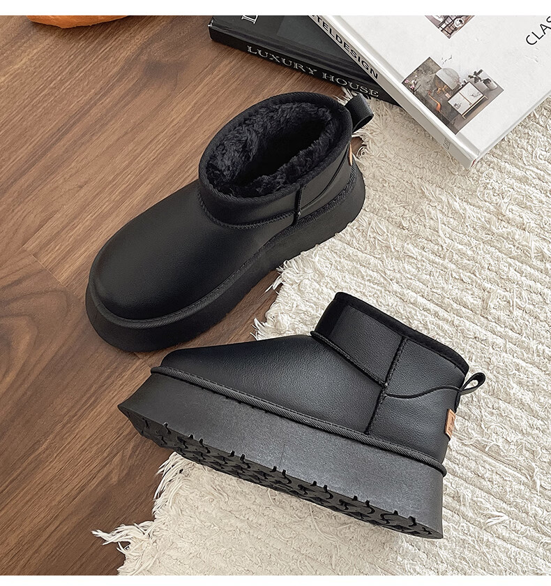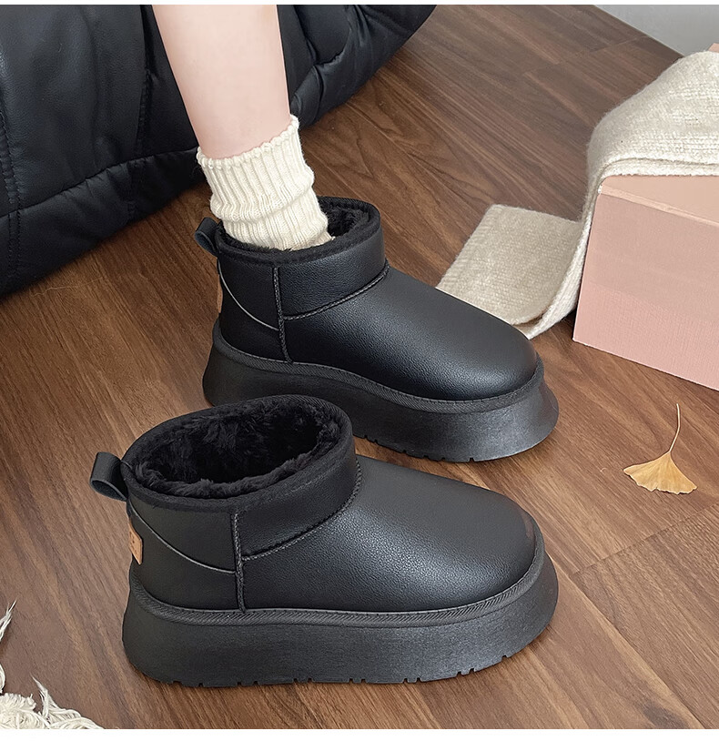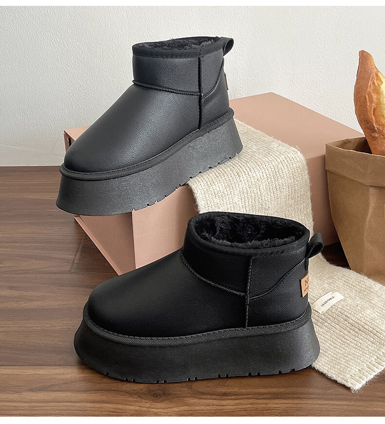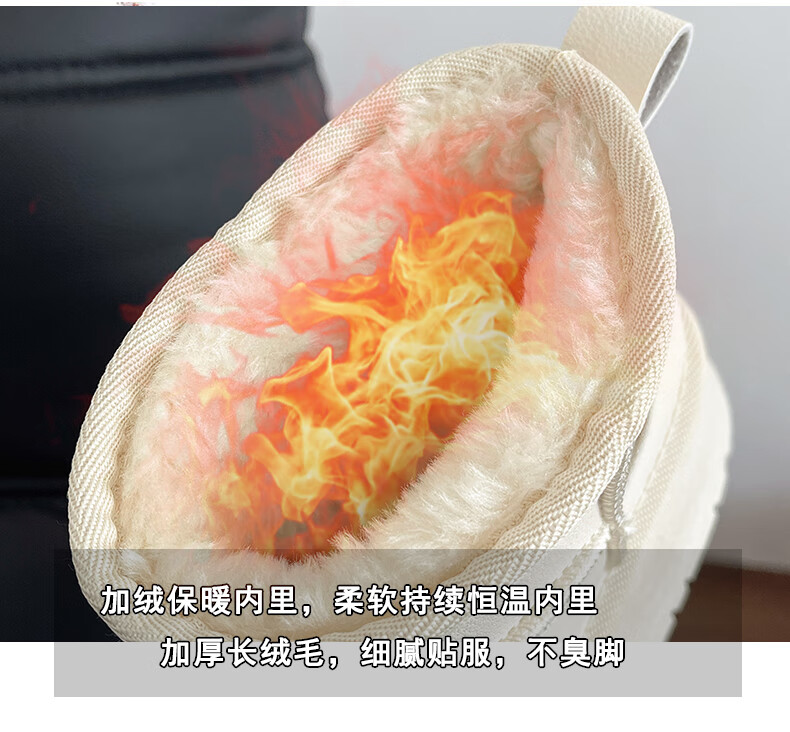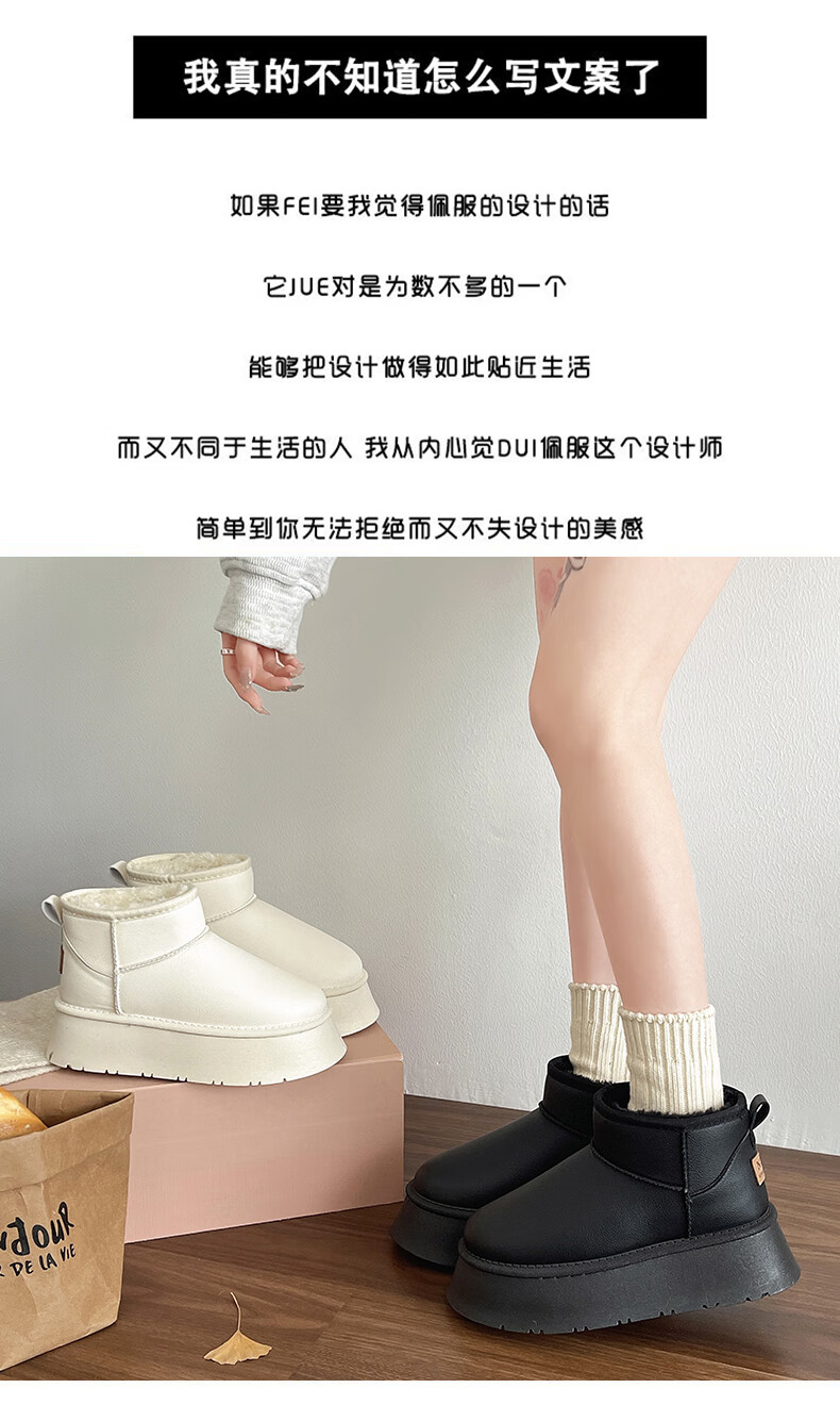 稻草人(MEXICAN)松糕厚底白色雪地靴女2026新款冬季加绒加厚保暖皮毛一体防水短靴 1皮面米白色【质保版】 37