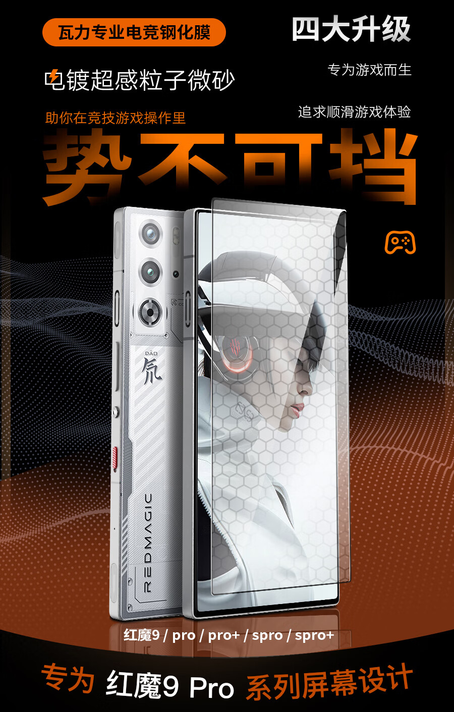 瓦力【专业级电竞钢化膜】适用努比亚红魔9pro钢化膜高清全胶9spro+手机磨砂贴膜游戏防摔指纹带秒贴盒