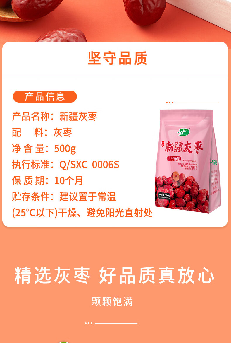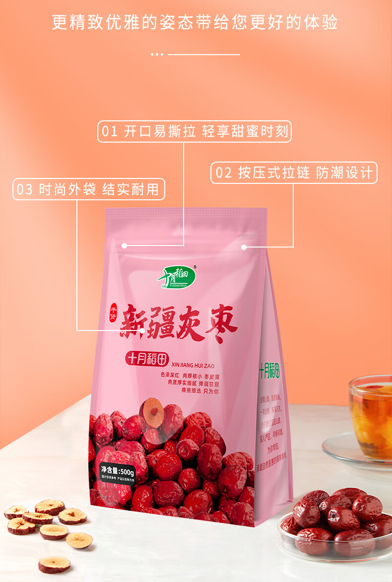 十月稻田 新疆灰枣500g 新疆特产 小红枣 零食 煲汤煮粥