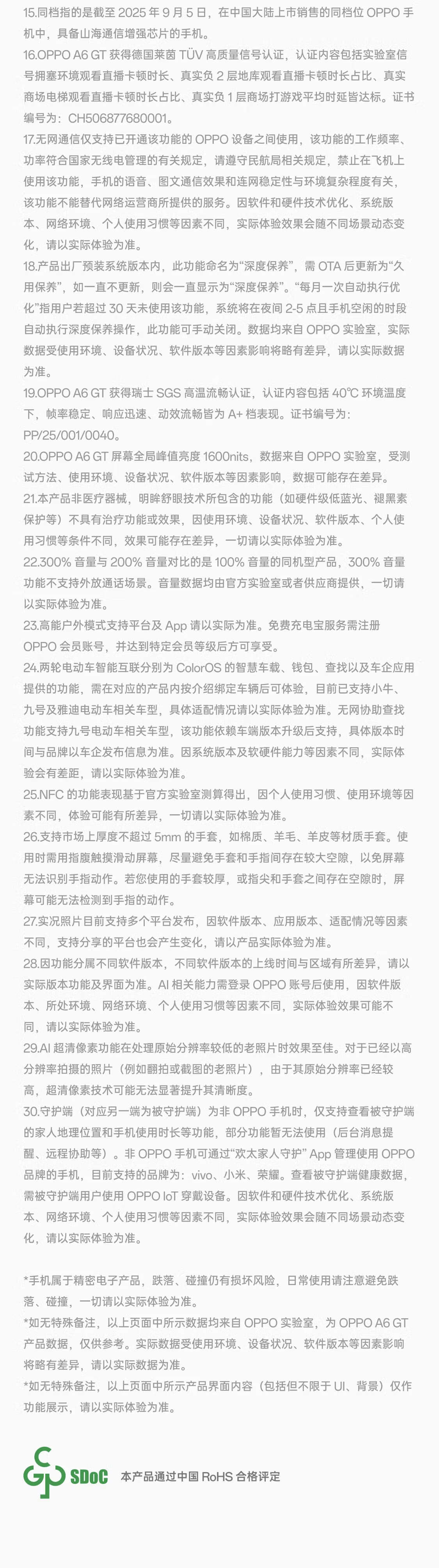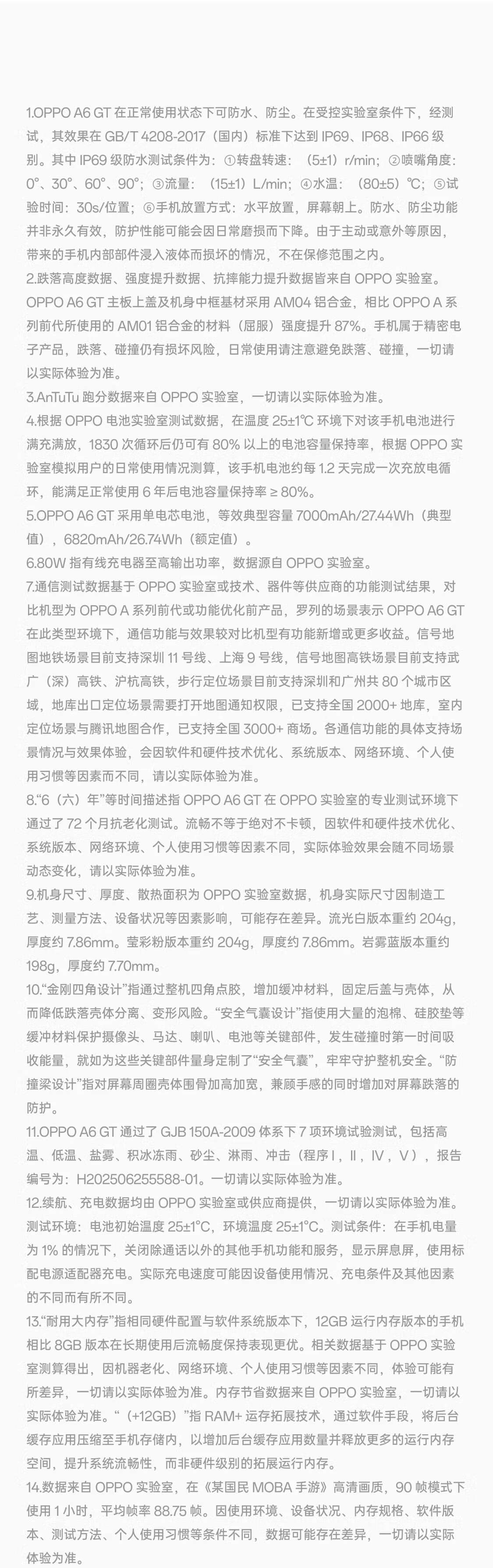 OPPO A6 GT 12GB+512GB 岩雾蓝 IP69防水 抗摔耐用流畅 5G智能手机 长续航 骁龙 自营正品 国家补贴