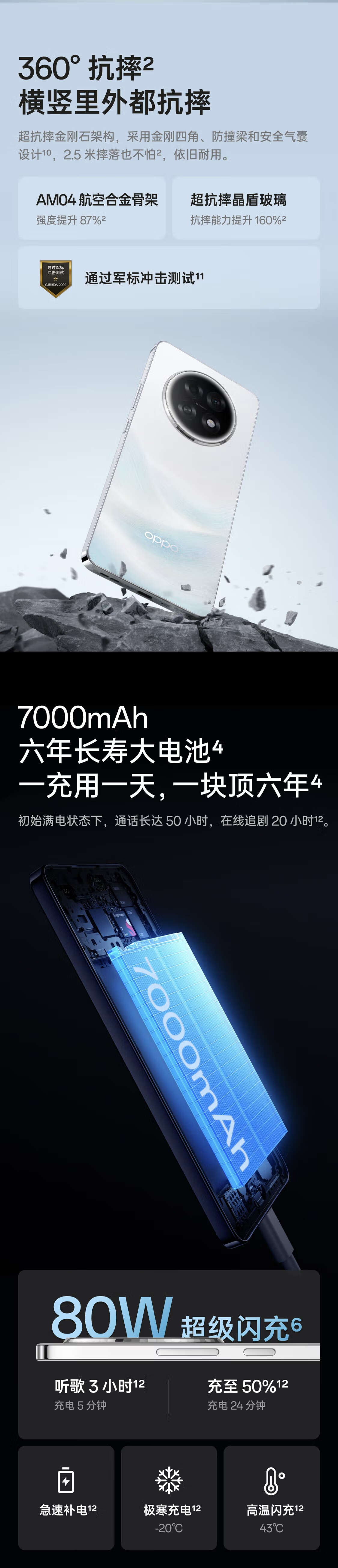 OPPO A3i 8GB+128GB 静夜黑 抗摔抗水溅 5100mAh大电池 45W闪充 120Hz高刷 5G 老人智能手机 国家补贴