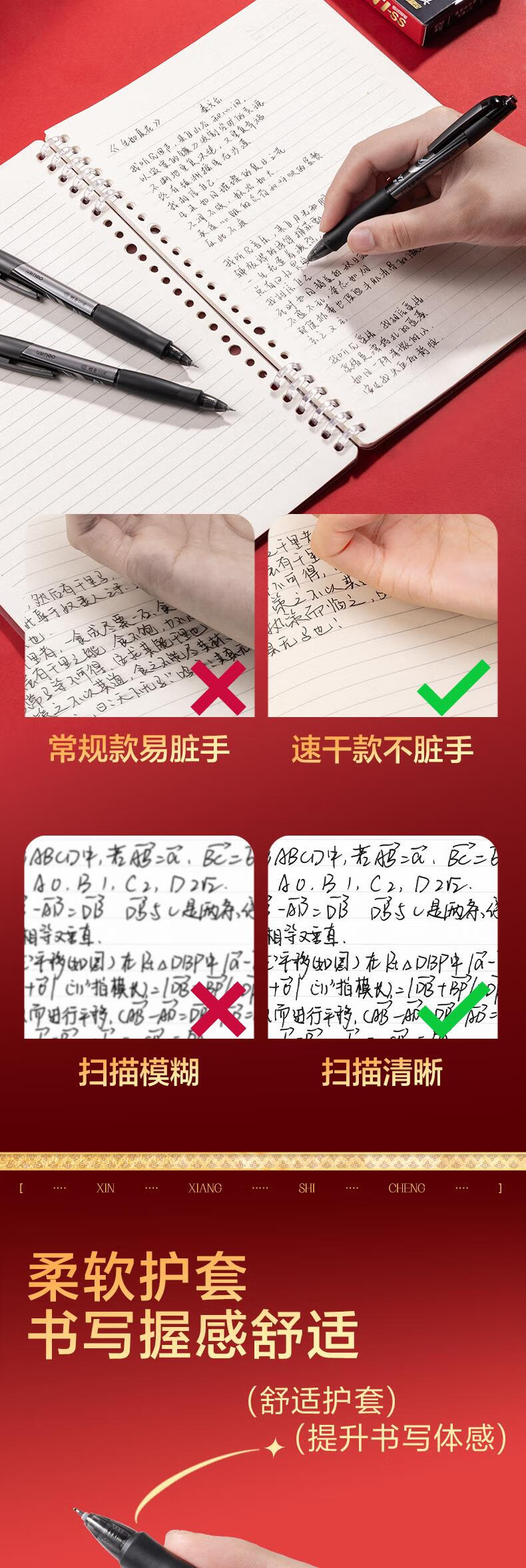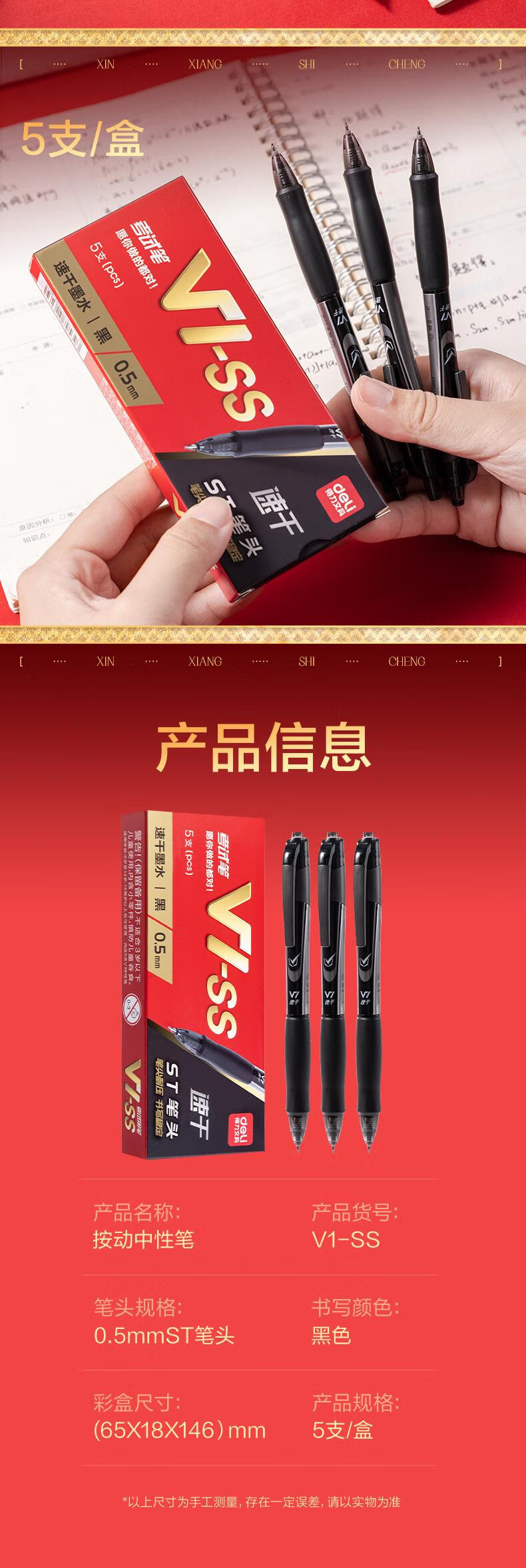 得力(deli)V1中性笔 0.5mmST头速干顺滑考试笔刷题笔学生中性笔 中高考可用 黑色5支/盒 V1-SS