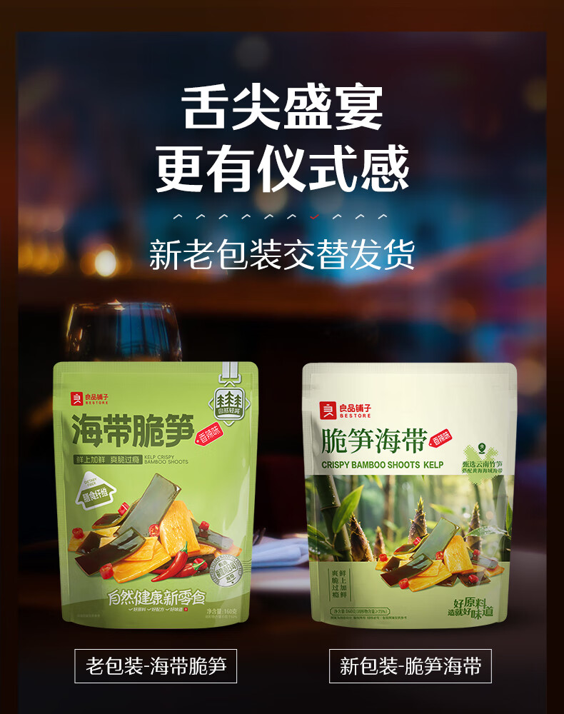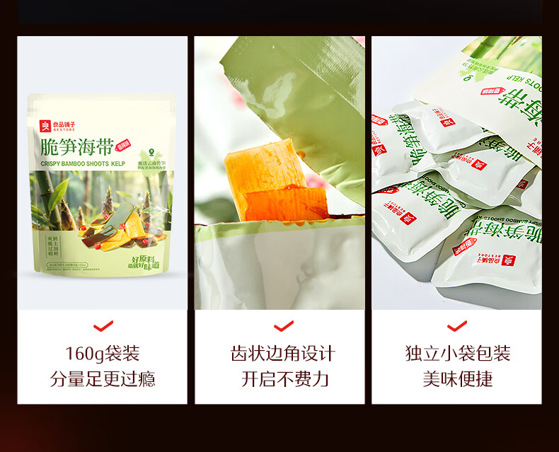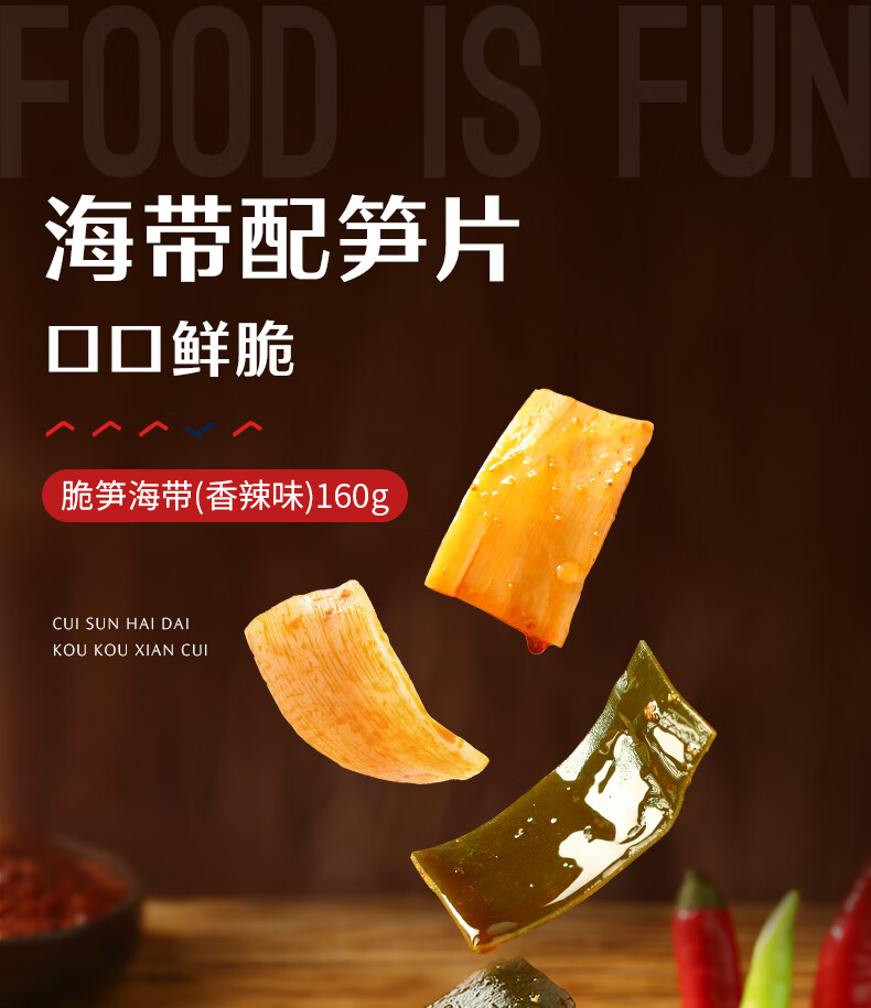 良品铺子脆笋海带香辣味160g素食办公室休闲零食海味即食小吃海带脆笋随机