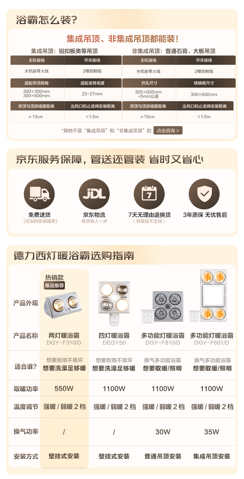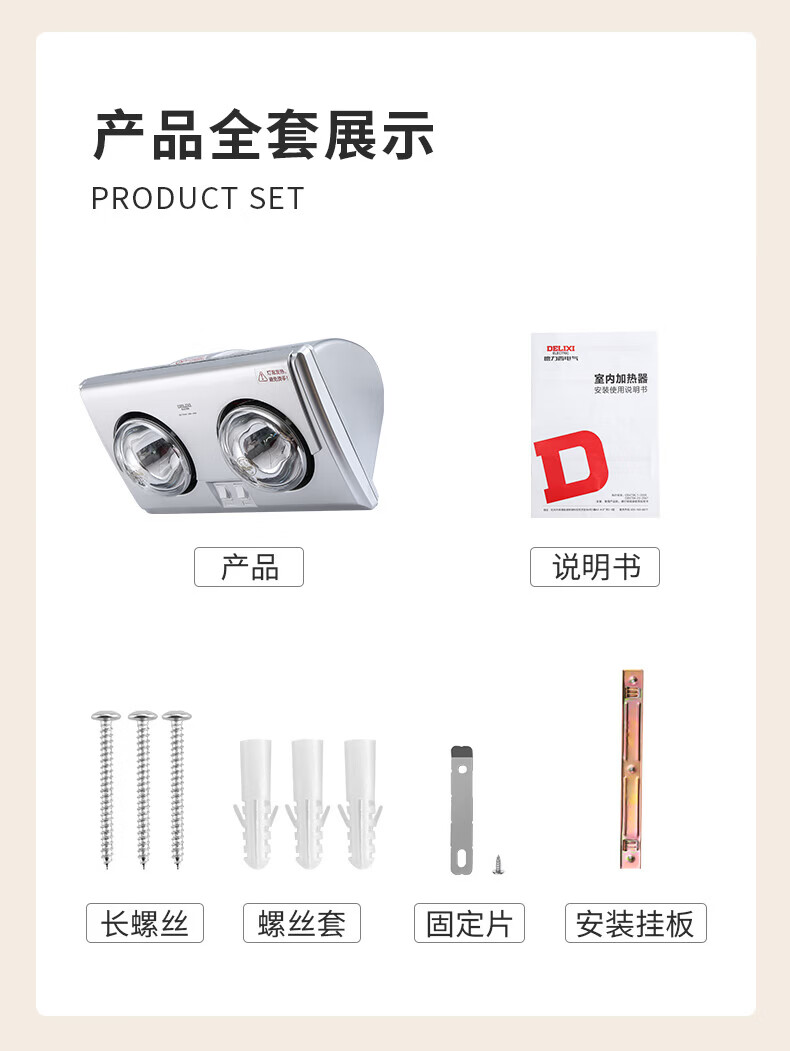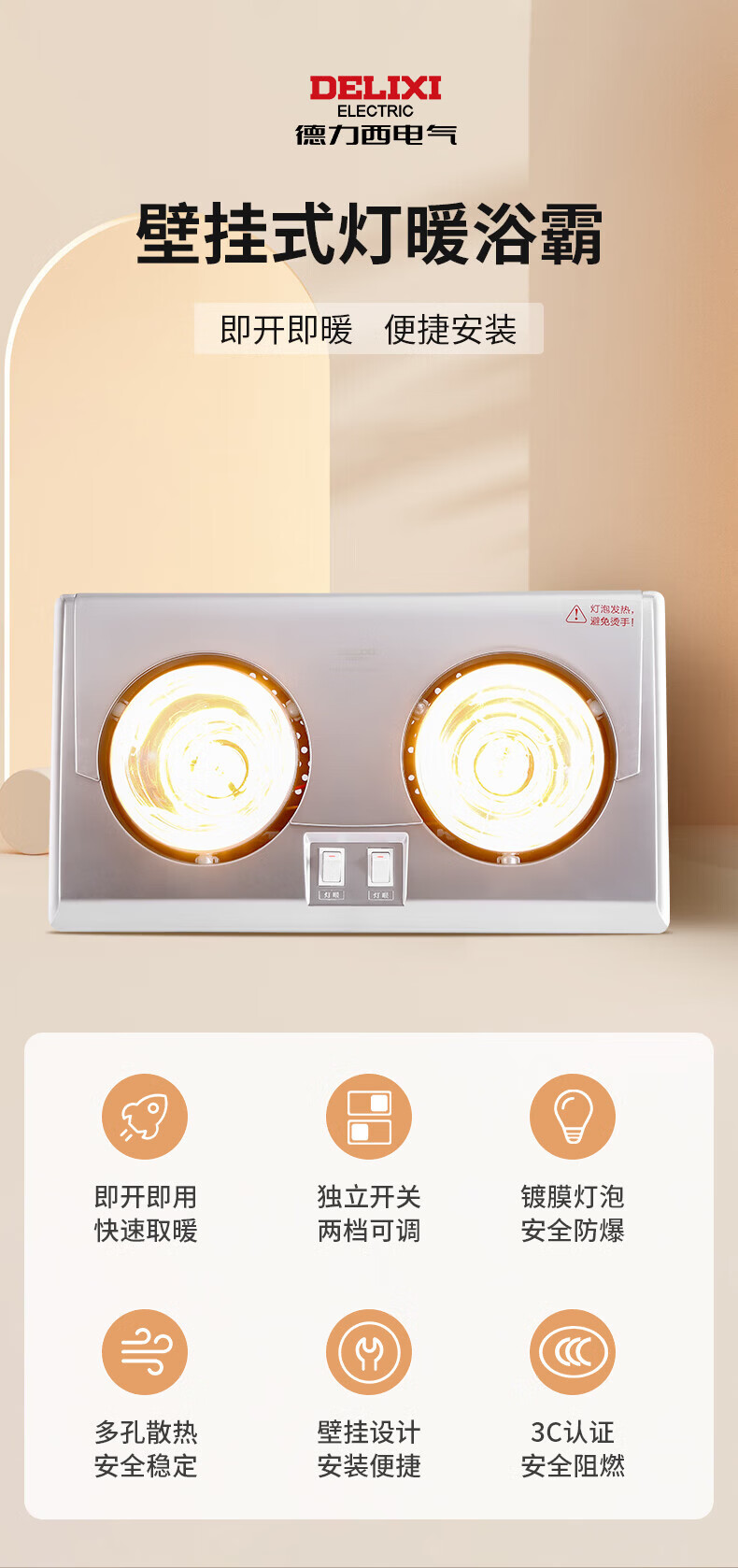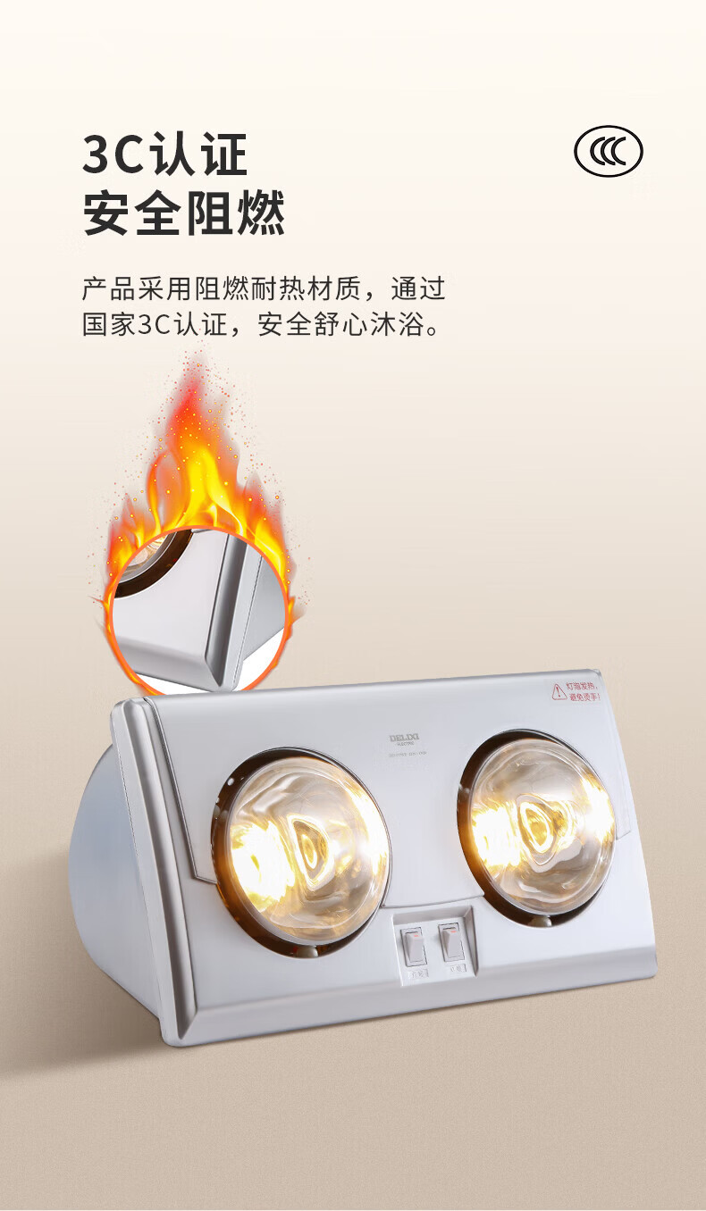 德力西(DELIXI)灯暖浴霸壁挂式即开即热独立控温安全防爆F310/D