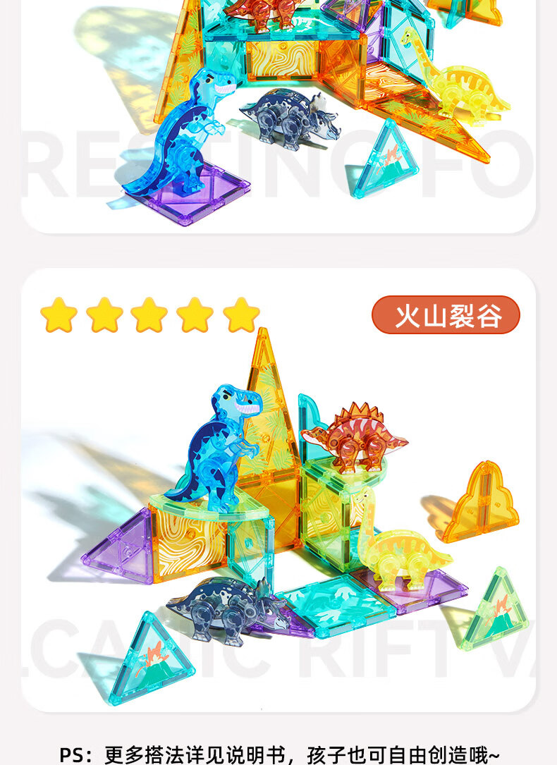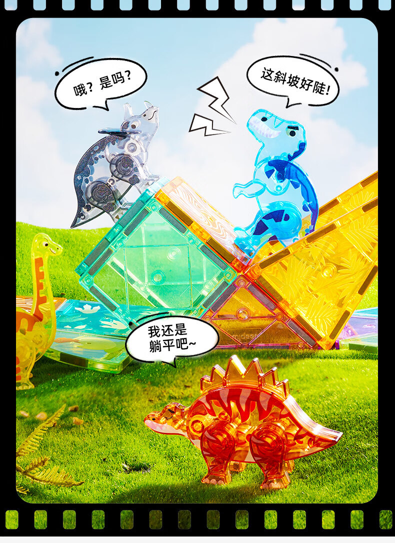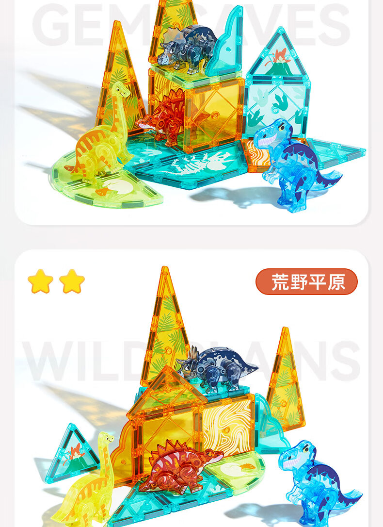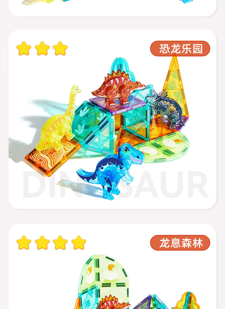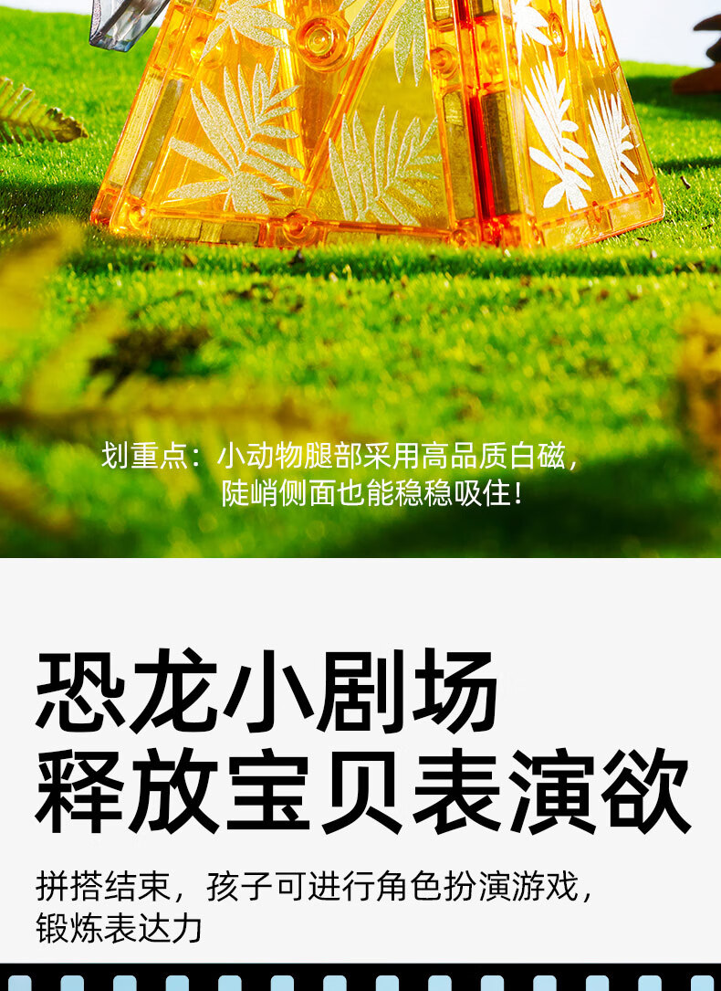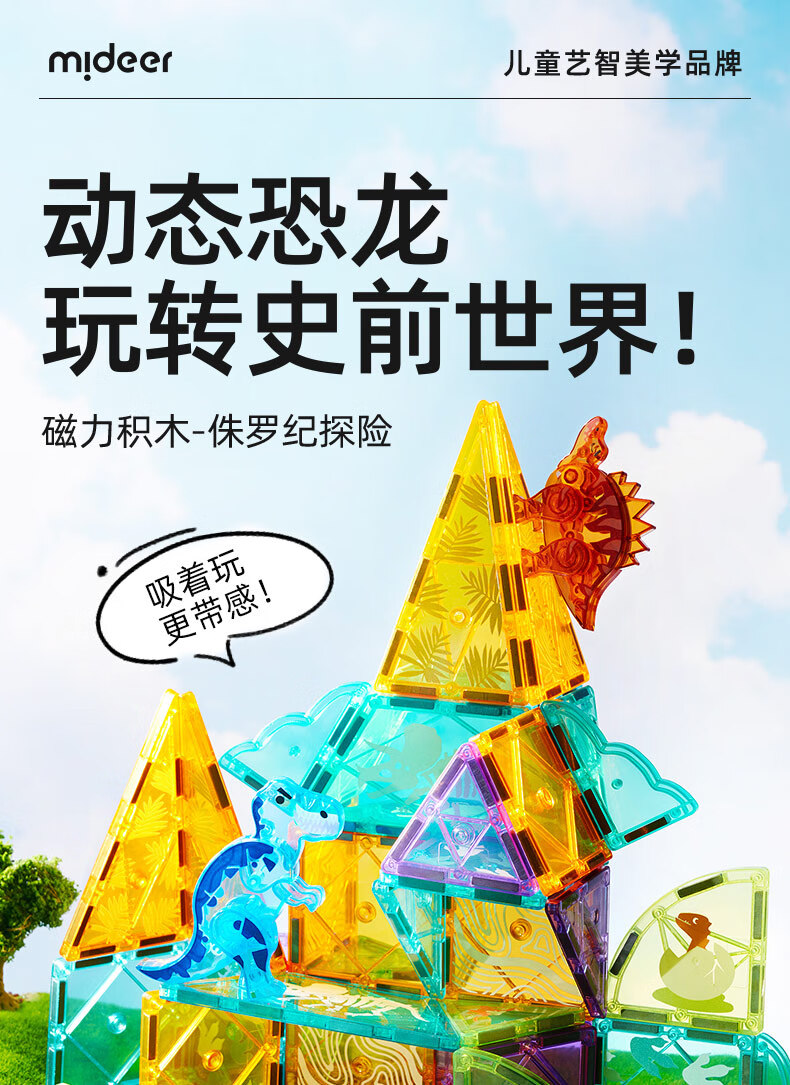 弥鹿(MiDeer)儿童钻面彩窗磁铁拼插玩具恐龙积木磁力片-侏罗纪探险新年礼物