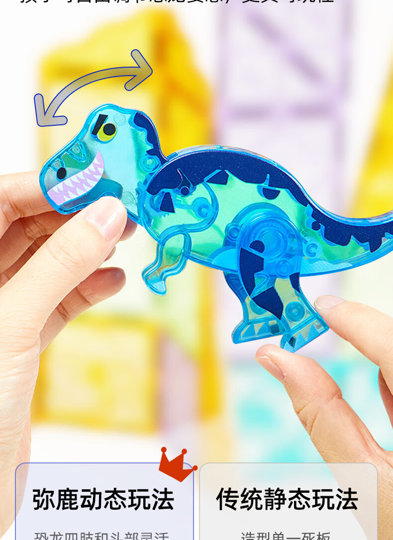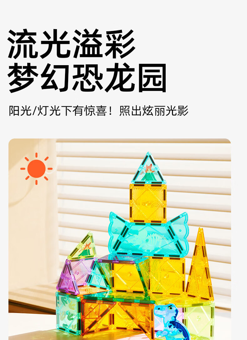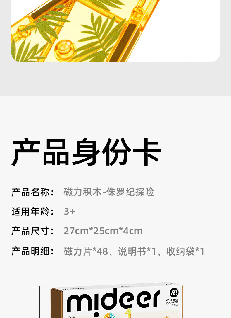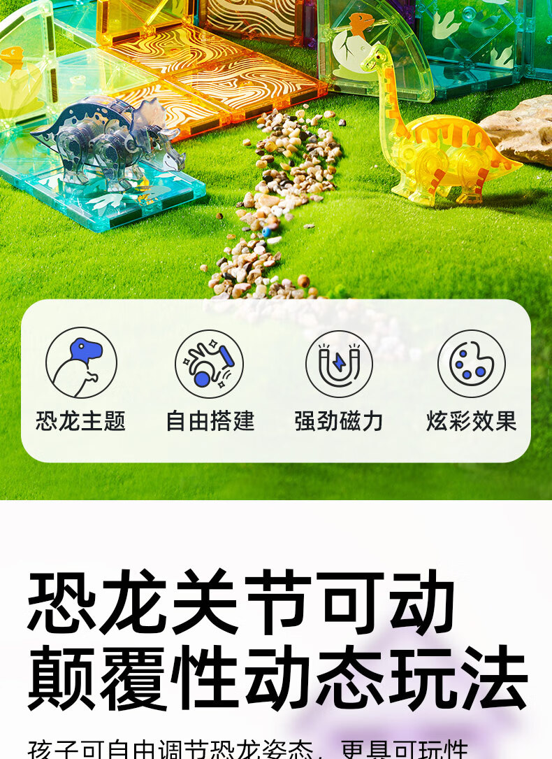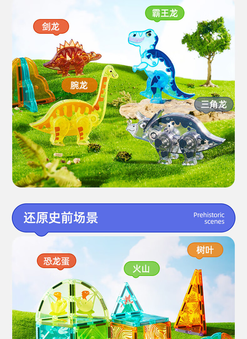 弥鹿(MiDeer)儿童钻面彩窗磁铁拼插玩具恐龙积木磁力片-侏罗纪探险新年礼物