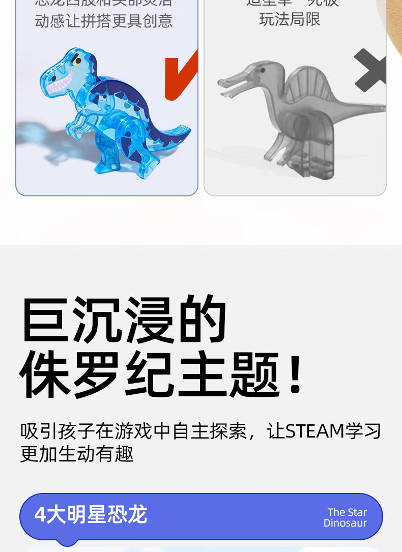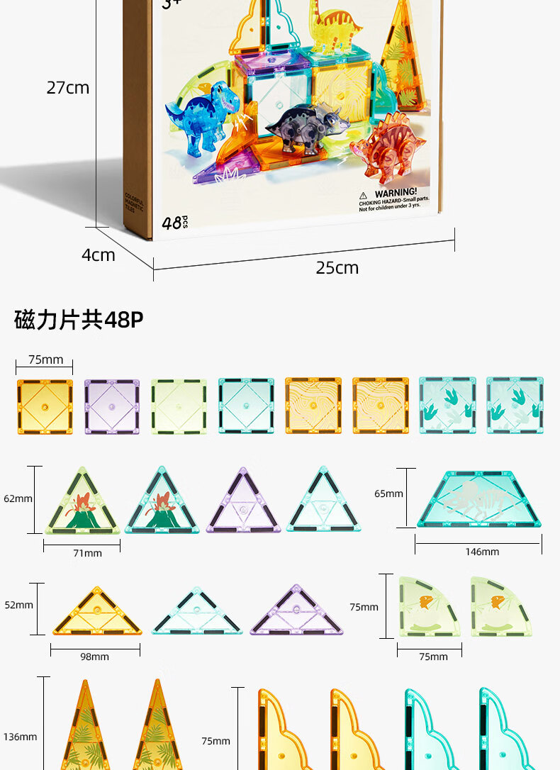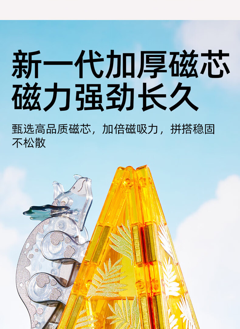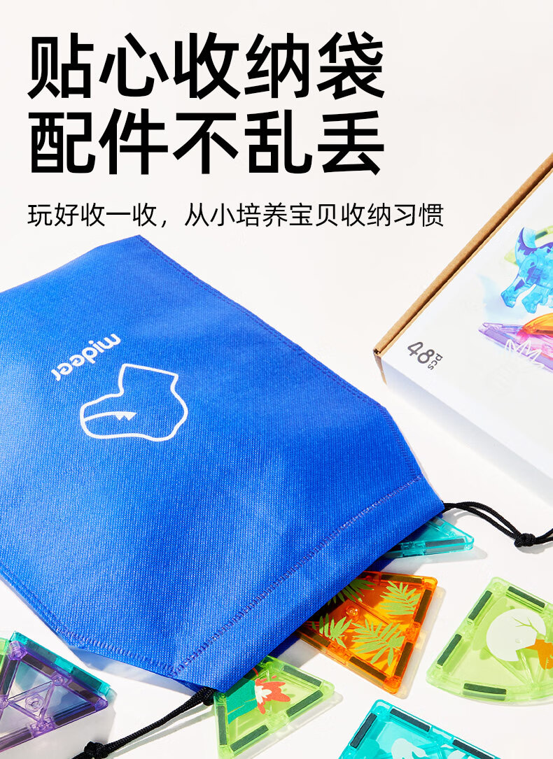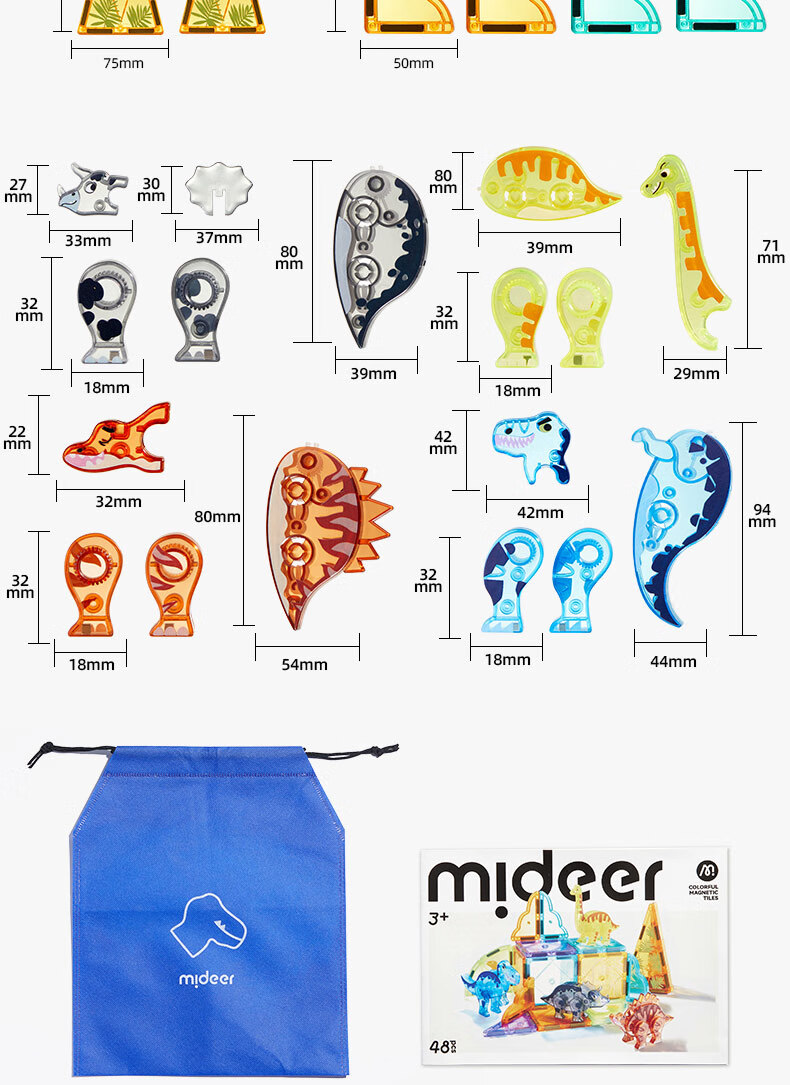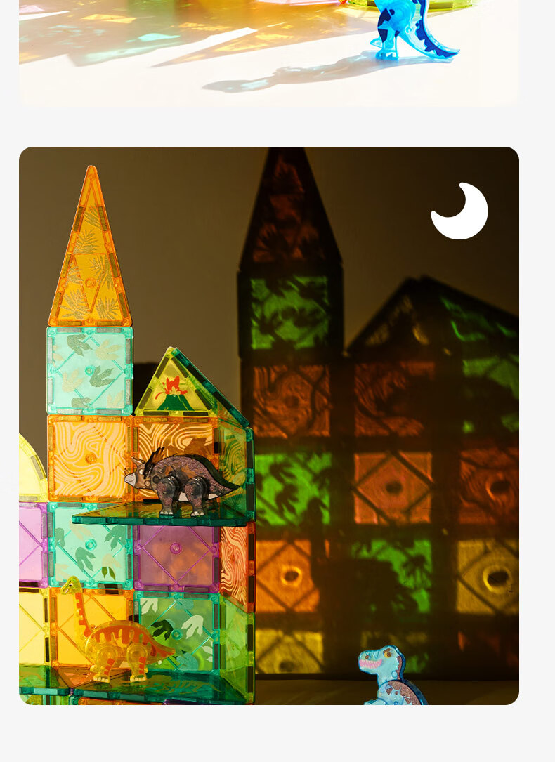 弥鹿(MiDeer)儿童钻面彩窗磁铁拼插玩具恐龙积木磁力片-侏罗纪探险新年礼物