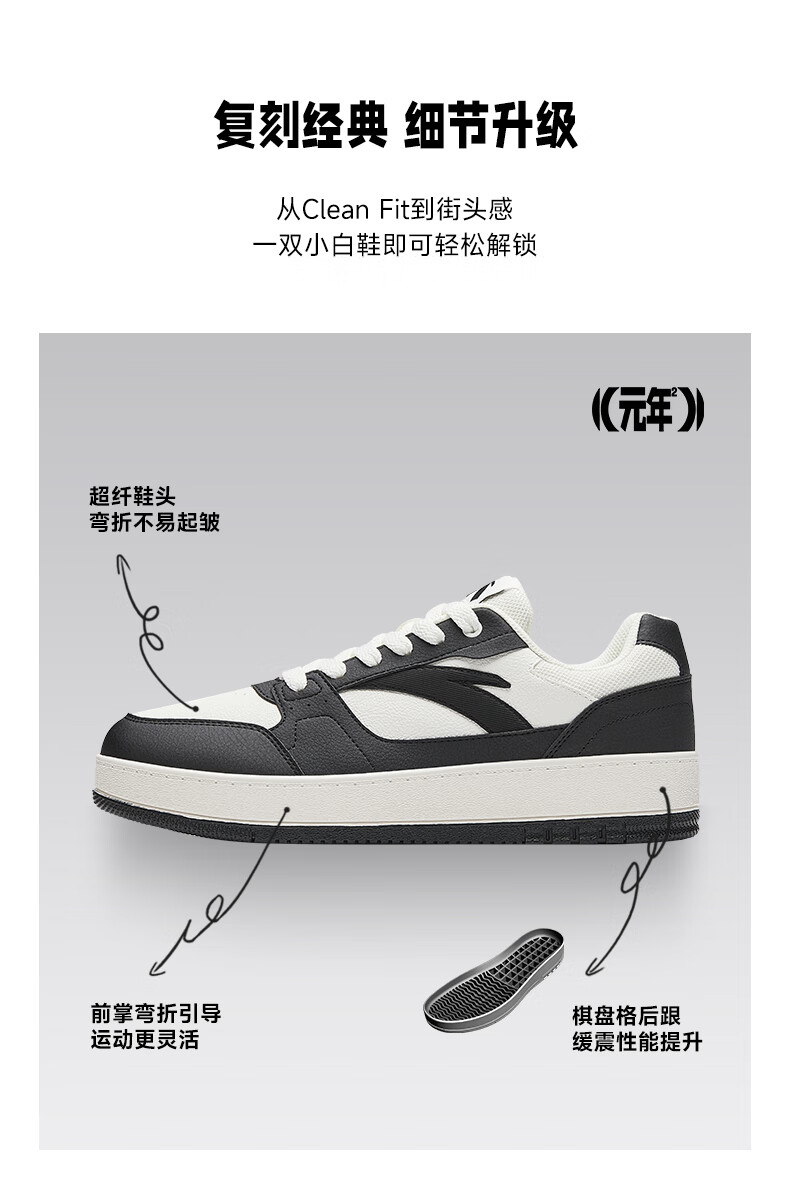 安踏元年丨板鞋男鞋春季厚底增高休闲鞋百搭小白鞋运动鞋子男休闲板鞋 【元年-新】黑-6 42