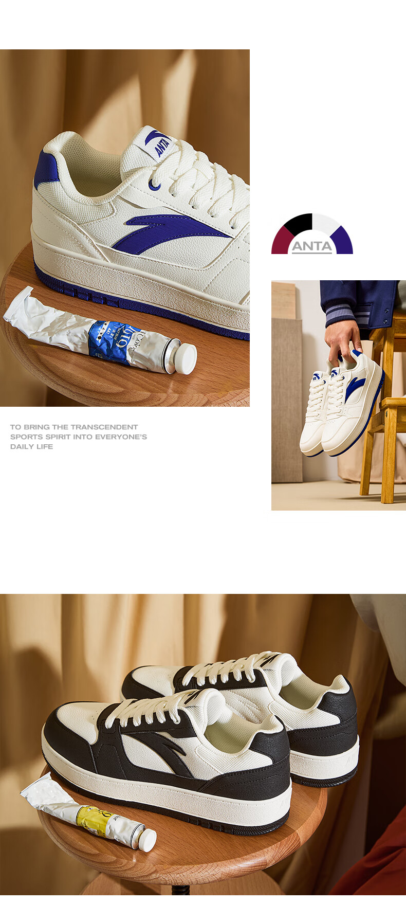 安踏樊振东同款波浪鞋丨板鞋男女同款厚底增高休闲滑板防滑百搭运动鞋 【波浪4-男款】象牙白/绀青蓝/红辣椒-1 41