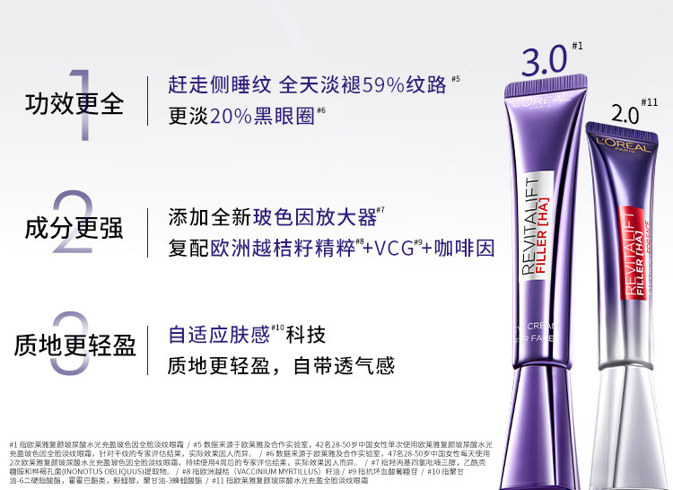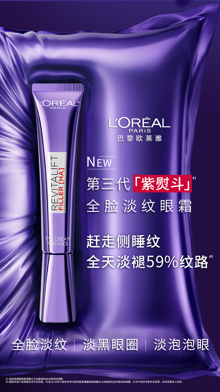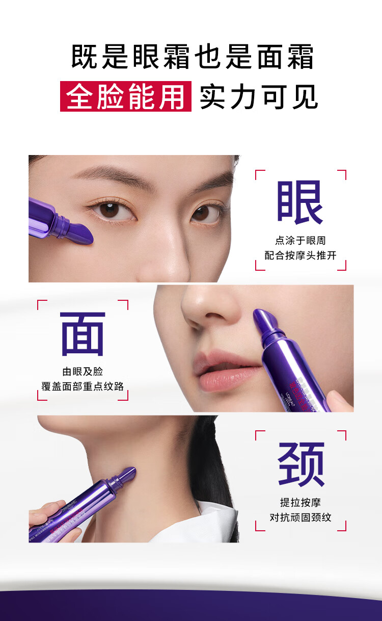 欧莱雅[徐明浩推荐]紫熨斗眼霜30ml全脸淡化细纹保湿护肤品新年礼物