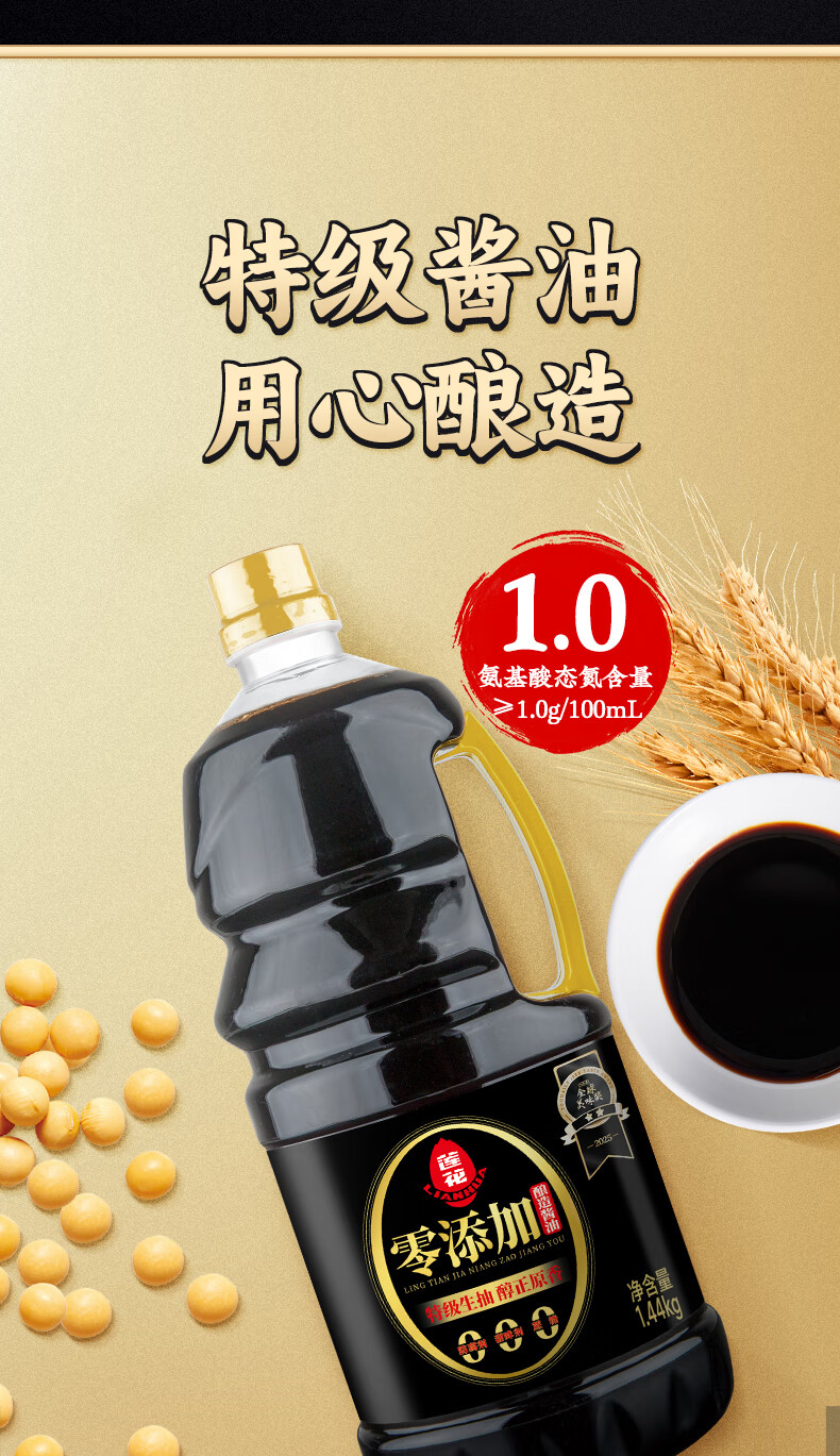 莲花(LIANHUA)零添加特级生抽酱油1.44kg家用调味料餐饮商用凉拌 0添加特级生抽酱油1.44kg*1瓶