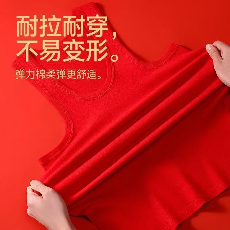 100纯棉本命年男士红色背心男士薄款纯棉大红色喜庆结婚庆典 大红【单件装】 2XL 【130-150斤】