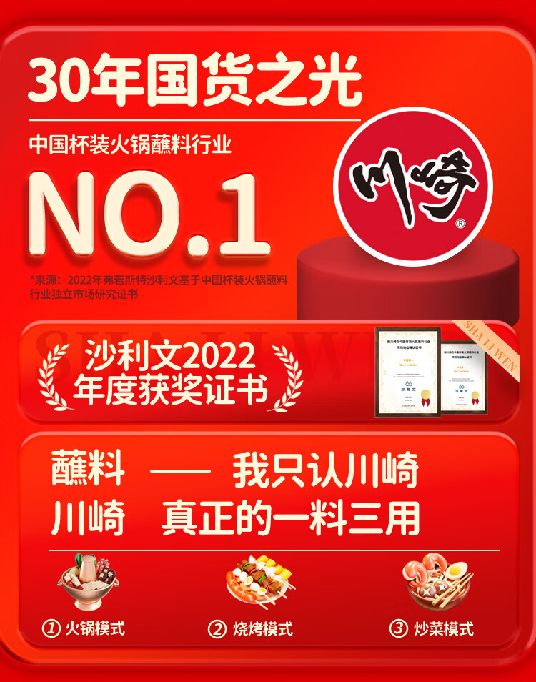川崎火锅蘸料 海鲜味三连杯300g 调味酱调味料 涮羊肉火锅料