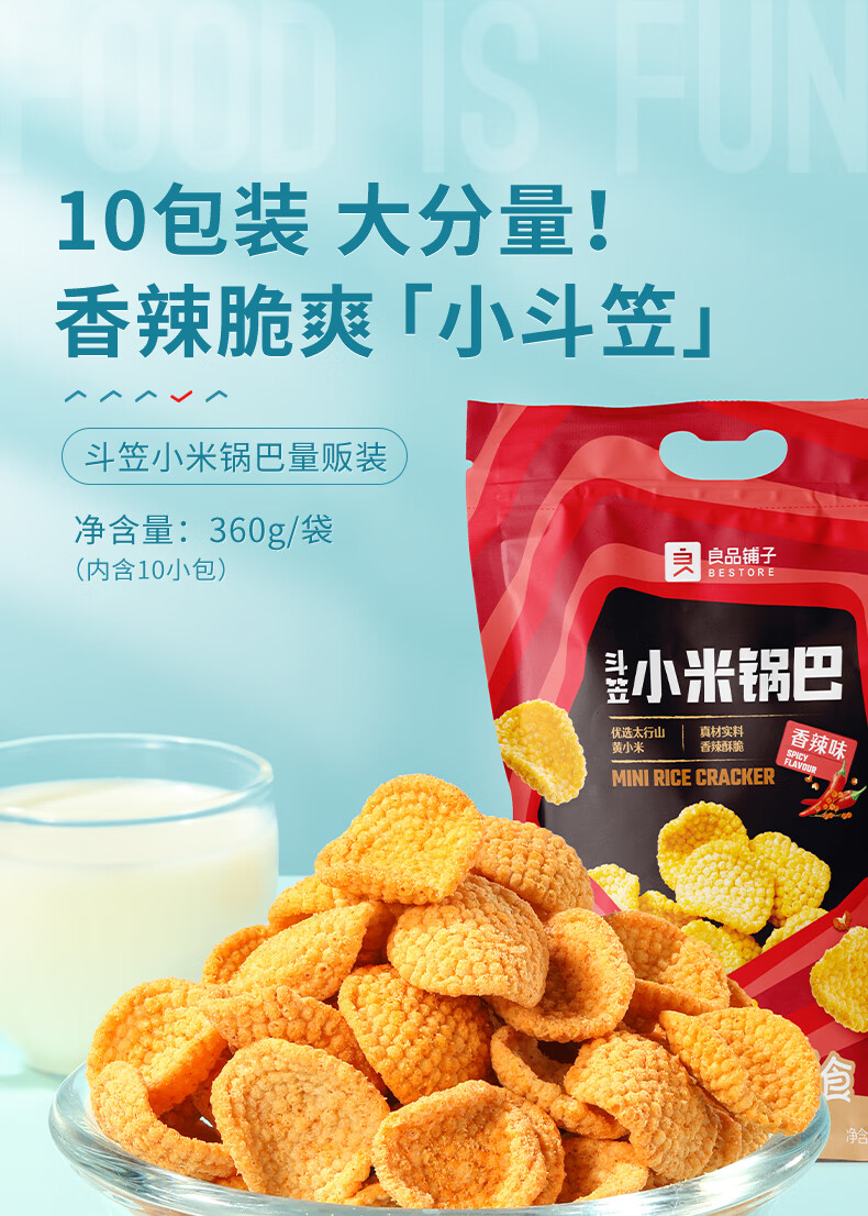 良品铺子斗笠小米锅巴量贩装(360g)内含10小包休闲零食办公室小吃