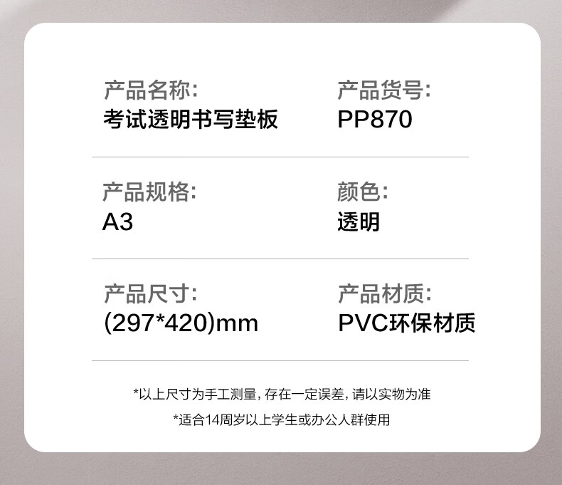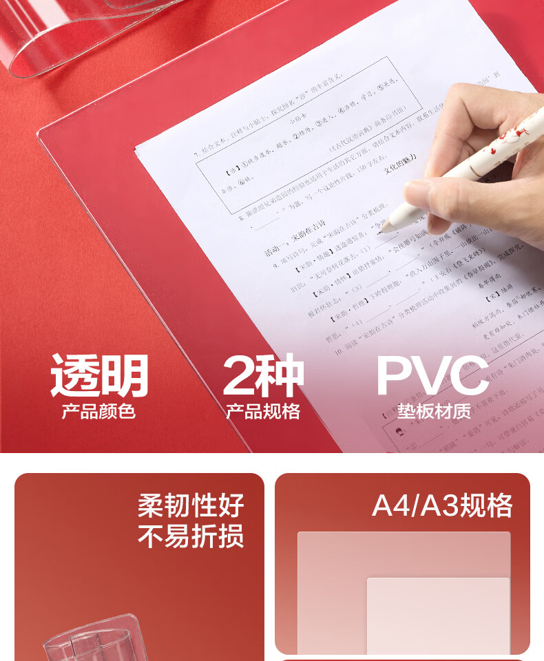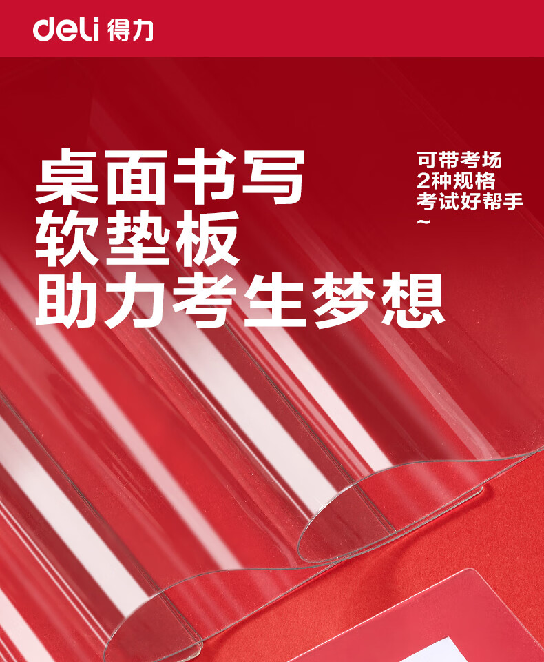得力(deli)考试垫板透明PVC软垫板写字垫学生考试可用画画垫板书写垫a4写作业A3中考高考考研试卷全桌桌垫 【全桌课桌垫】60*40cm-自带PP盒 PP854