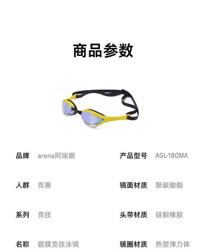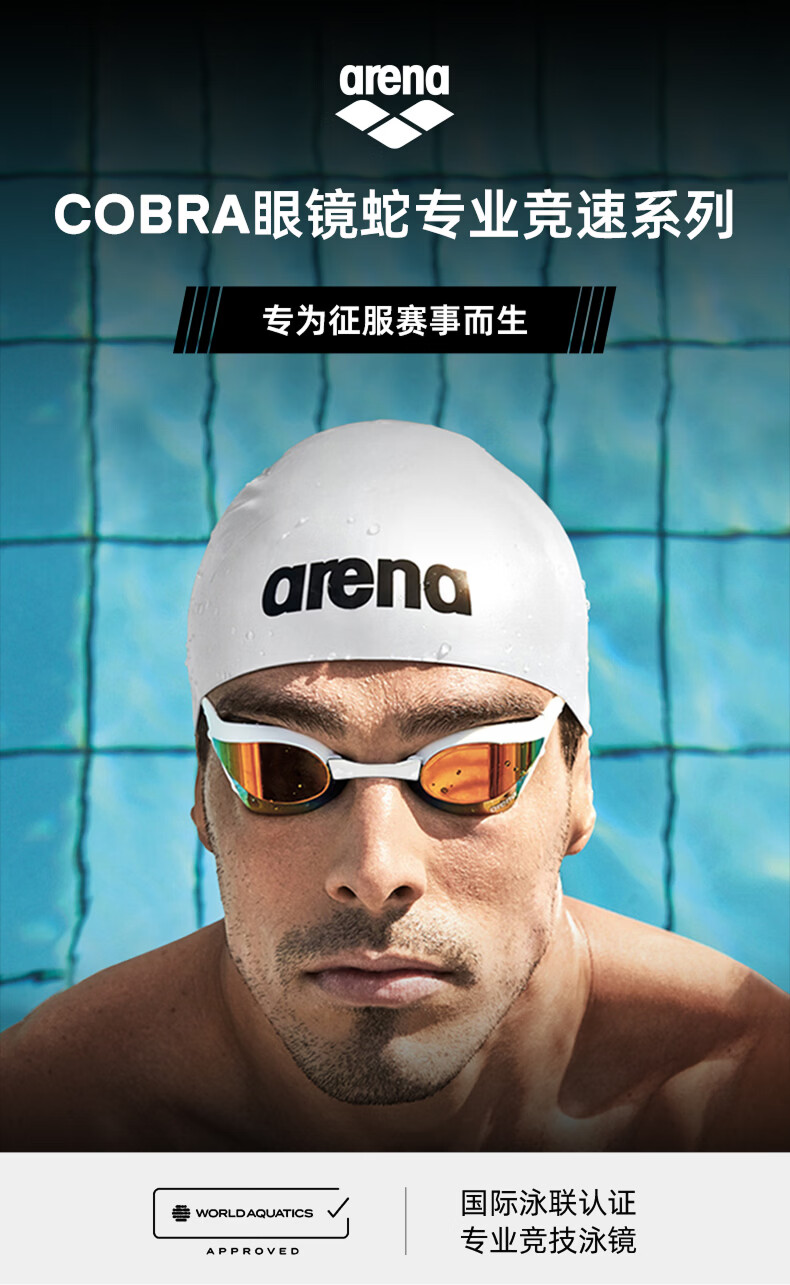阿瑞娜(arena)竞技竞速眼镜蛇游泳镜防雾防水高清国际泳联认证比赛专用 【世锦赛】25年新色-原装进口(RDYL) 平光