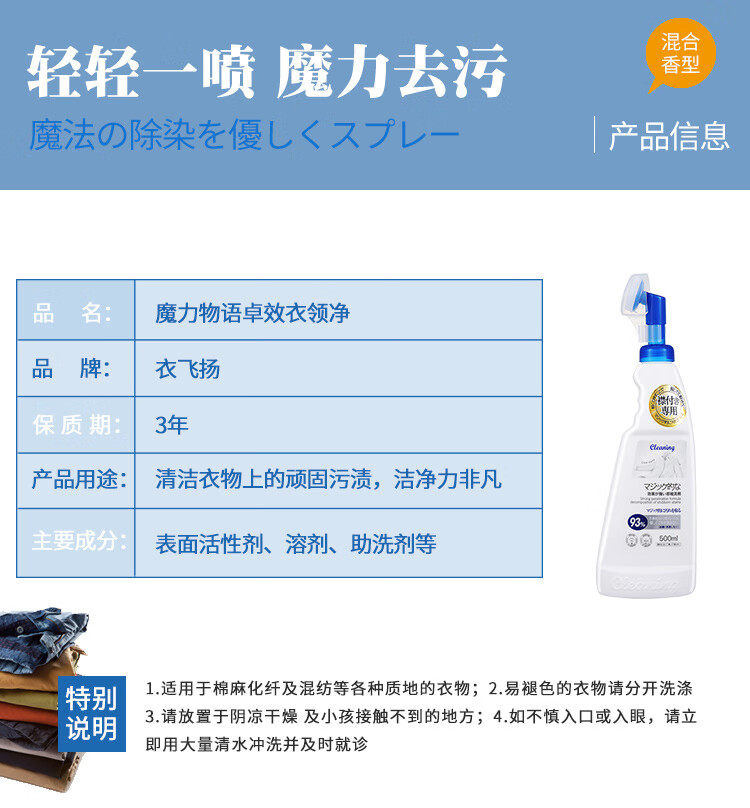 衣飞扬衣领净深层去渍羽绒服免搓洗雪地靴助洗剂 衣领净 500ml*2瓶