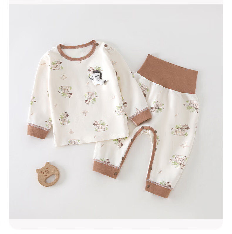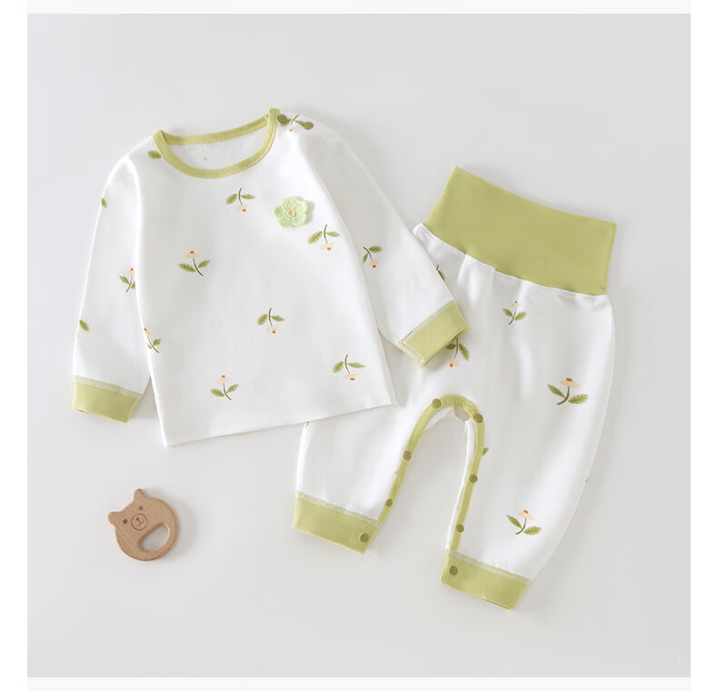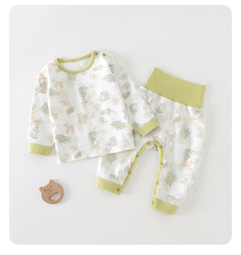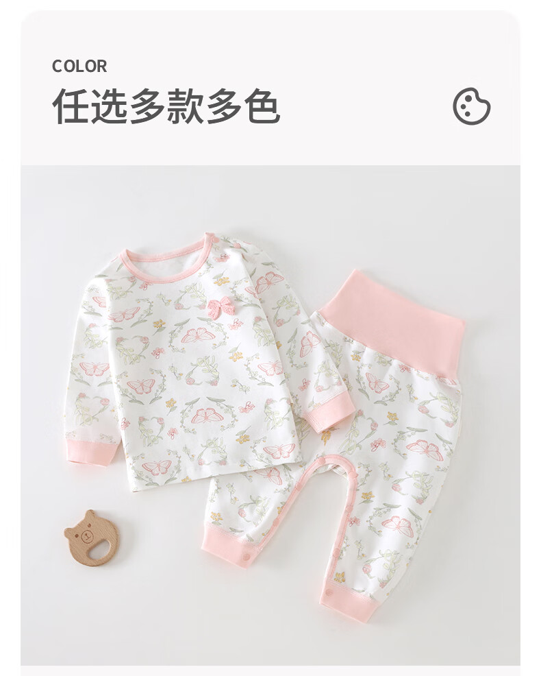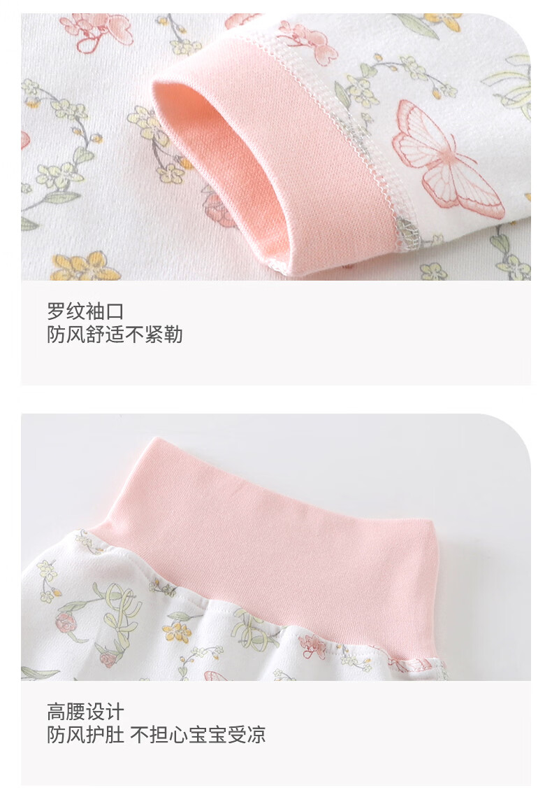 藤之木工房婴幼儿内衣套装宝宝春秋打底衣高腰秋衣秋裤家居服两件套 粉色碎花 66