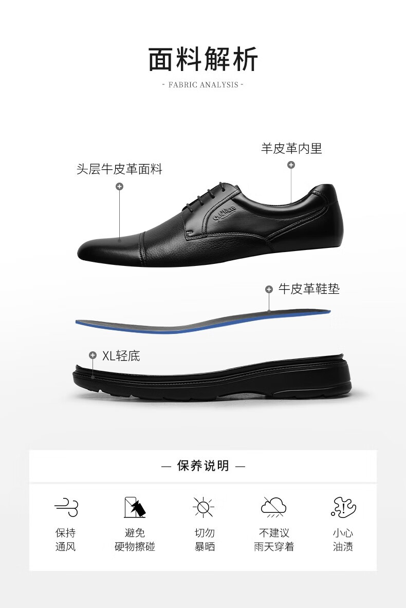 金利来(Goldlion)皮鞋男商务正装鞋男士皮鞋三接头德比鞋婚鞋轻质大底商务休闲皮鞋 黑色 40