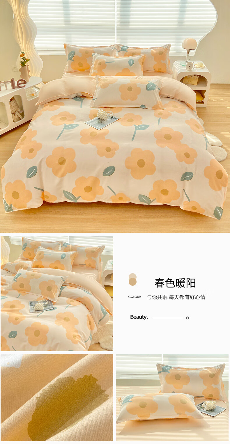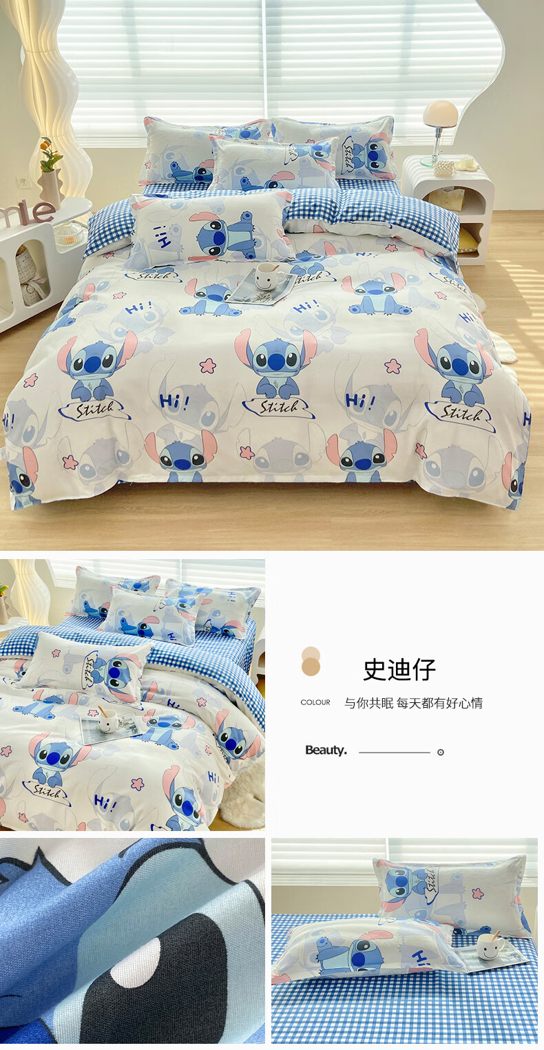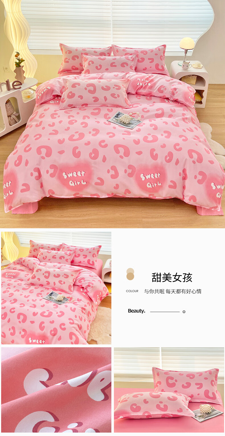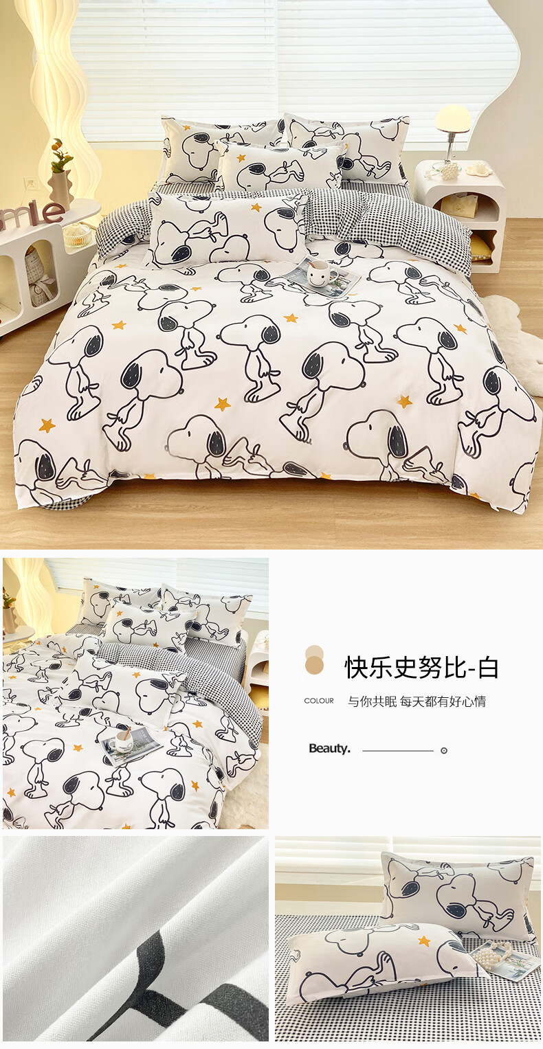 多喜爱家纺纯棉床上四件套 Qi可Qi克系列双人全棉床单被套床上用品套件1.8米床229*230cm