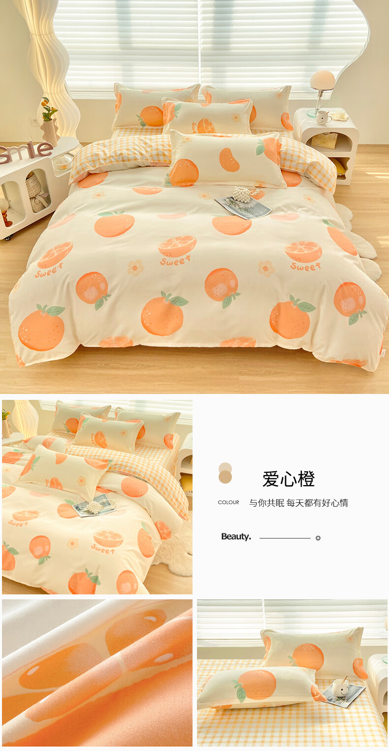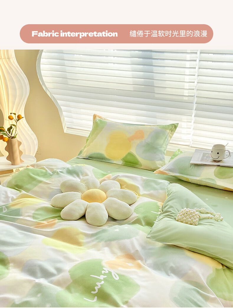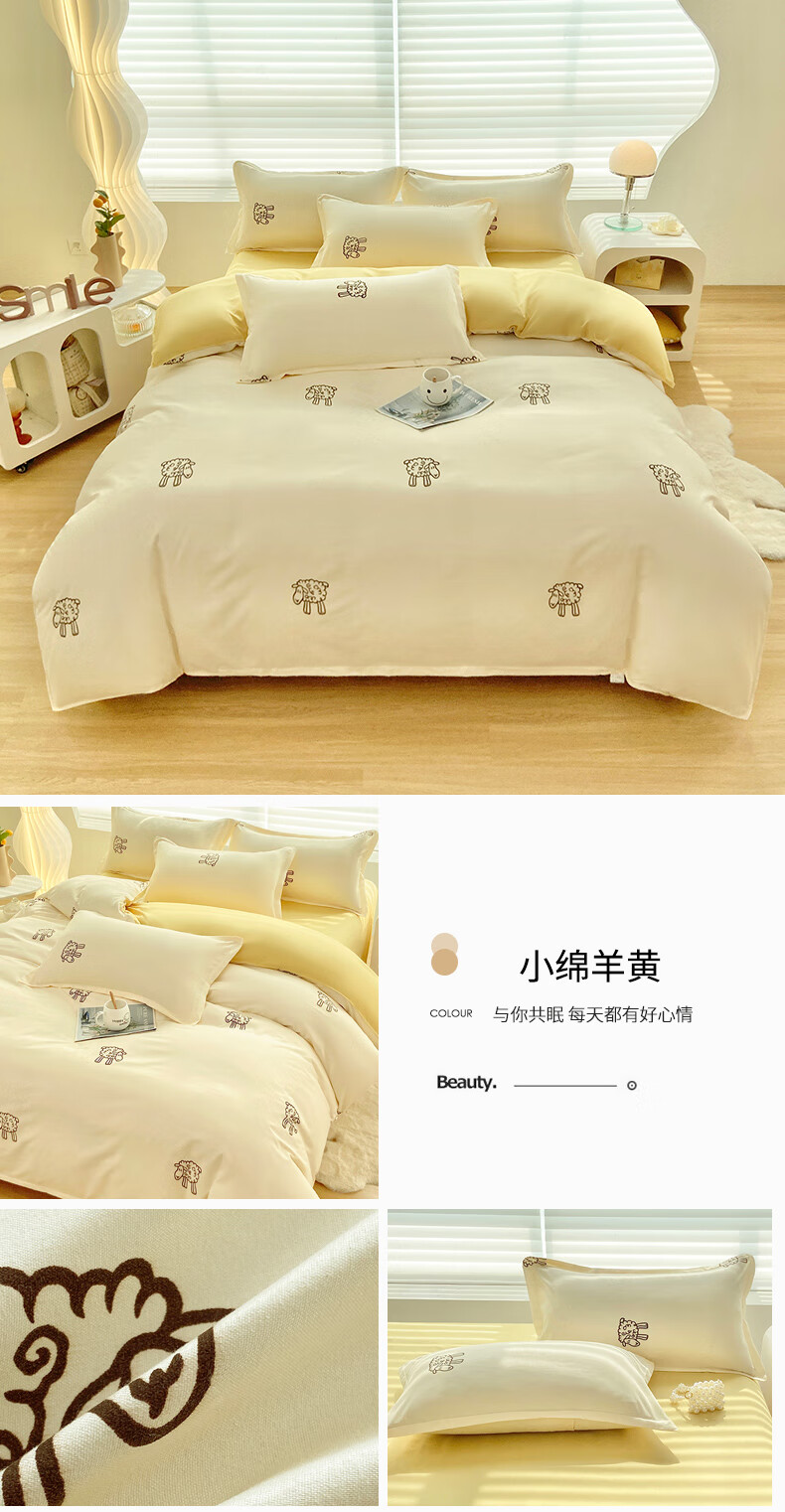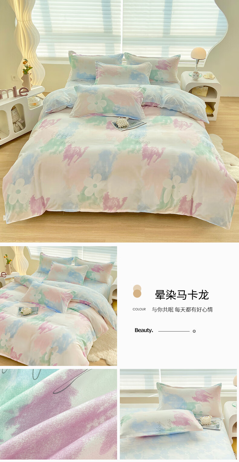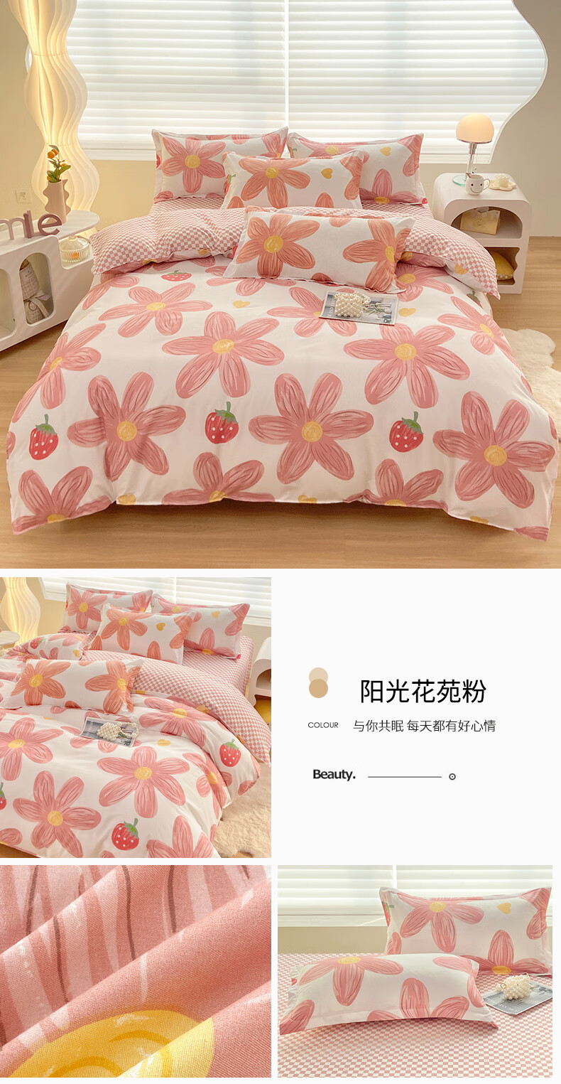 多喜爱家纺纯棉床上四件套 Qi可Qi克系列双人全棉床单被套床上用品套件1.8米床229*230cm
