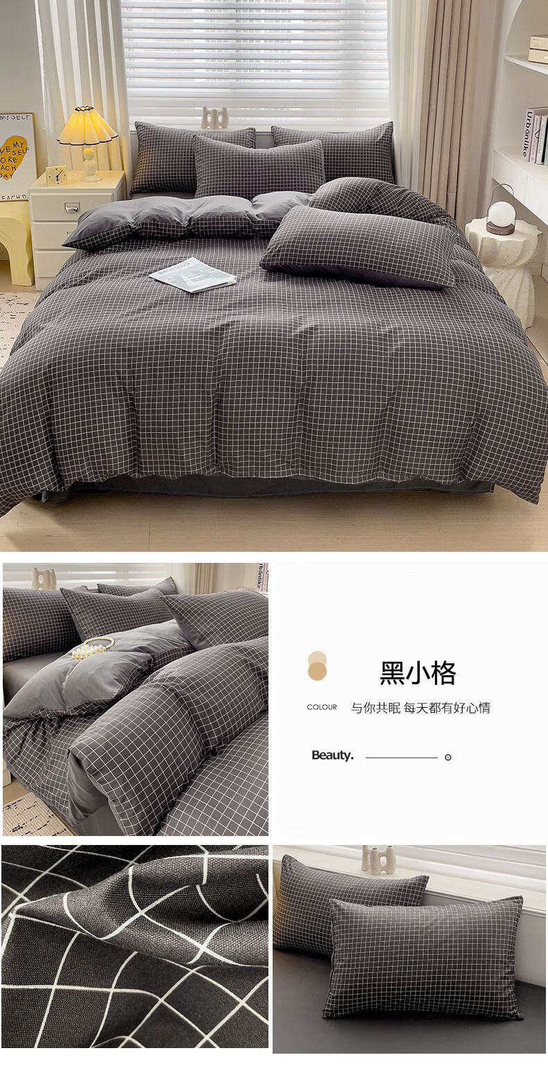 钱皇云纱可可磨毛四件套全棉加厚100%纯棉床单被罩秋冬季床品(黑金礼盒款) 220*240cm